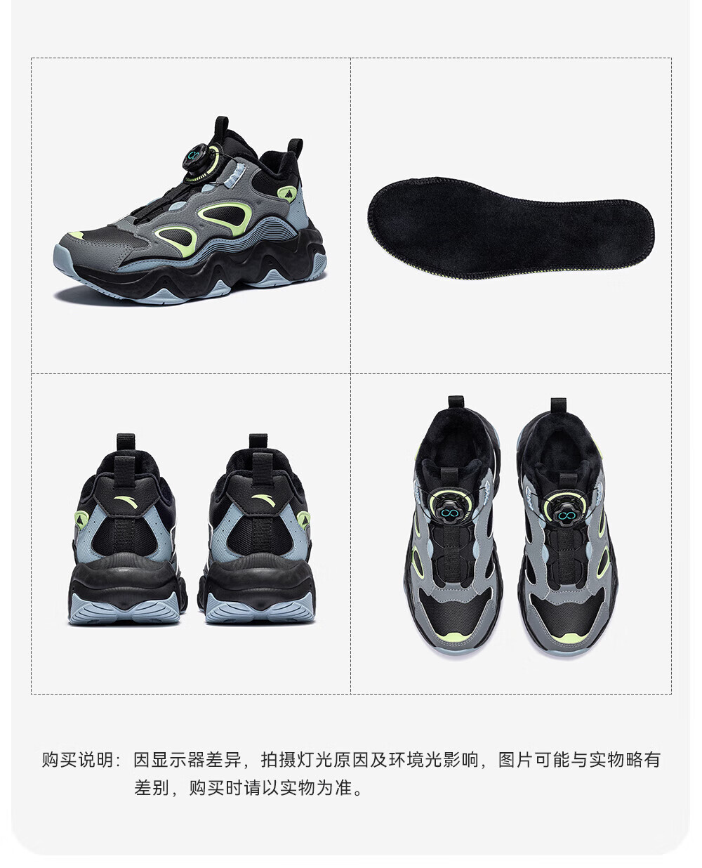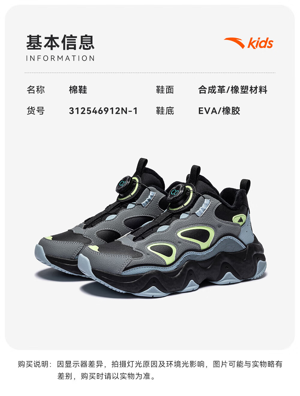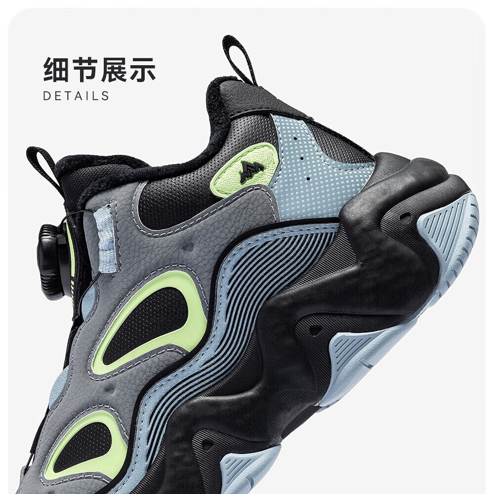ANTA children's padded shoes new winter style for men, middle and large children, warm and comfortable, leather surface, wear-resistant, cushioning sports shoes, casual shoes, plain matte gray/chalk/smoke gray-2 38