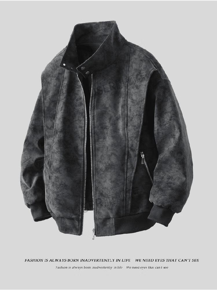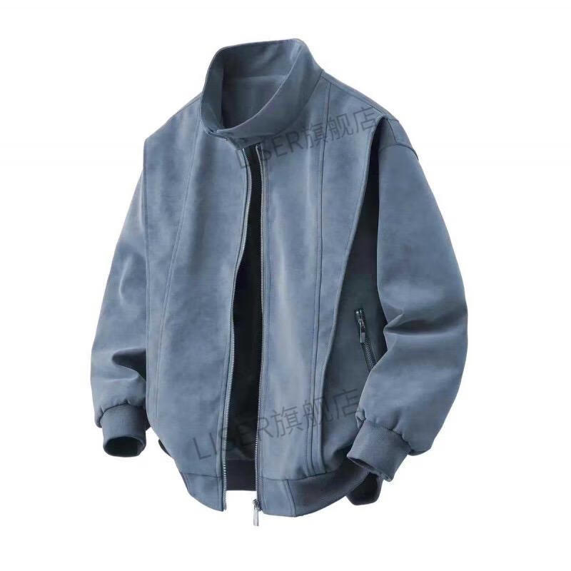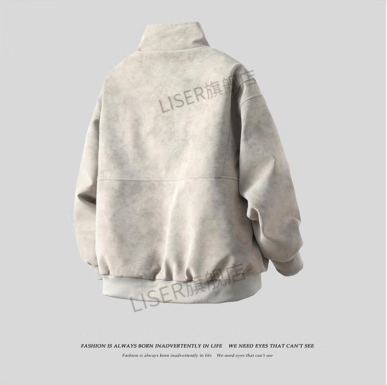 Liser唐团夹克男女款春秋季美式覆古棒球领休闲宽松美拉德水洗皮衣港风 灰色 L