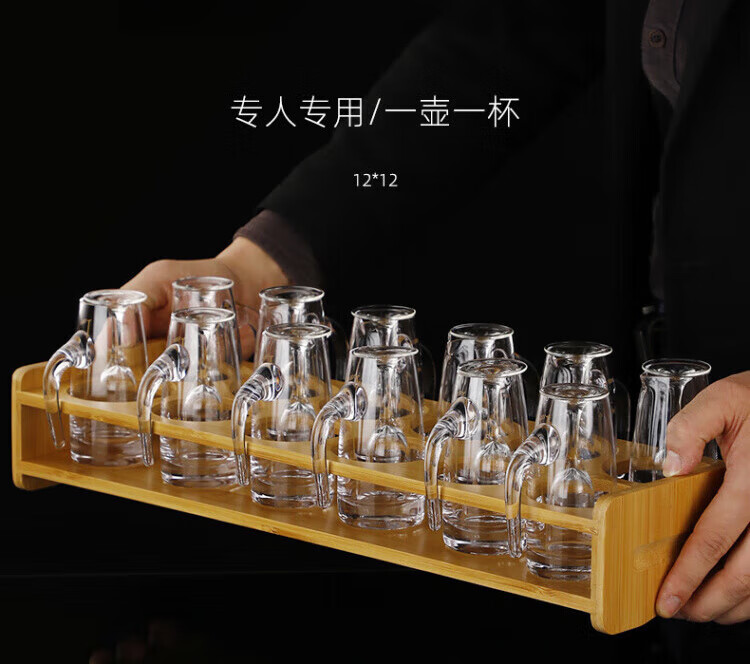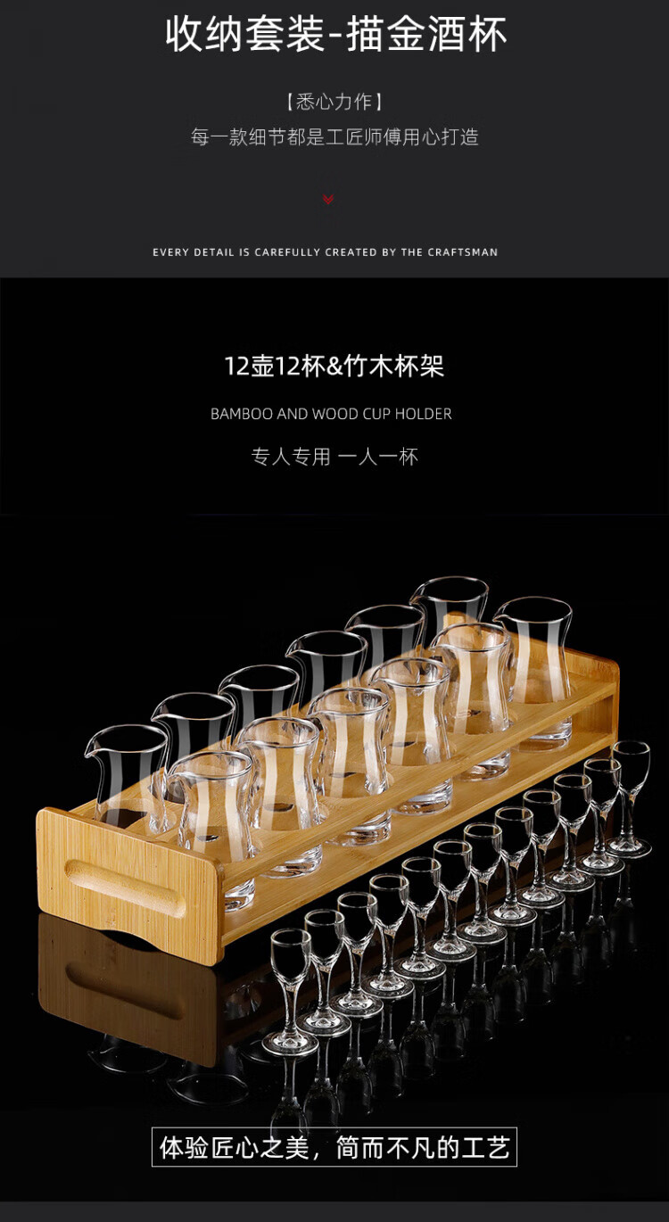 WCZ German high-end 12 white wine glasses, wine divider, cup holder storage set, crystal glass goblets, small wine glasses for home use (12 pots, 12 cups single holder) 100ml gold pot with handle + crystal stem