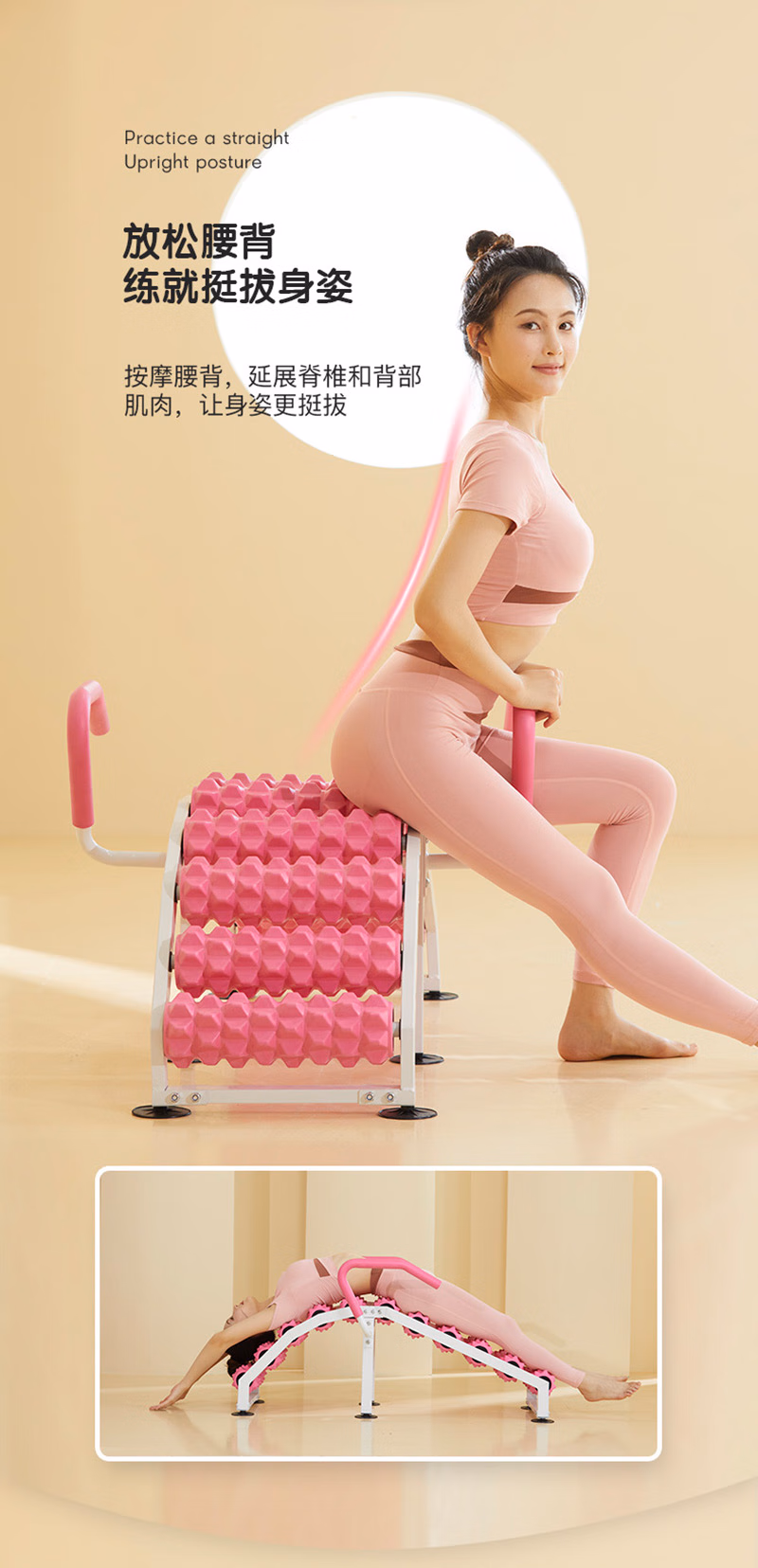 Universal yoga wheel, muscle relaxation, lumbar soothing device, Pilates, full body stretching massage, open back and lower waist, girly pink (folding model) + safety foot clip + open strap