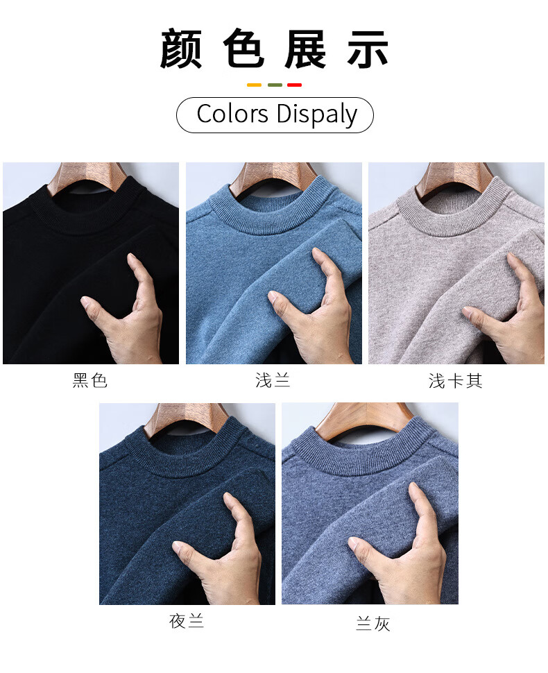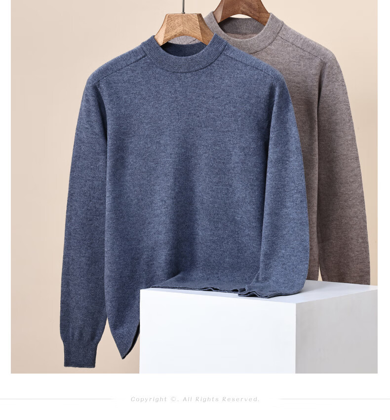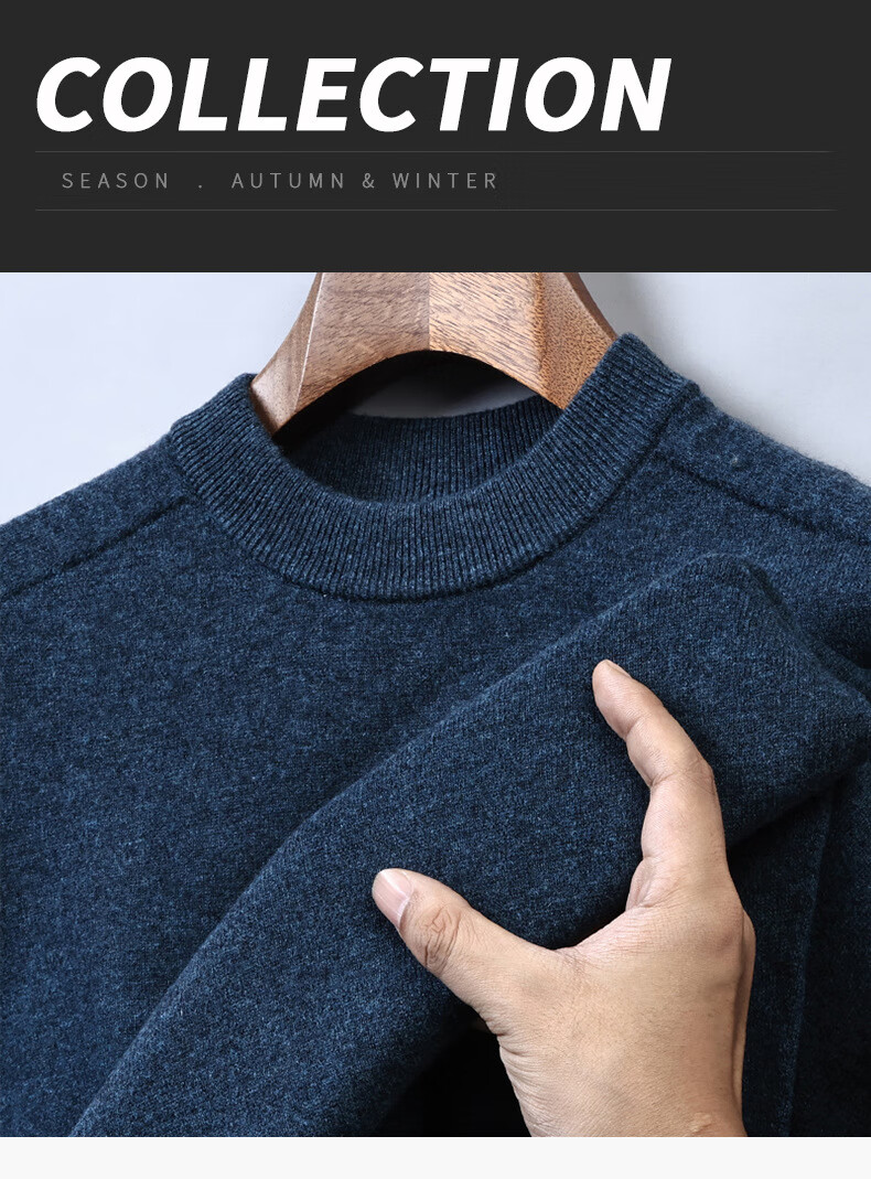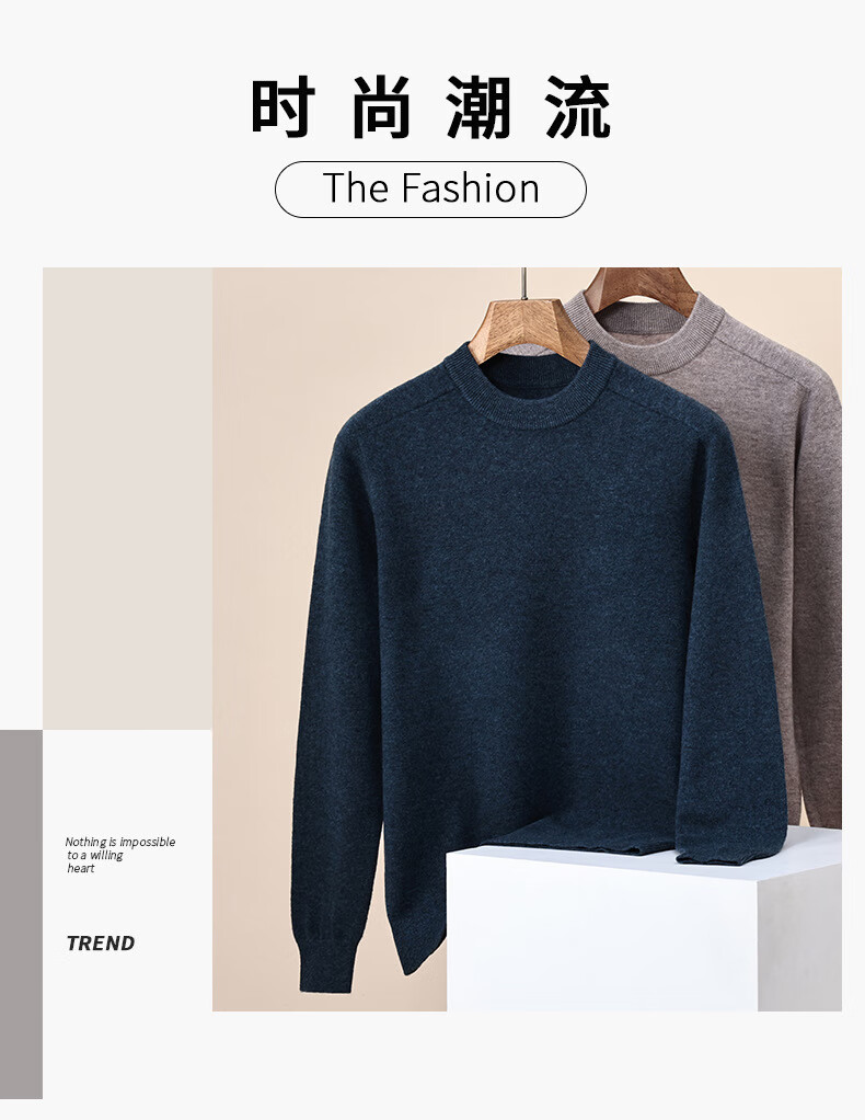 100% sheep wool sweater men's autumn and winter new solid color bottoming shirt round neck men's wool sweater top trendy light blue XL 180/96A (115)