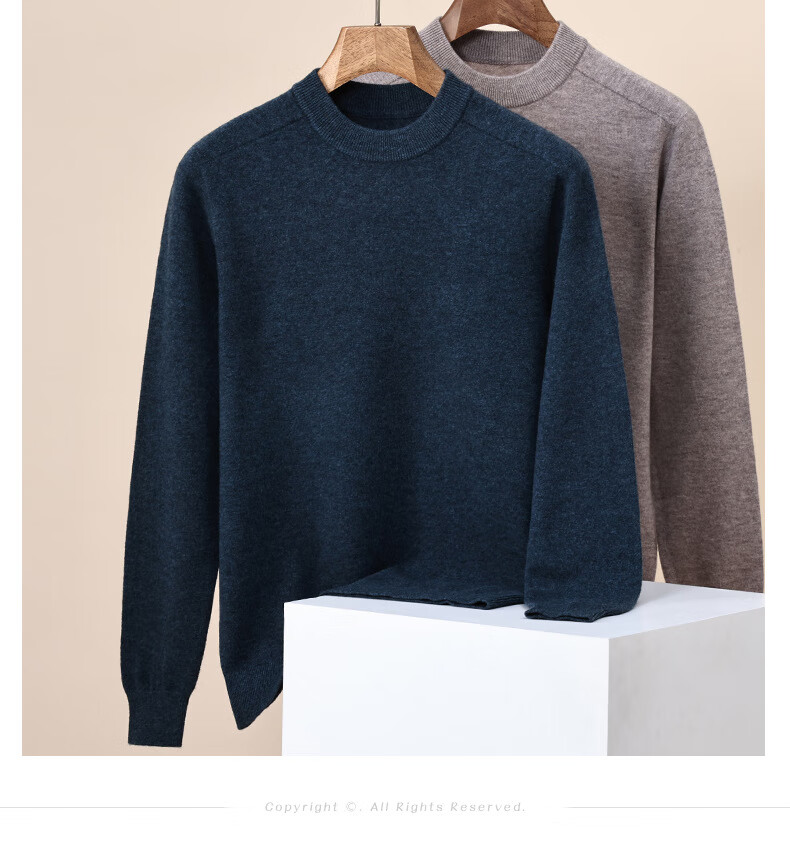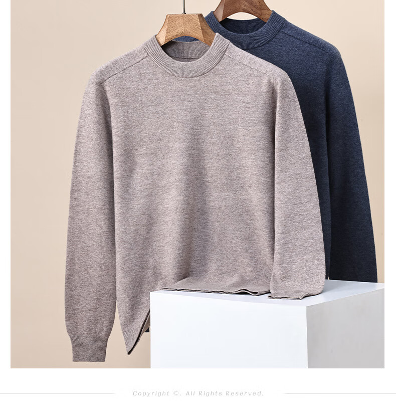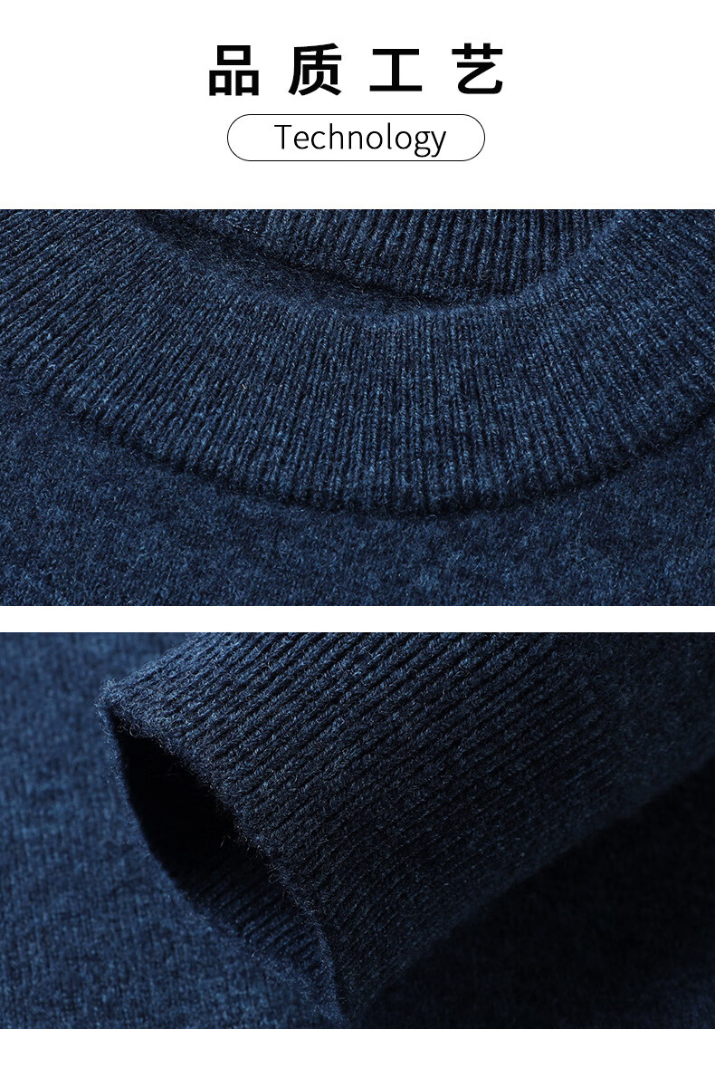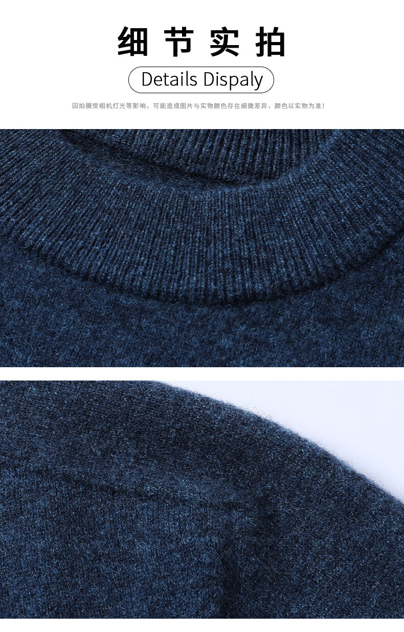 100% sheep wool sweater men's autumn and winter new solid color bottoming shirt round neck men's wool sweater top trendy light blue XL 180/96A (115)