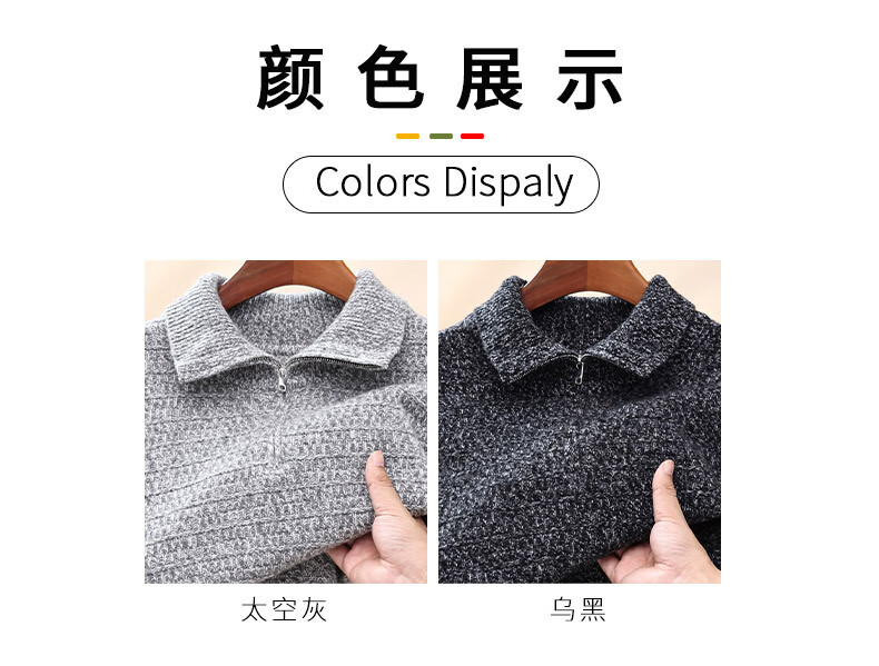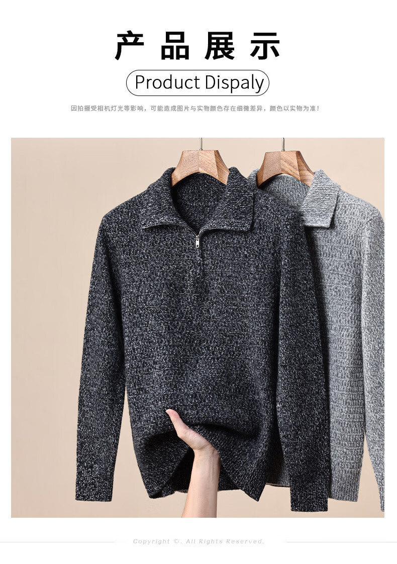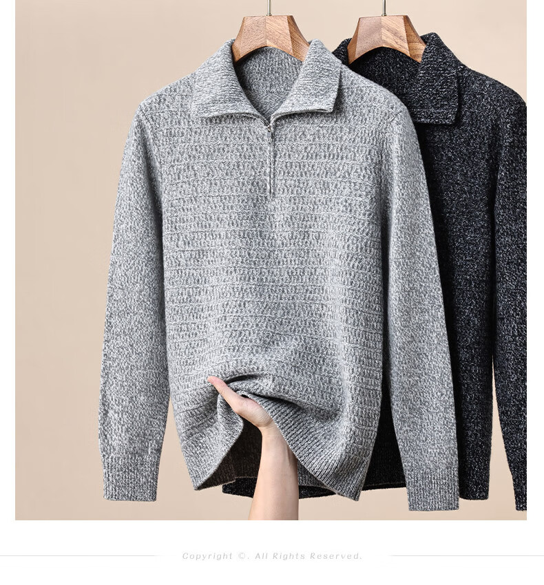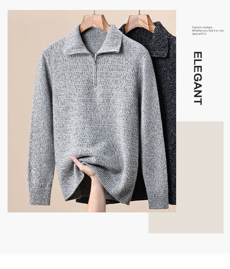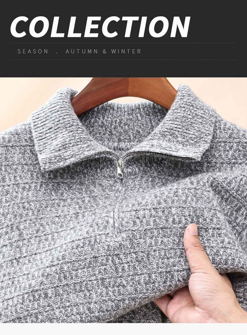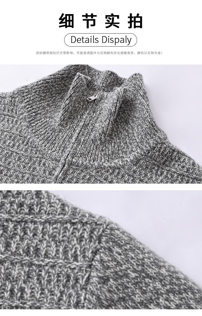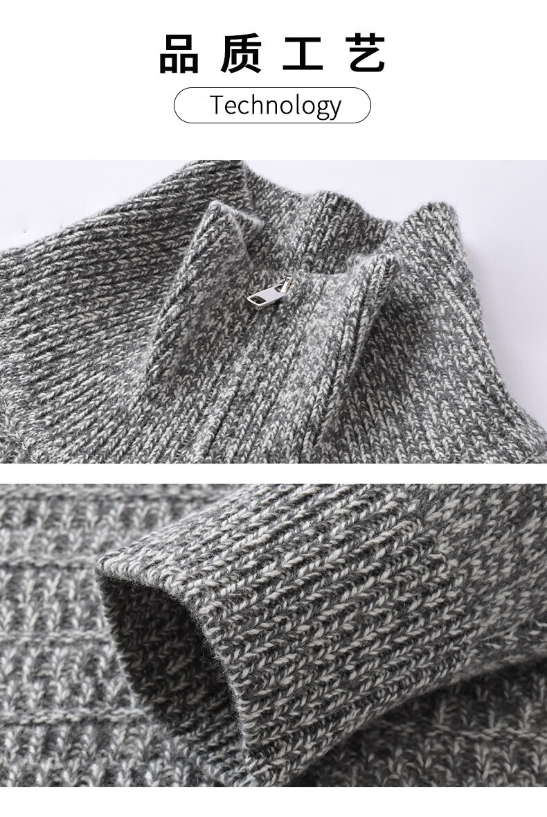 Floral yarn 100% pure wool sweater men's autumn and winter new zipper half turtleneck bottoming sweater men's wool sweater white gray M 170/88A (105)