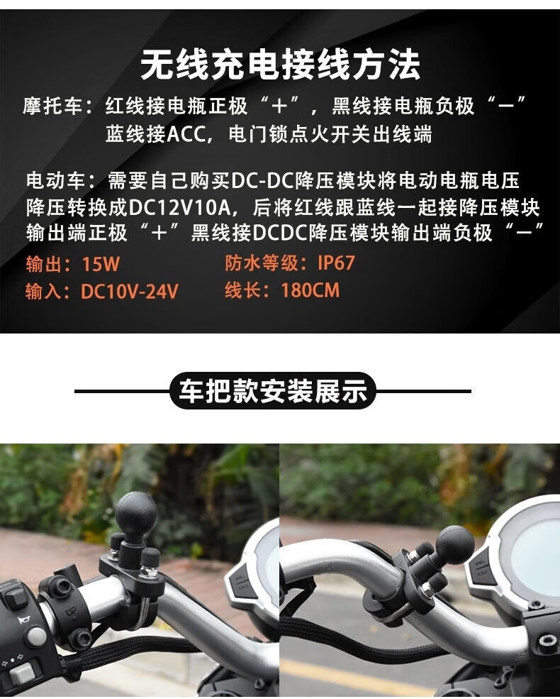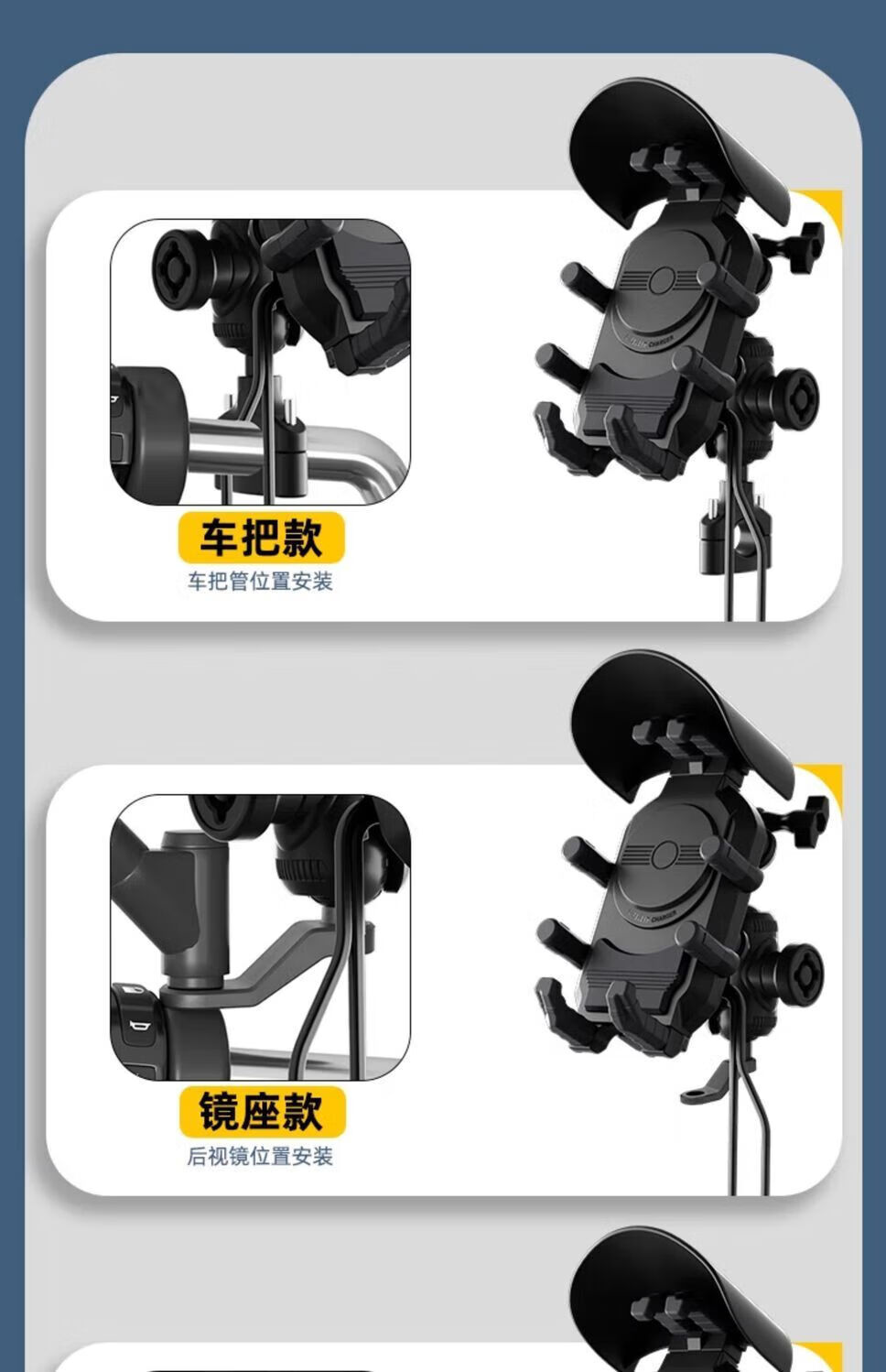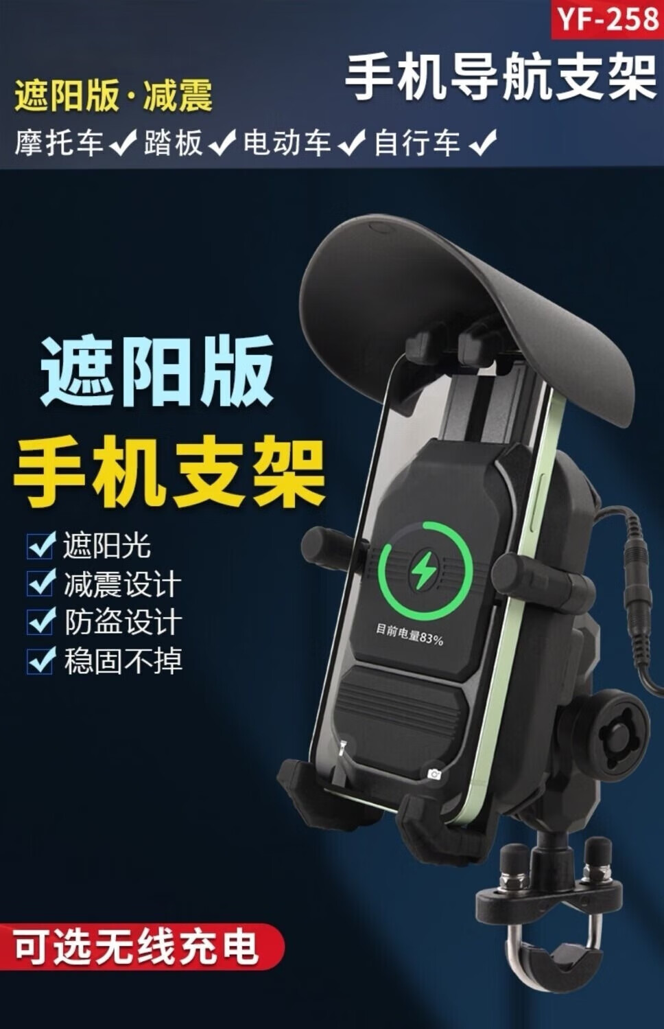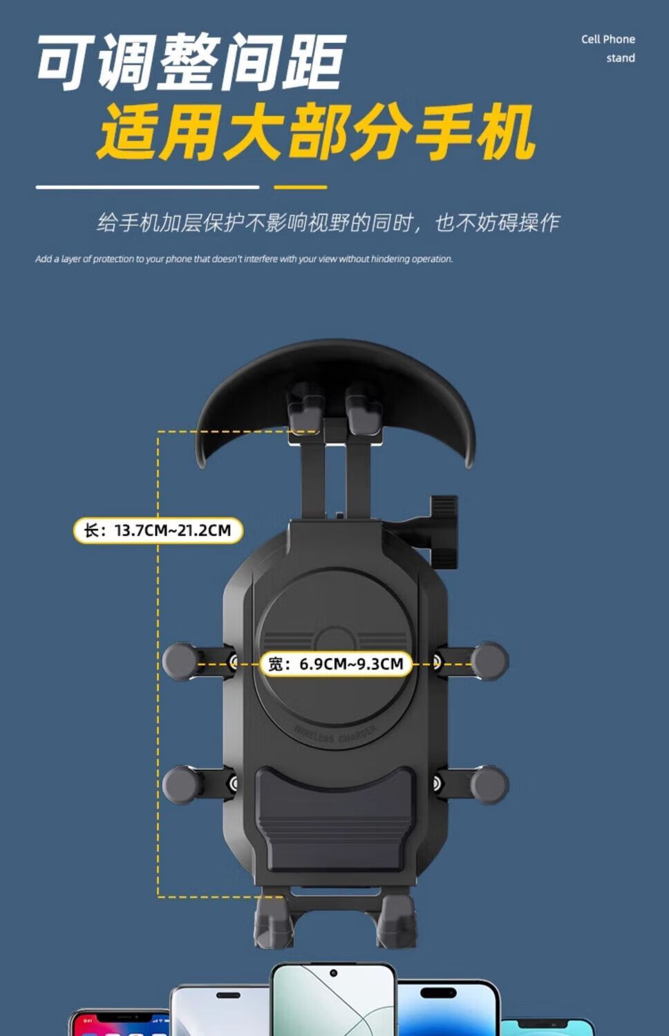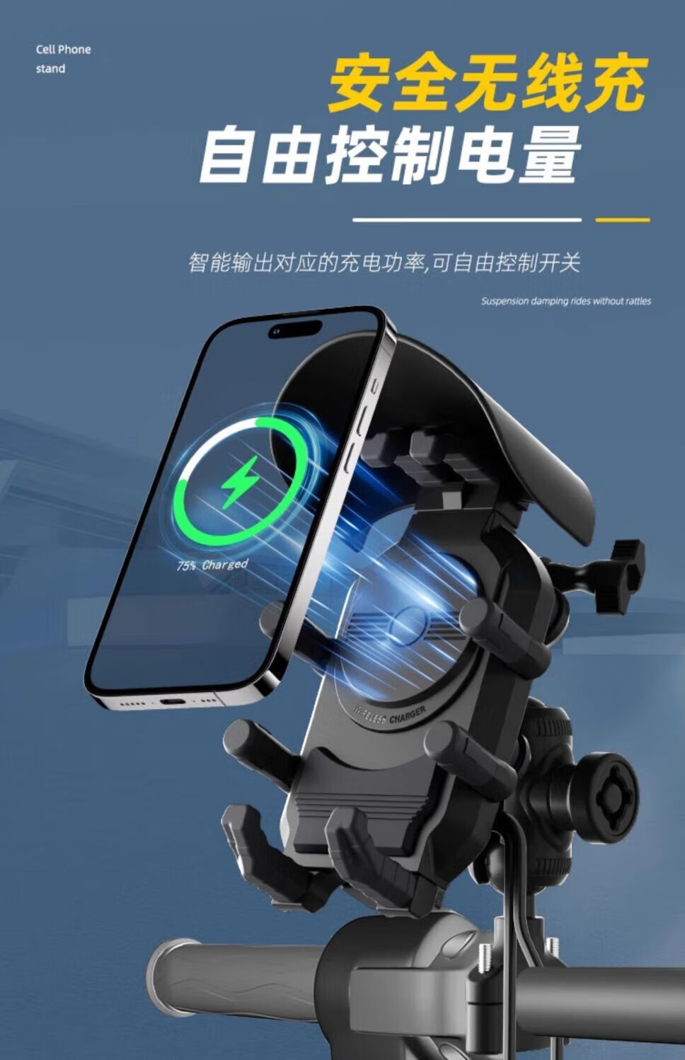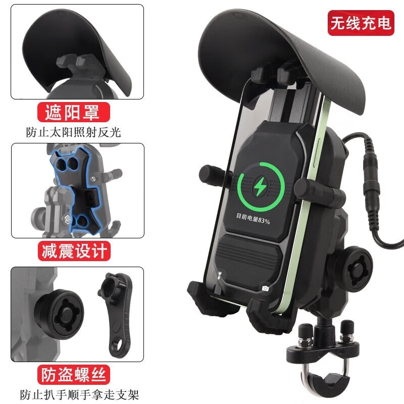 Qiangchen motorcycle mobile phone holder wireless charging shock absorption shockproof anti-theft bicycle battery car sunshade guide electric car owners please contact customer service for wireless charging