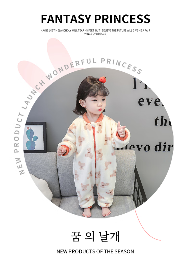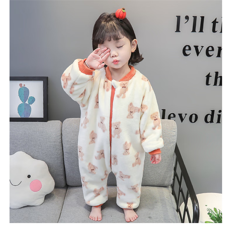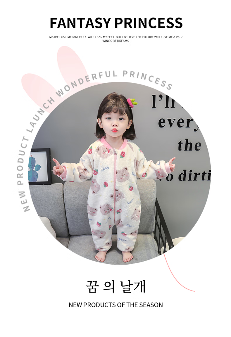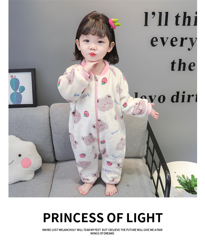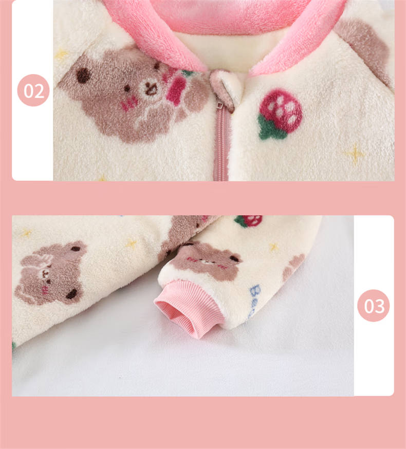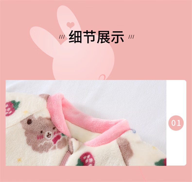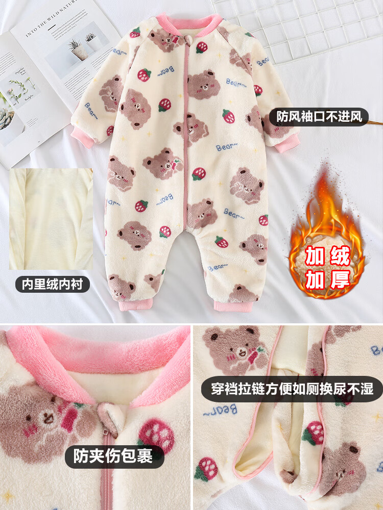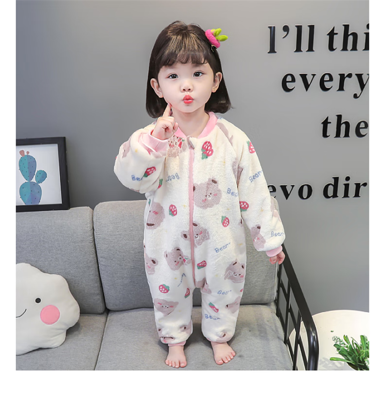 Langsha children's one-piece pajamas coral velvet baby girl autumn and winter plus velvet thickened flannel crawler cartoon baby sleeping bag pink double layer plus velvet thickened room temperature 0-10 degrees M 80cm recommended for 0-1 years old