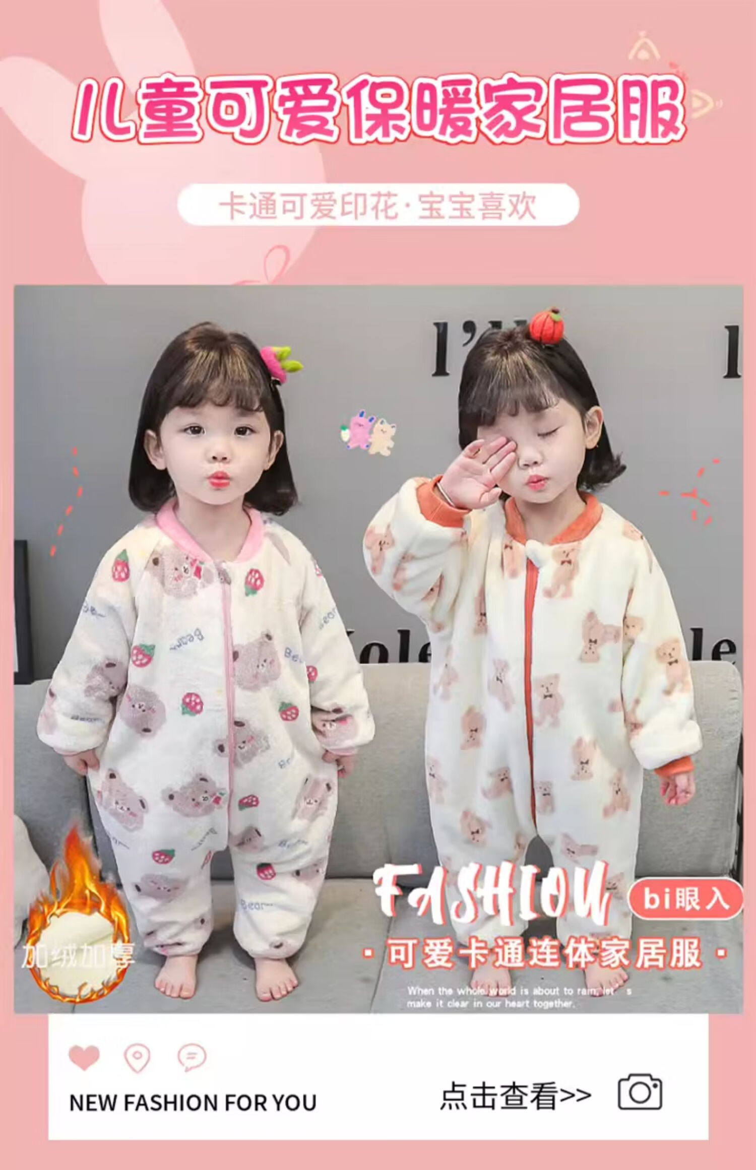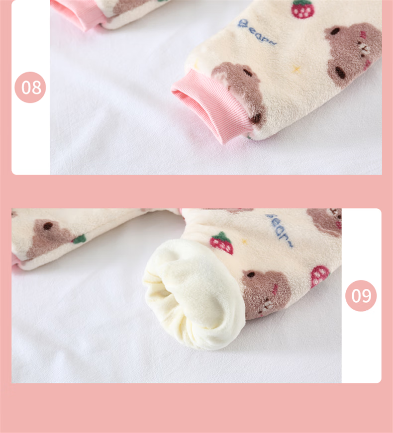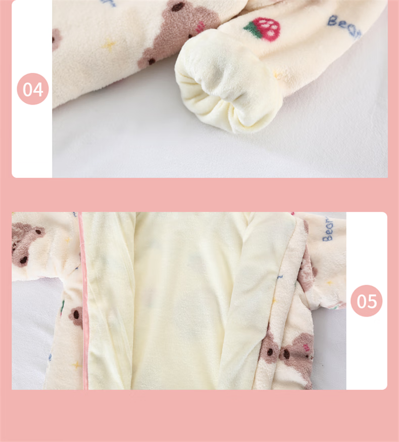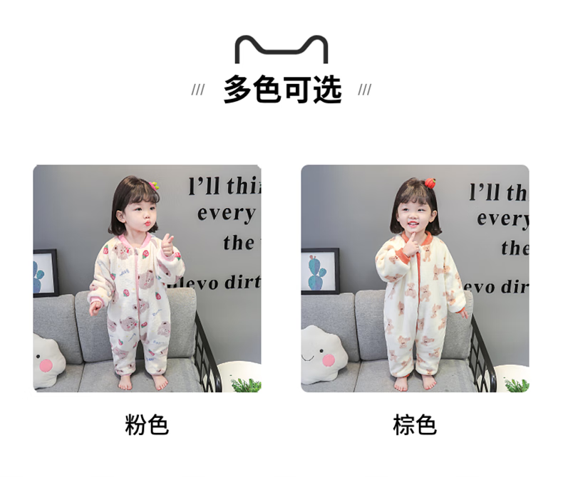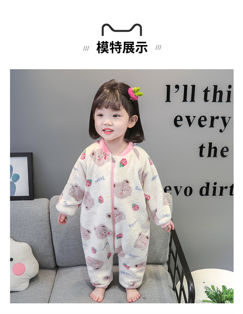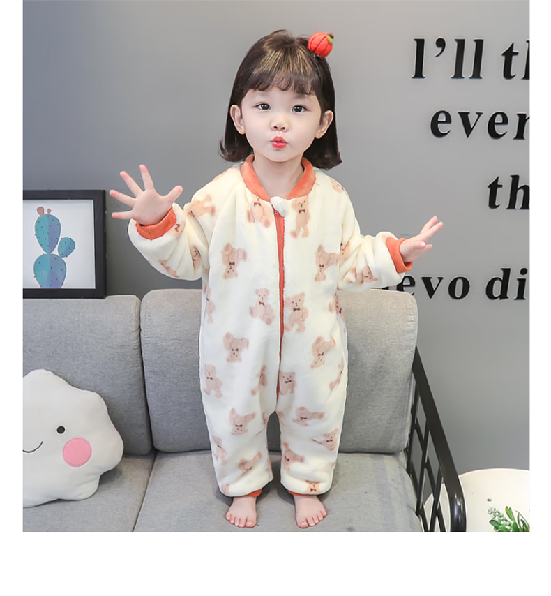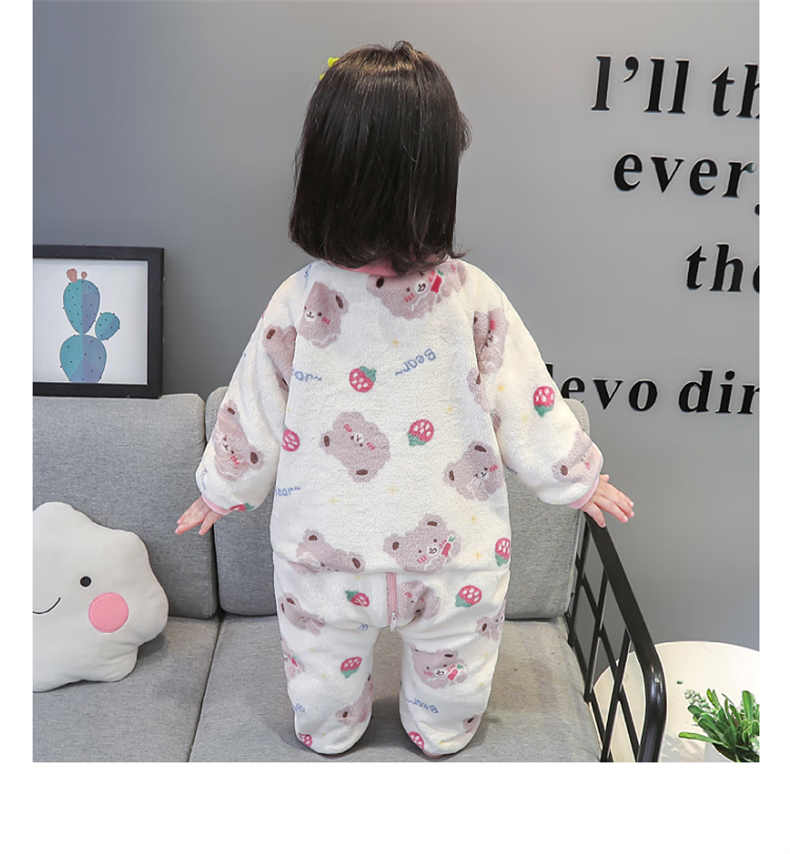Langsha children's one-piece pajamas coral velvet baby girl autumn and winter plus velvet thickened flannel crawler cartoon baby sleeping bag pink double layer plus velvet thickened room temperature 0-10 degrees M 80cm recommended for 0-1 years old