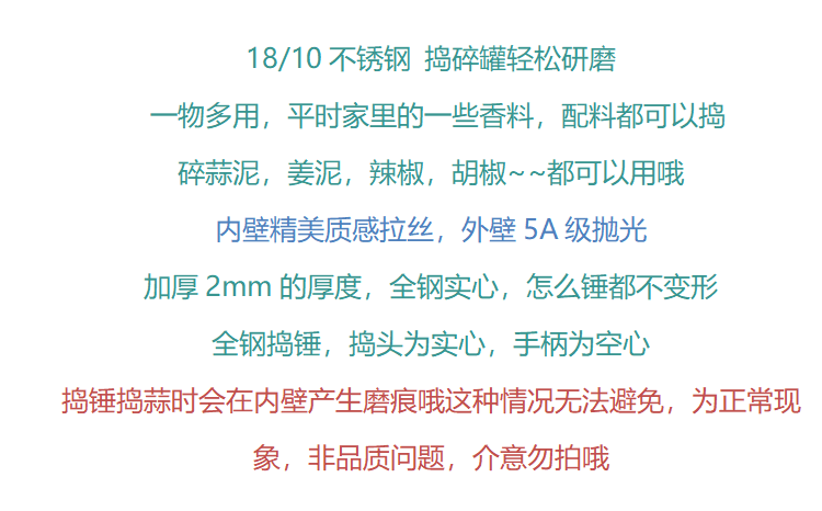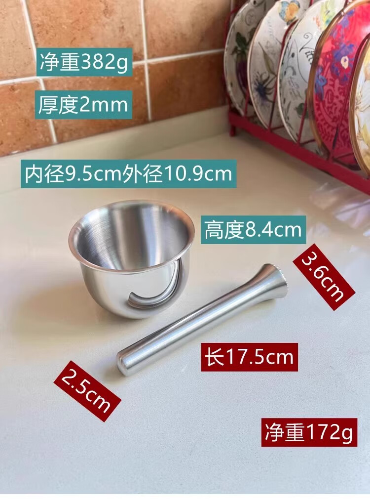 Wing Fantasy 18/10 stainless steel thickened solid garlic pounder stone mortar pounding jar home