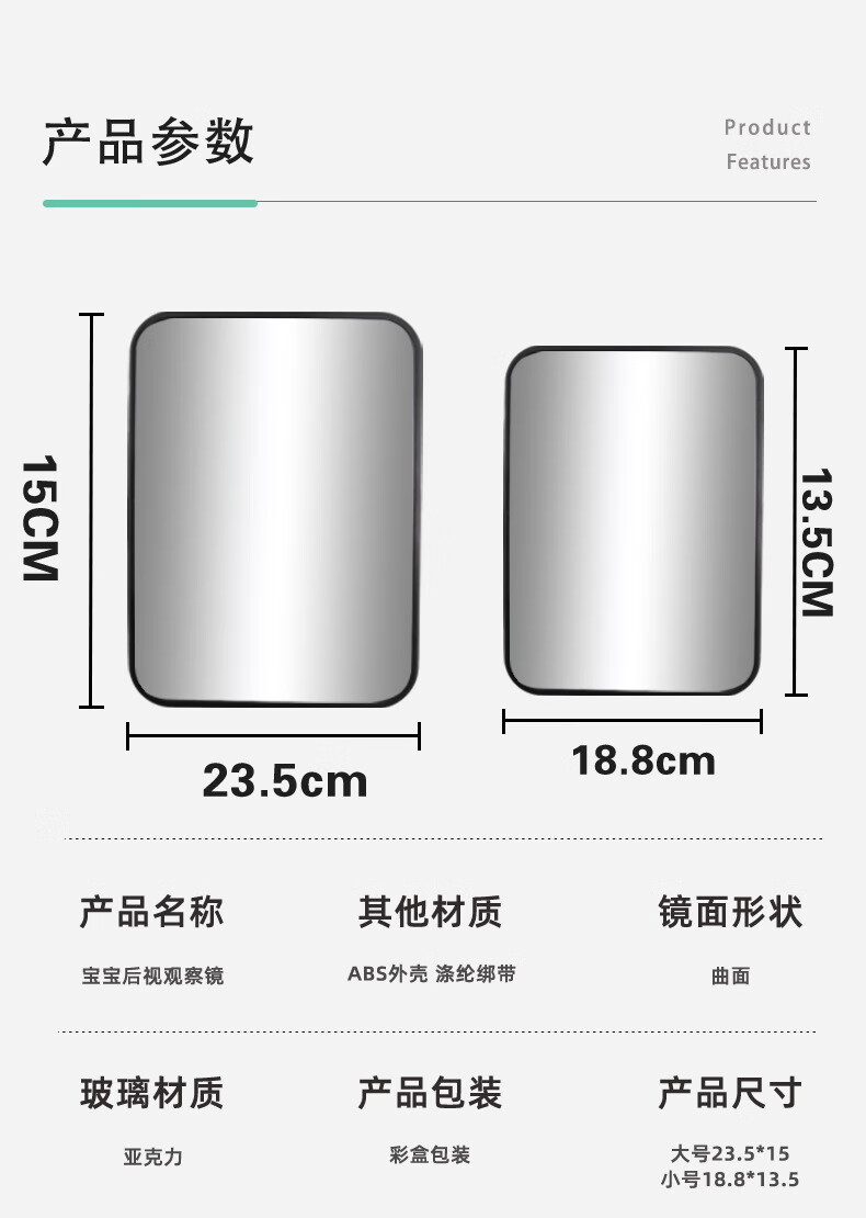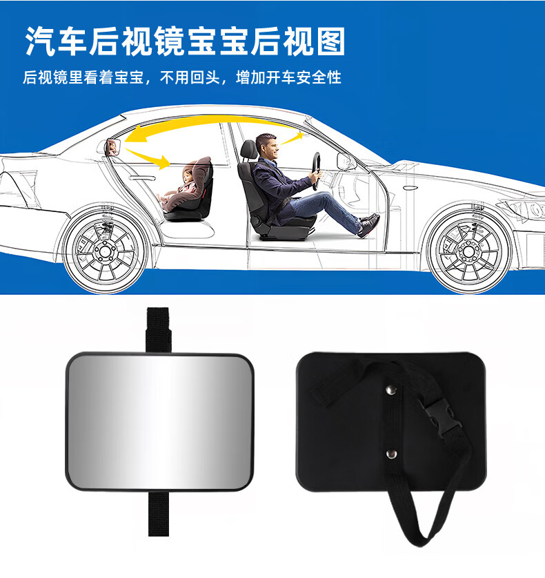 Car interior rearview mirror, child safety seat viewing mirror, car reverse baby viewing mirror, car interior baby mirror, small size 18.8*13.5CM