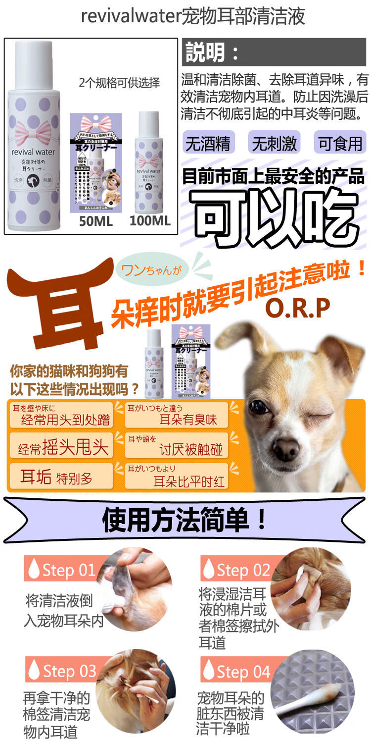 Japan's original imported ORP licensed water pet ear wash, eye wash, mouthwash, sterilization, deodorization, mite removal, decontamination ORP pet eye cleaning solution 100ml bright yellow bottle