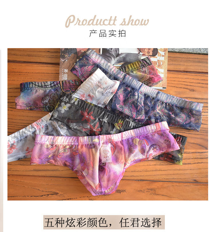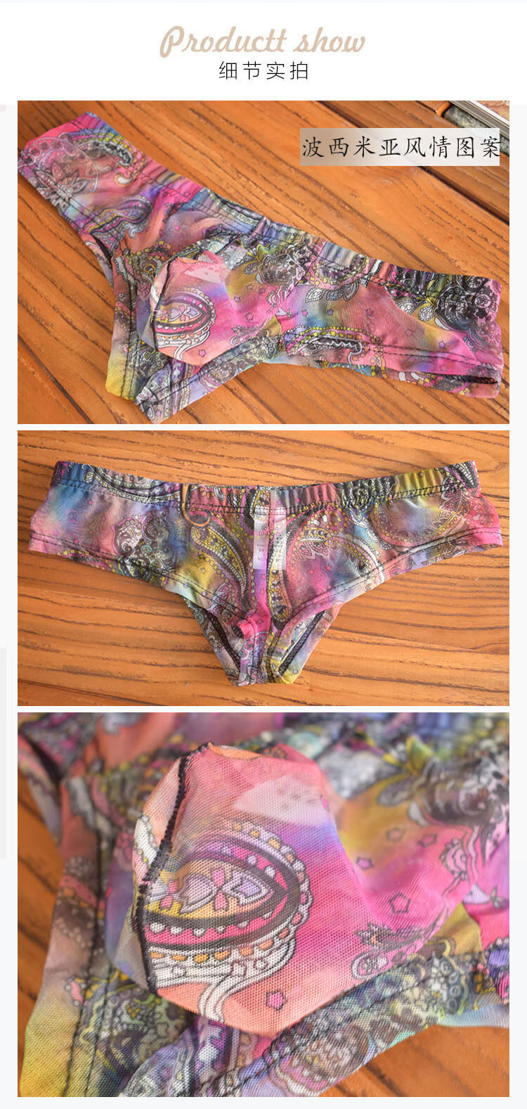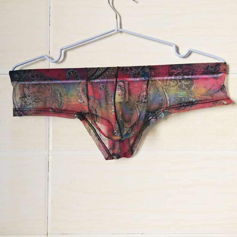 2 pieces of men's printed large pouch sexy boxer briefs U convex transparent mesh thong half hip coverage sports narrow hips Royal blue one size large S2-2 points 3 feet
