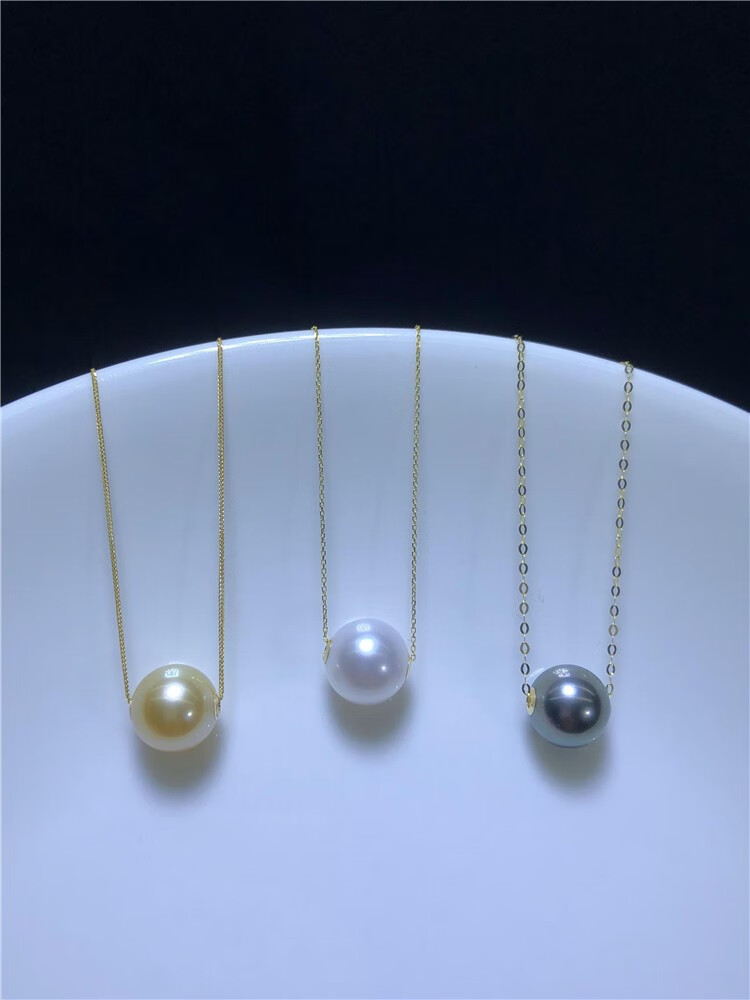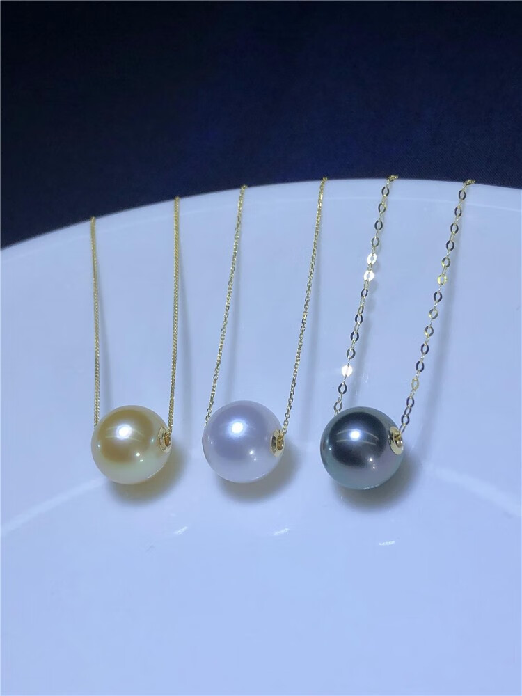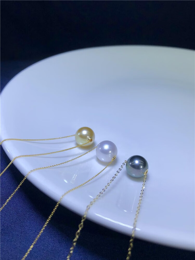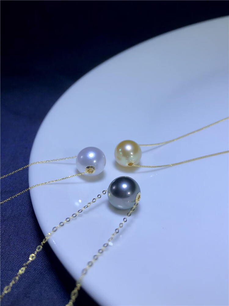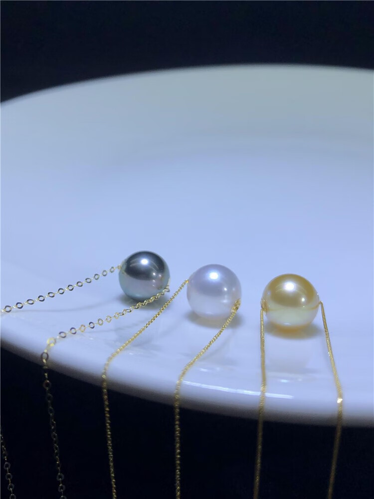 Pei Meng white and black three seawater pearl necklace pendant clavicle single perfect round strong light flawless 8-8 points 5mm---pearl unified default