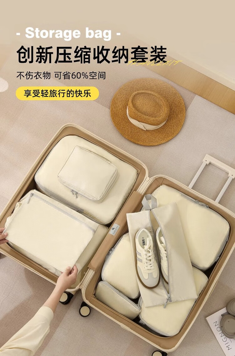 Yusenyi travel storage bag suitcase storage bag business trip essential clothing underwear compression packaging organizer travel beige compression four-piece set