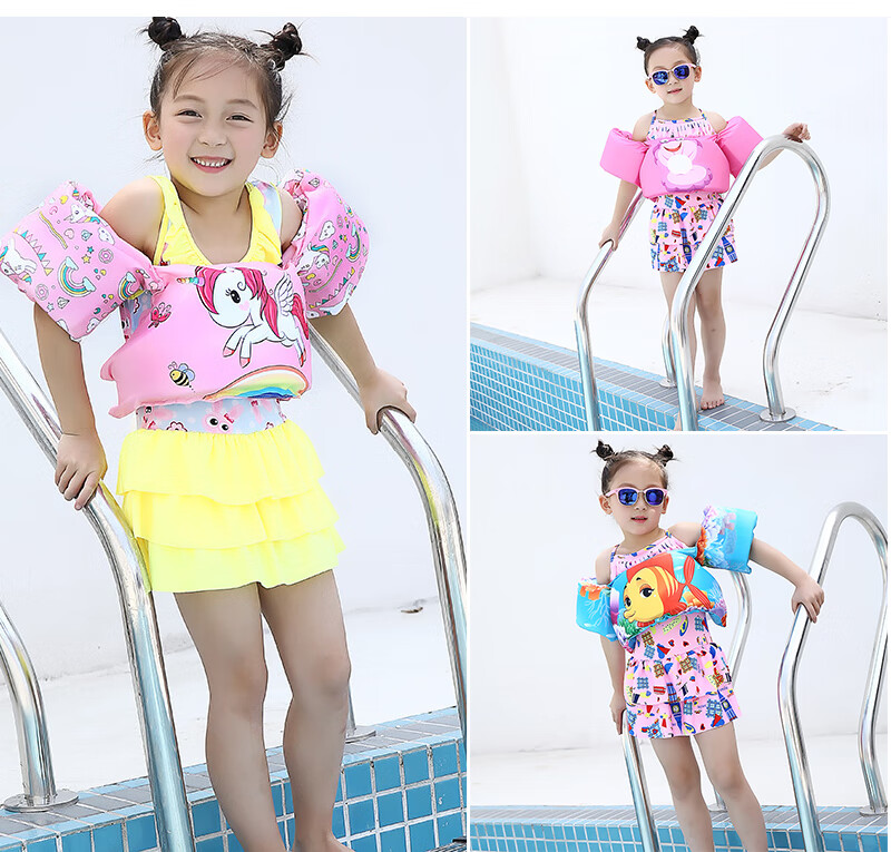 He Jiagong infant and toddler children's baby swimming equipment buoyancy arm ring floating ring water sleeve swimming ring learning swimming vest life jacket pink pony upgraded version + swimming goggles + swimming cap + nose clip earplugs