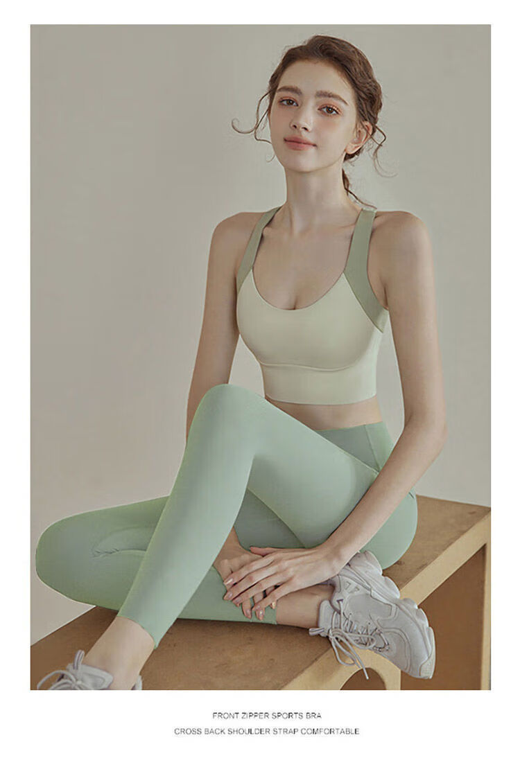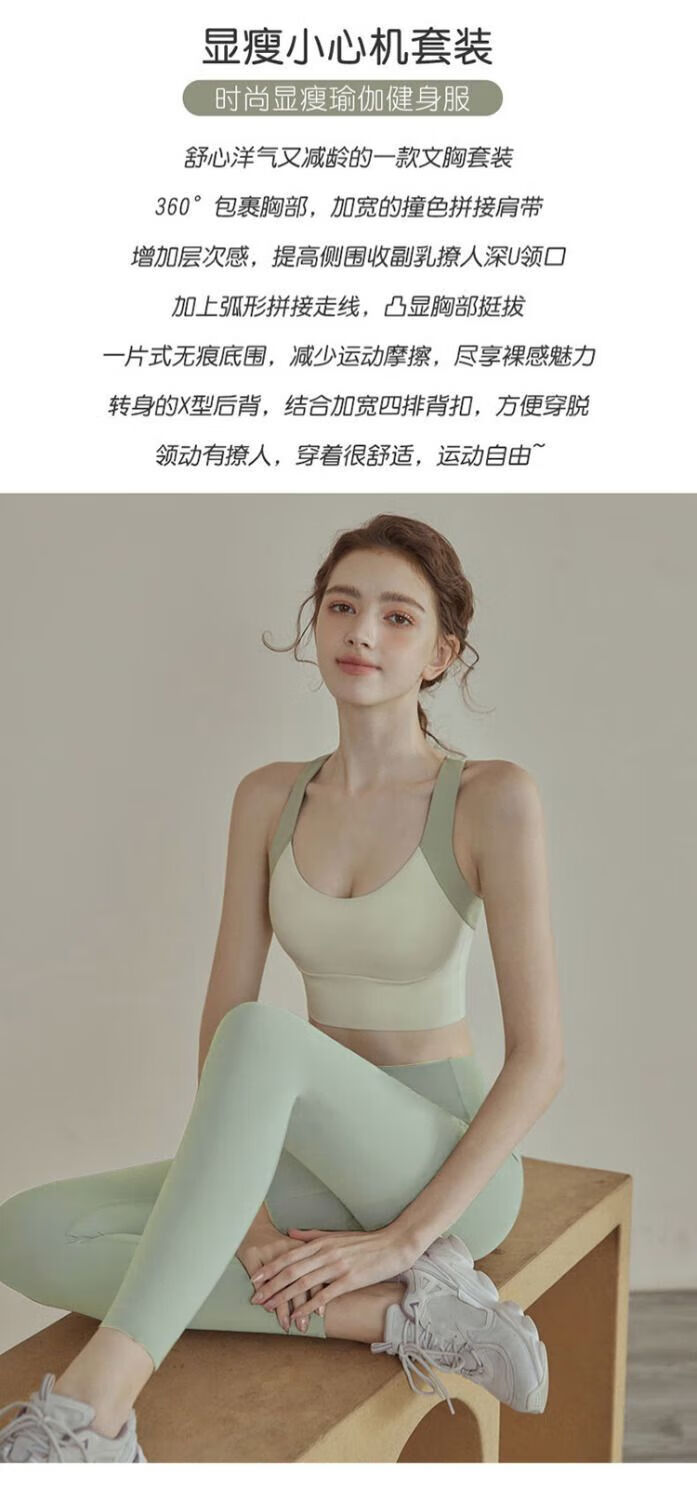 DYAASS Pilates Clothes Breathable Hollow Beautiful Back Yoga Clothes Women's Fashionable Anti-Sagging Fitness Suit Sports Yoga Pants Suit Light Grass Green + Young Bud Green XL XL116-130Jin Jin is equal to 0.5 kg