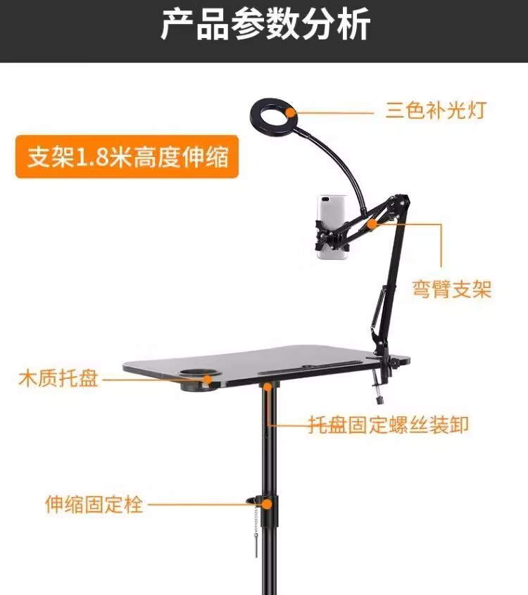 Electric lifting table legs, computer table bracket, standing high table, outdoor live broadcast table, portable standing office, separate mobile phone arm