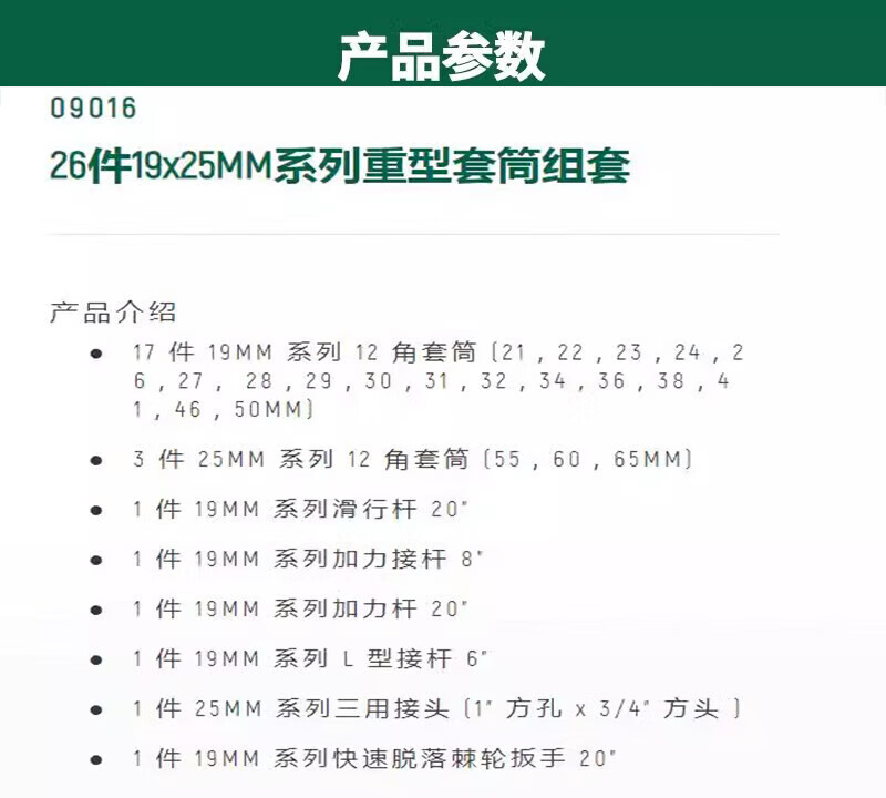 SATA hardware tools 26 pieces 19MM series heavy-duty socket set machine repair auto repair 09016 9016