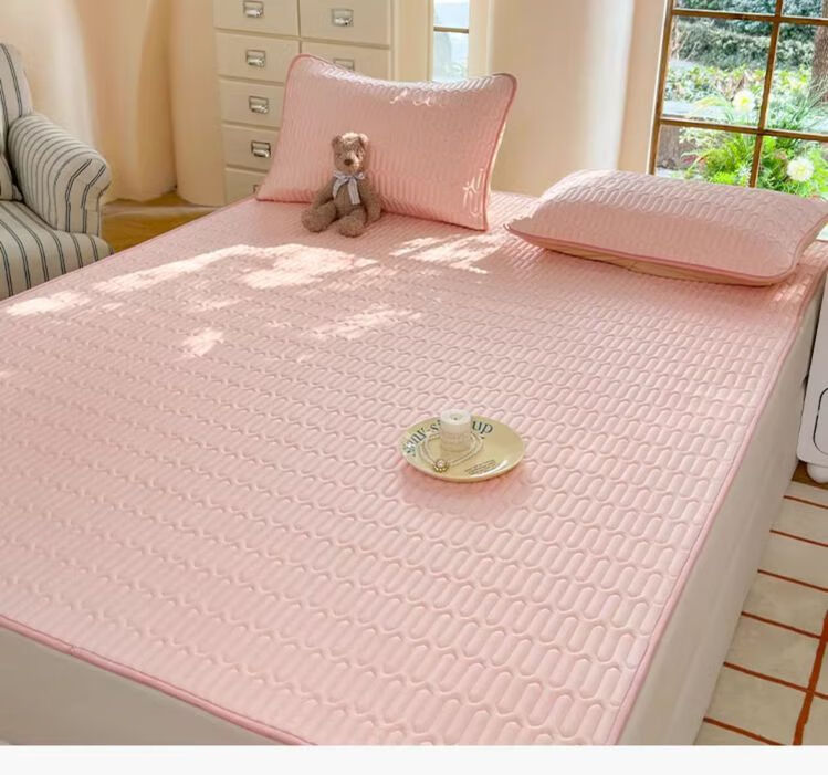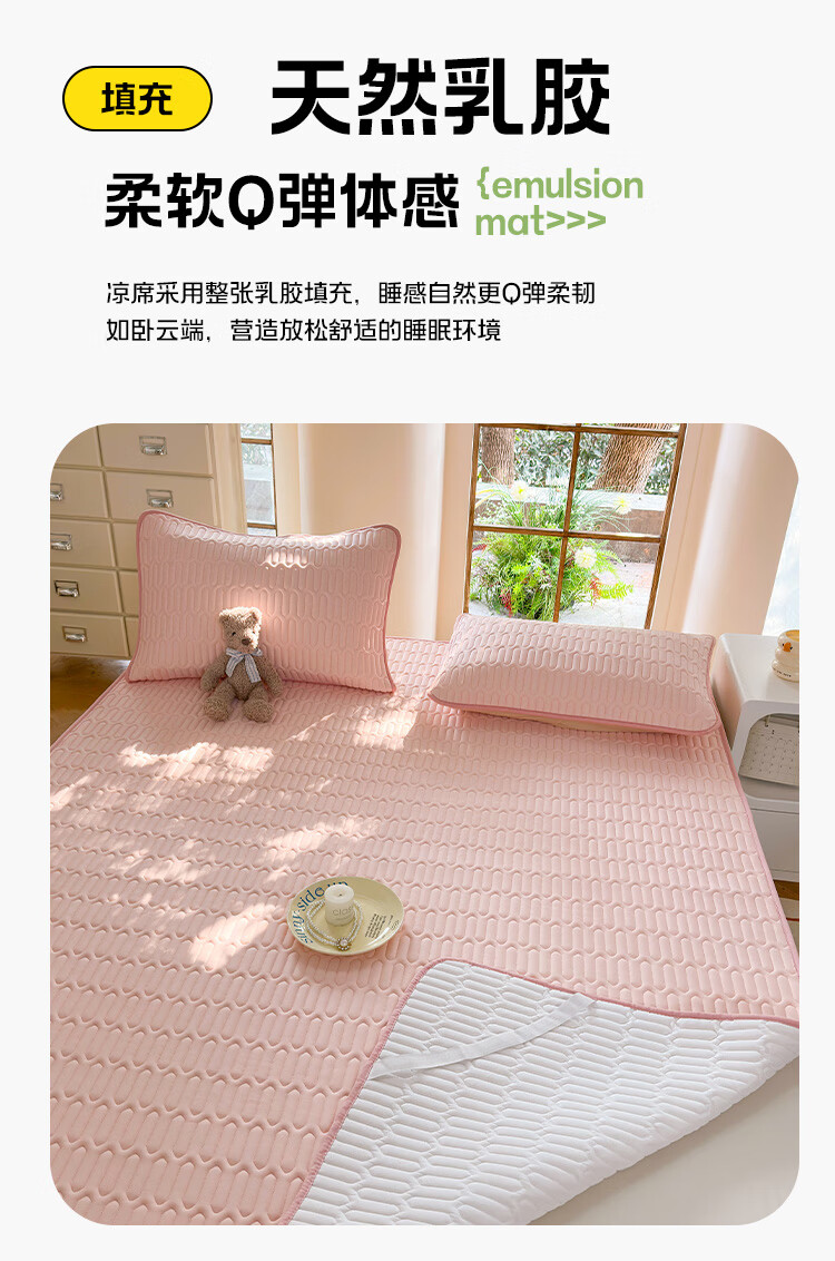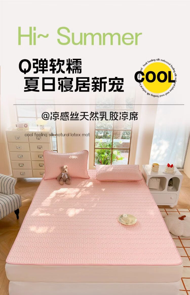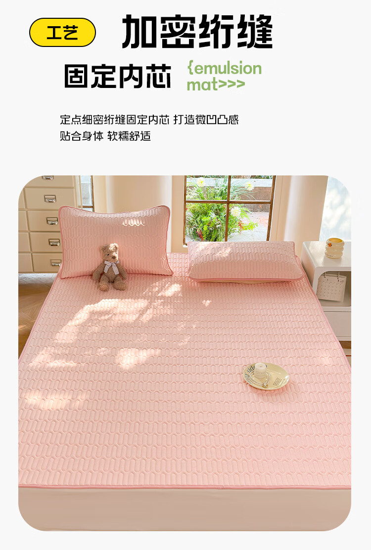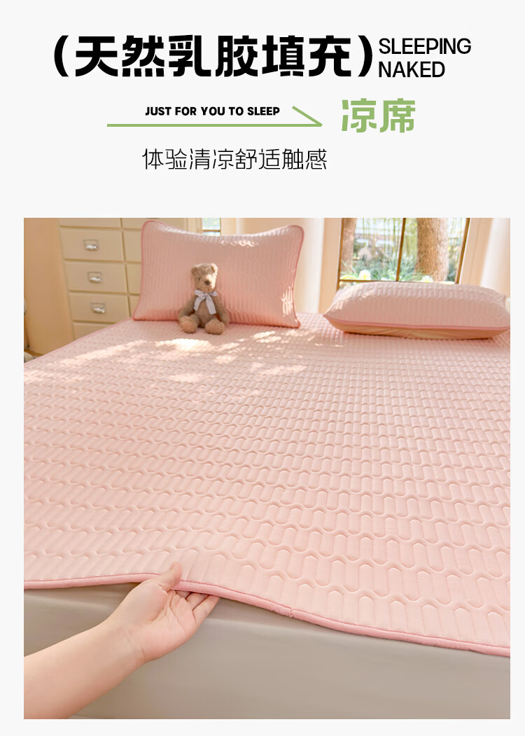 Fantasy latex mat 2025 new summer three-piece ice silk bed sheet single piece washable children's mother and baby bed sheet type bear baby full latex filling free same style pillowcase 100cmx200cm