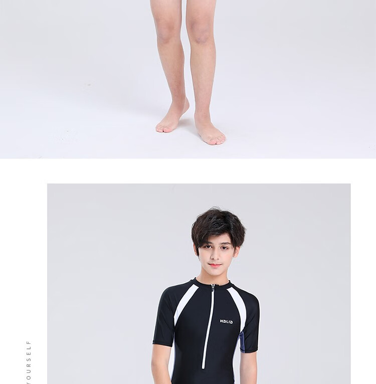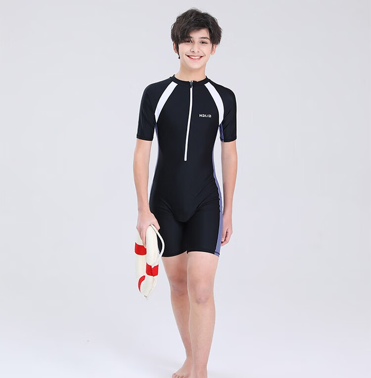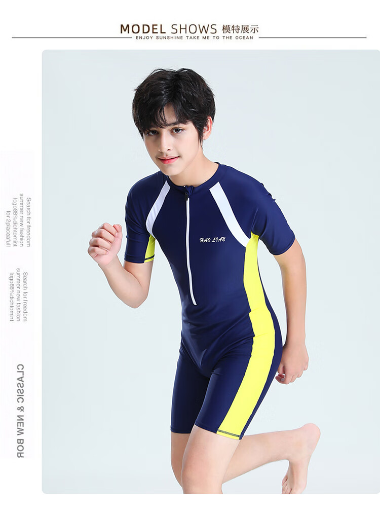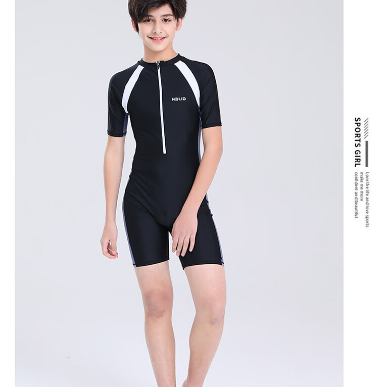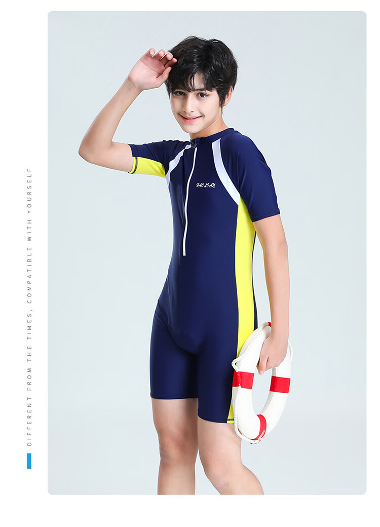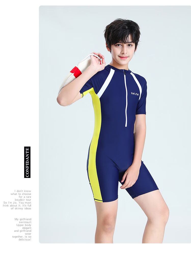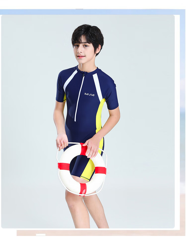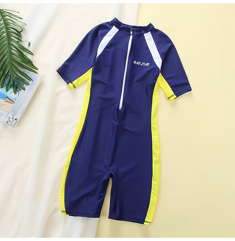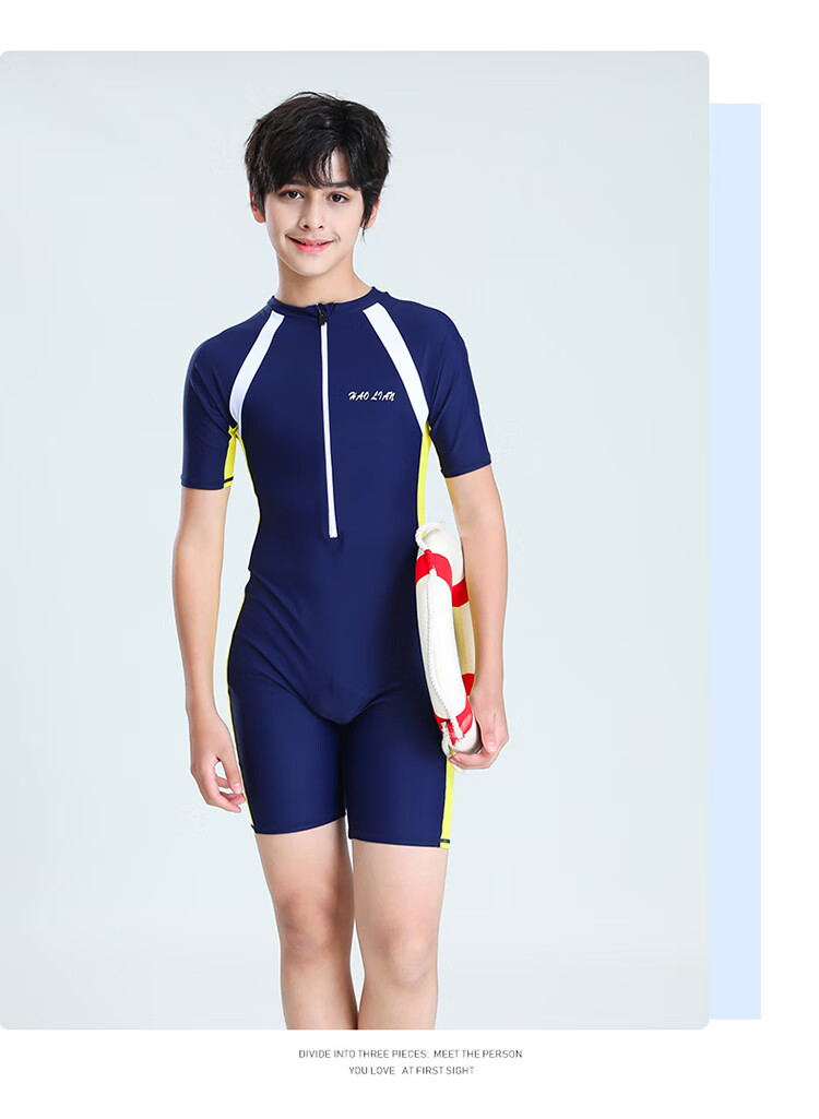 Zailu youth one-piece boxer swimsuit training quick-drying boys' primary school students fat children's swimsuit navy + swimming cap + earplugs nose clip L L35-40Jin Jin is equal to about 0.5 kg