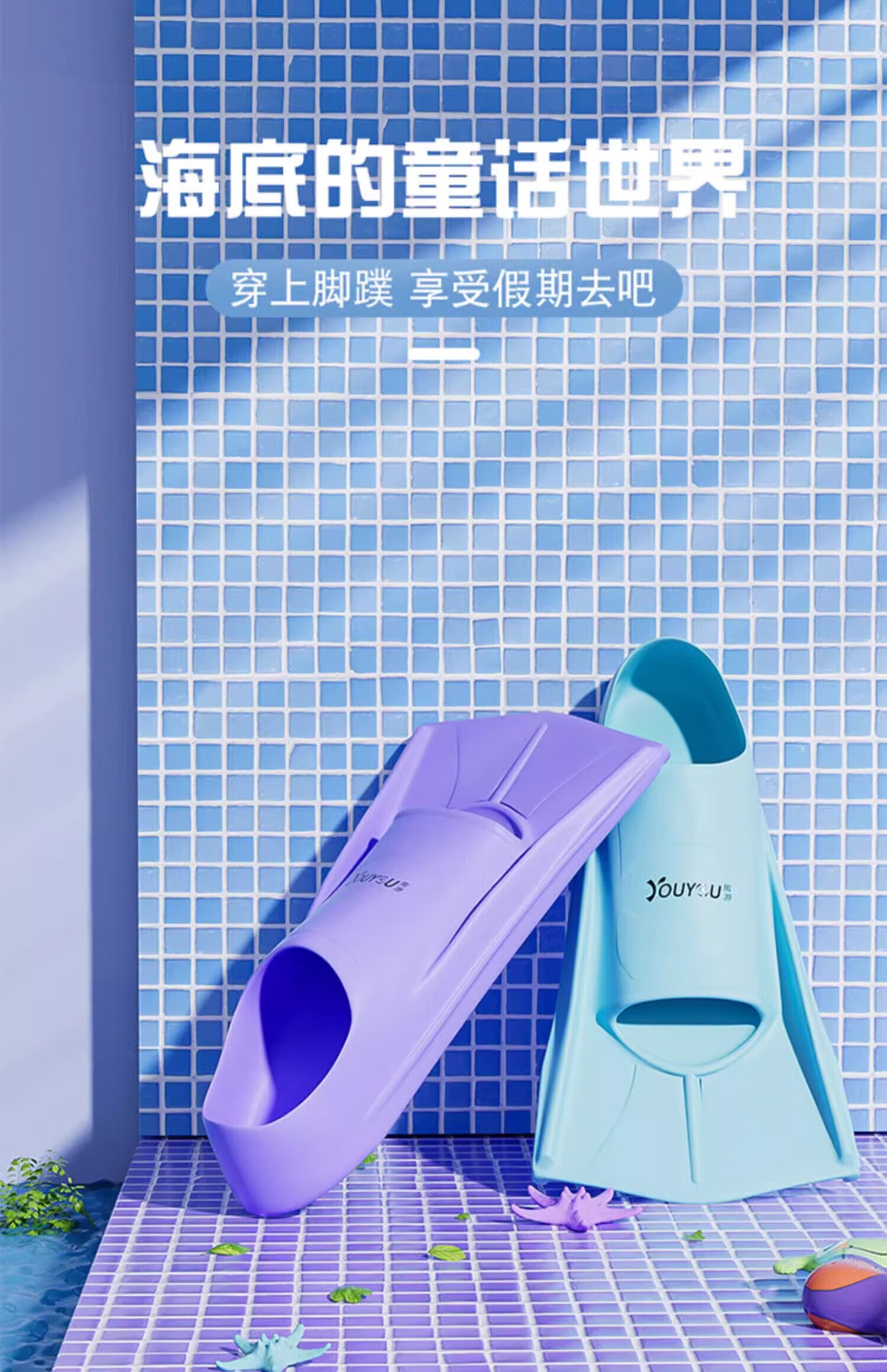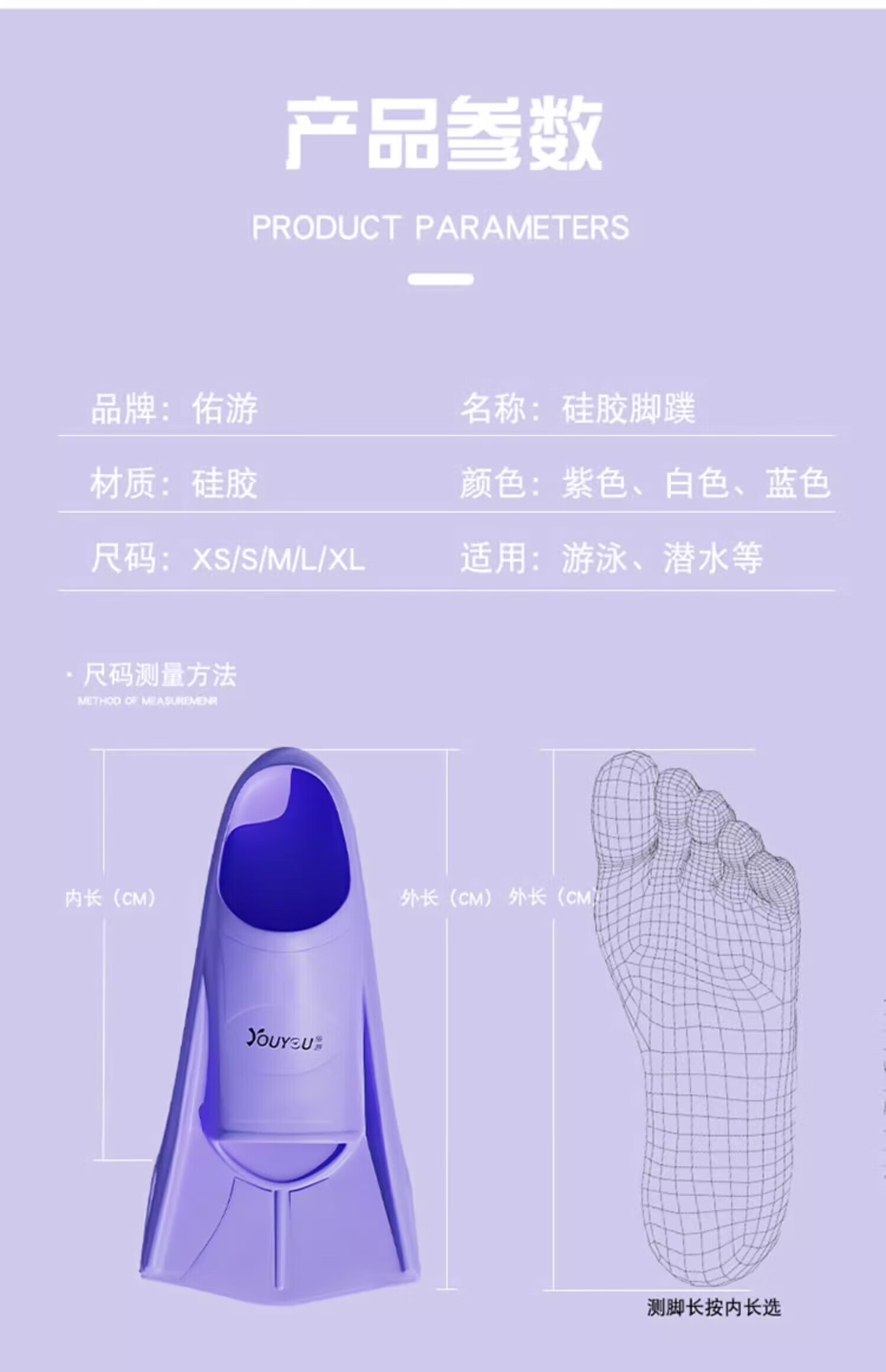 Zailu swimming fins for men and women freestyle breaststroke silicone short fins for children's diving special lightweight training feet dark purple + portable mesh bag + nose clip earplugs XS xs