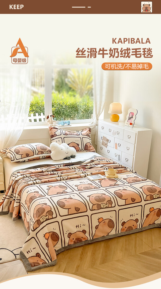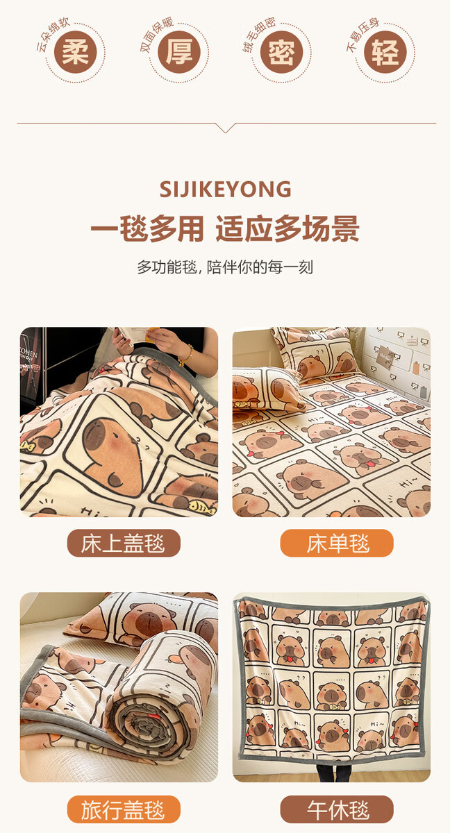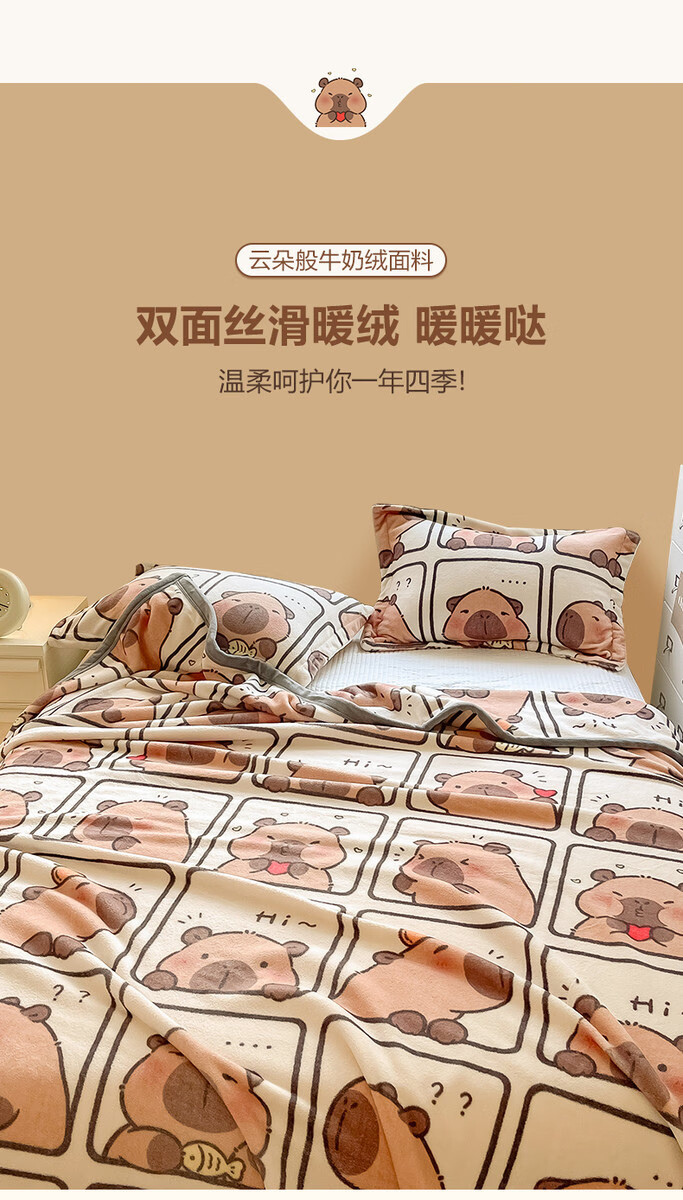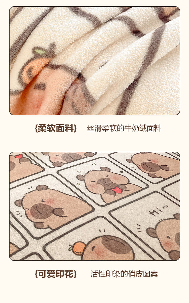Fantasy Cute Card Milk Velvet Blanket Winter Thickened Shawl Office Nap Sofa Cover Blanket Learning Small Blanket Sheets Cute Capybara Double-sided Milk Velvet Anti-static and Easy to Shed 1.0x1.5m Shawl Blanket Air-conditioned Room Cover