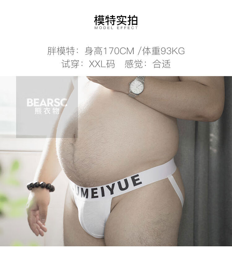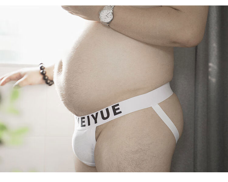 Men's underwear pure cotton double thong sexy fashionable low waist thong hollow butt exposed fat bear large size new white M recommended 45-58 kg