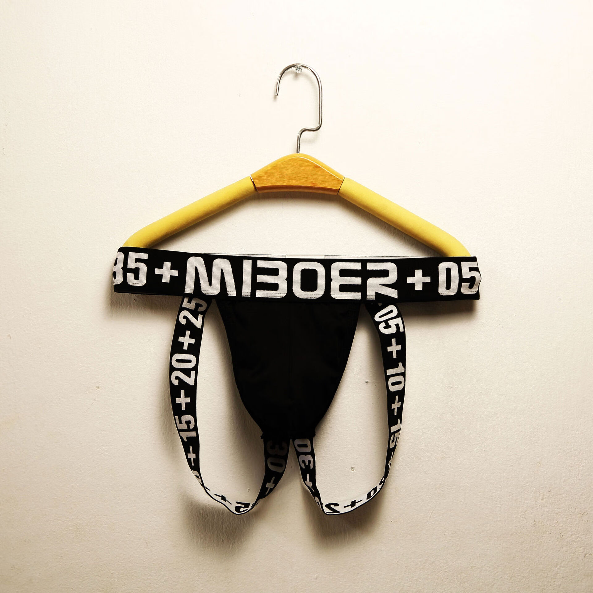 Sports thong men's sexy low-waist pure cotton white shorts fitness butt-exposing butt-lifting double-butt underwear black 384 men's size M