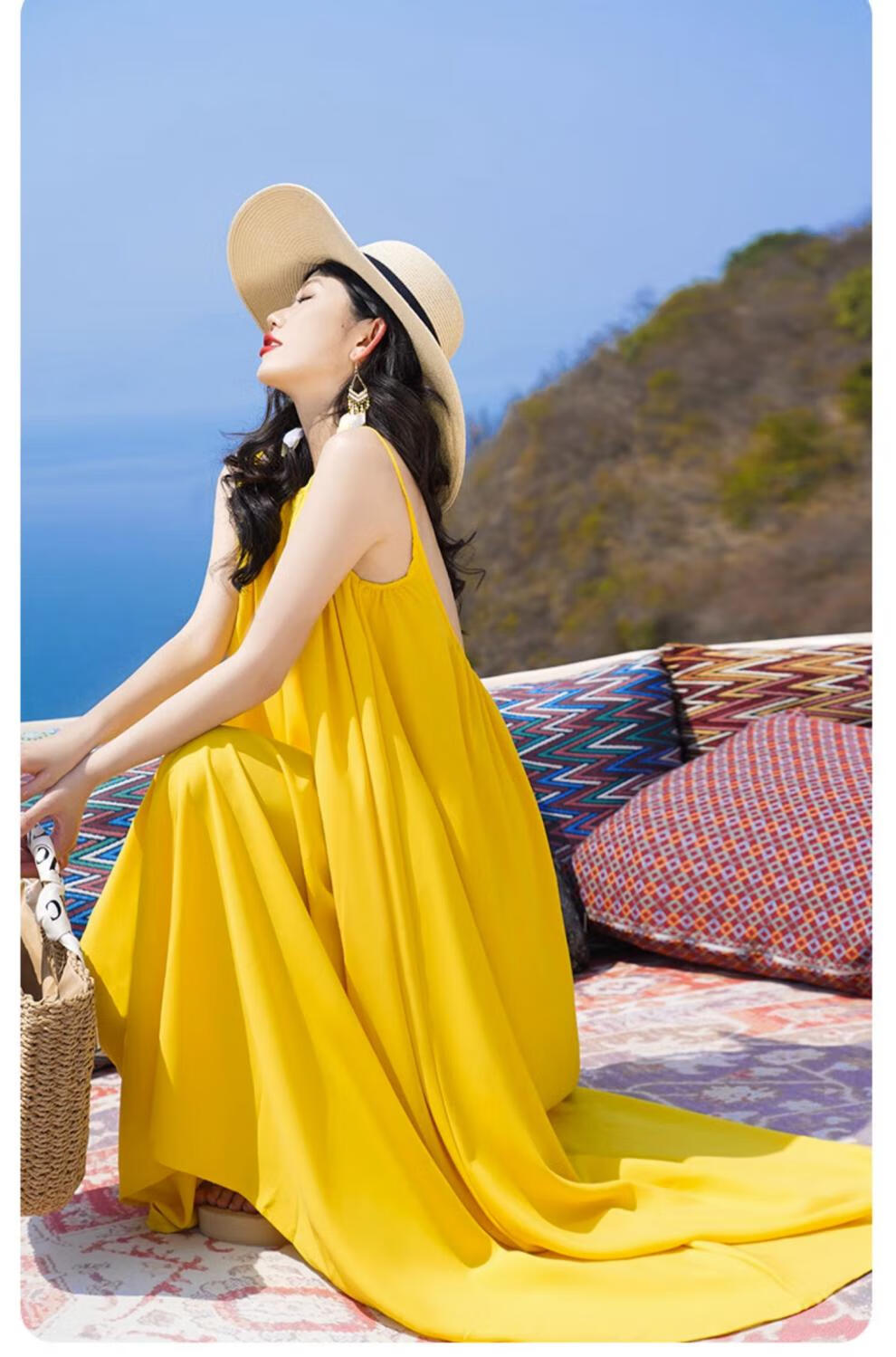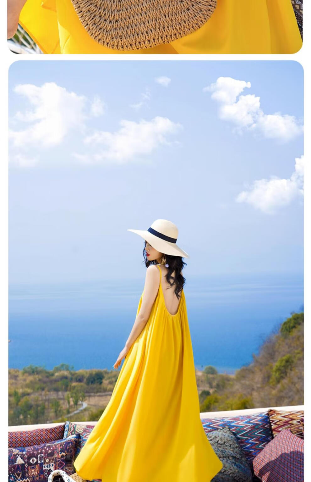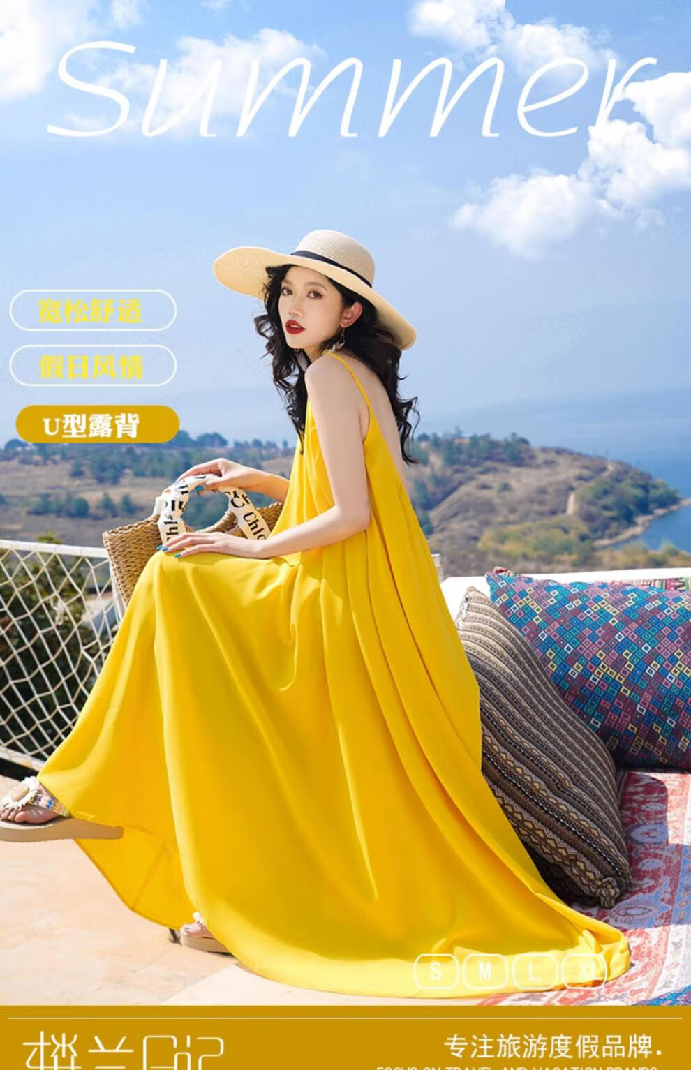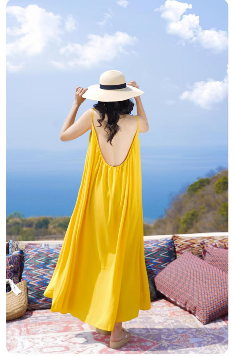 Qian Yilin trendy brand Hainan Sanya photo beach skirt sexy women's summer super fairy backless long skirt seaside vacation one size yellow small style