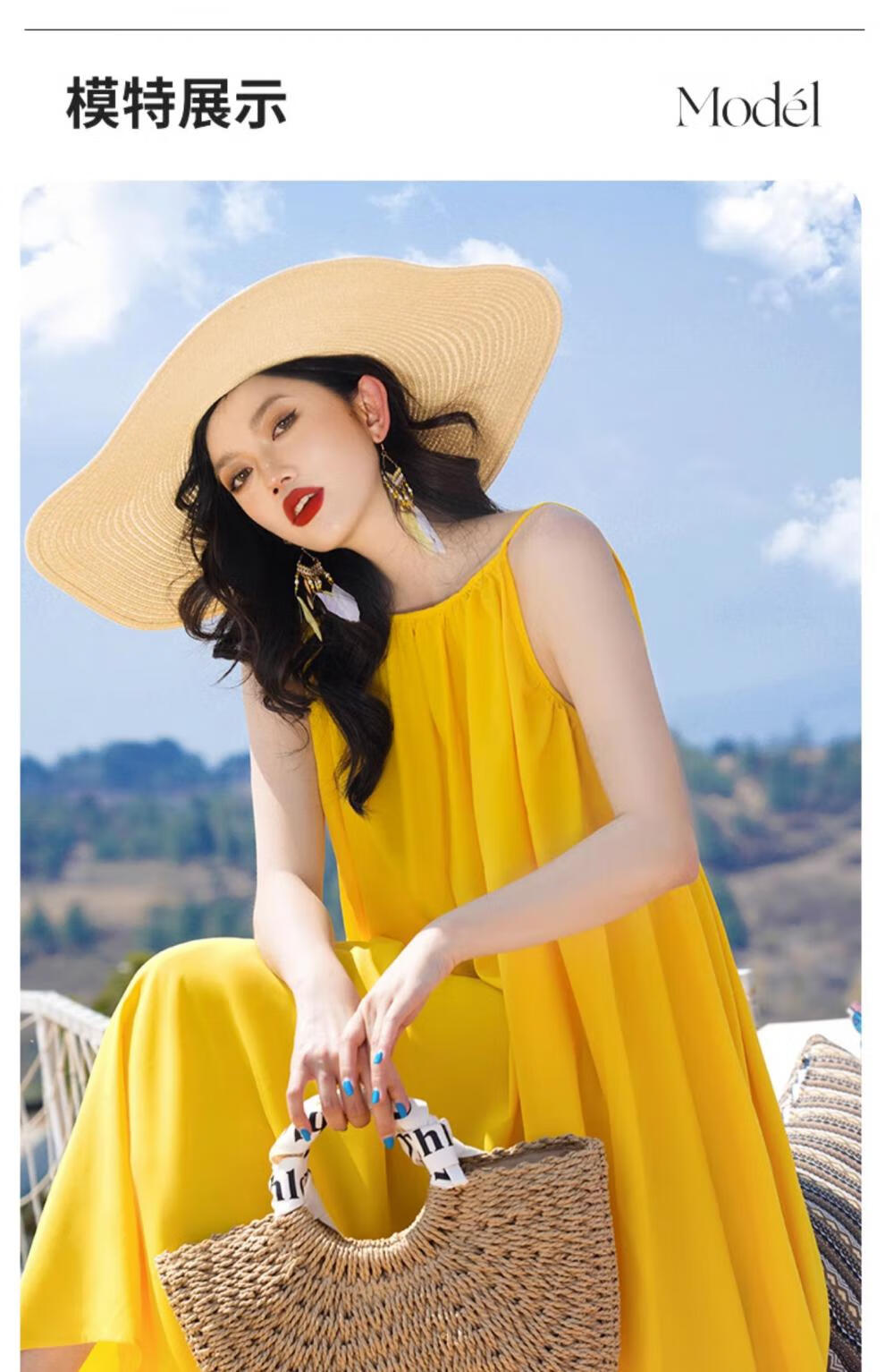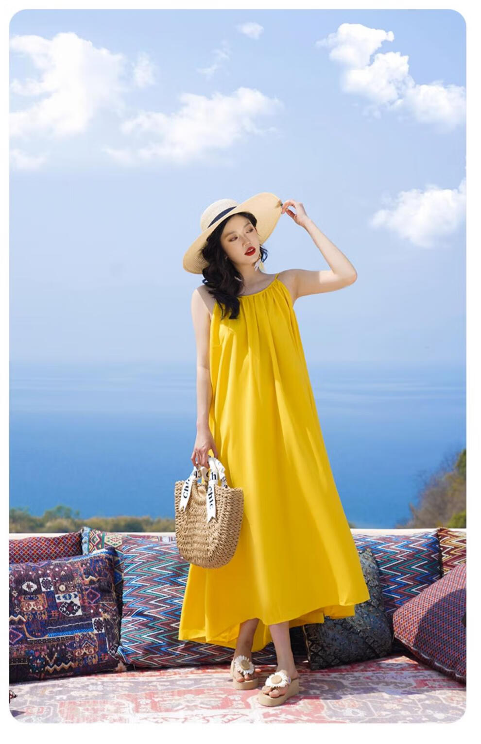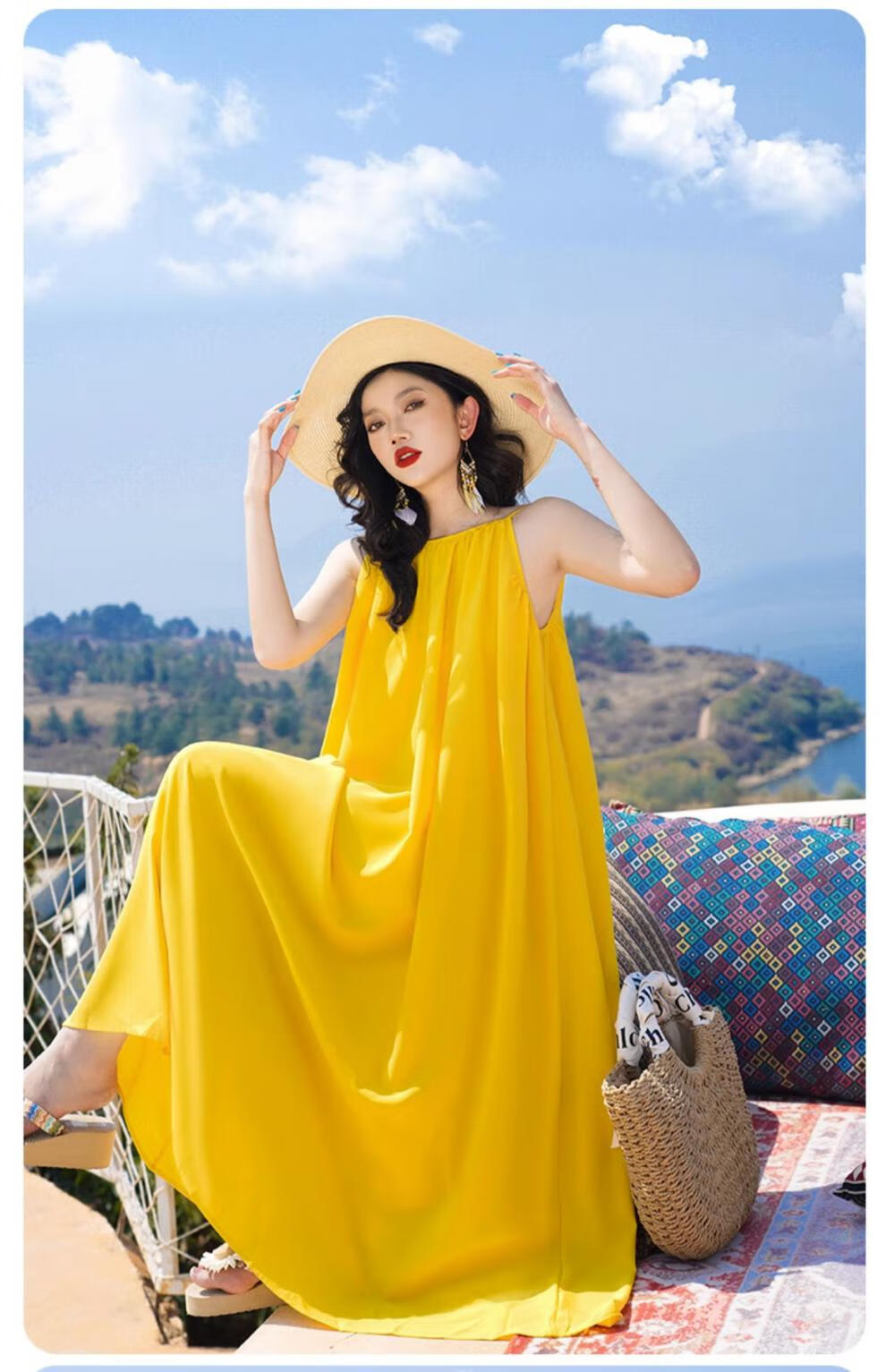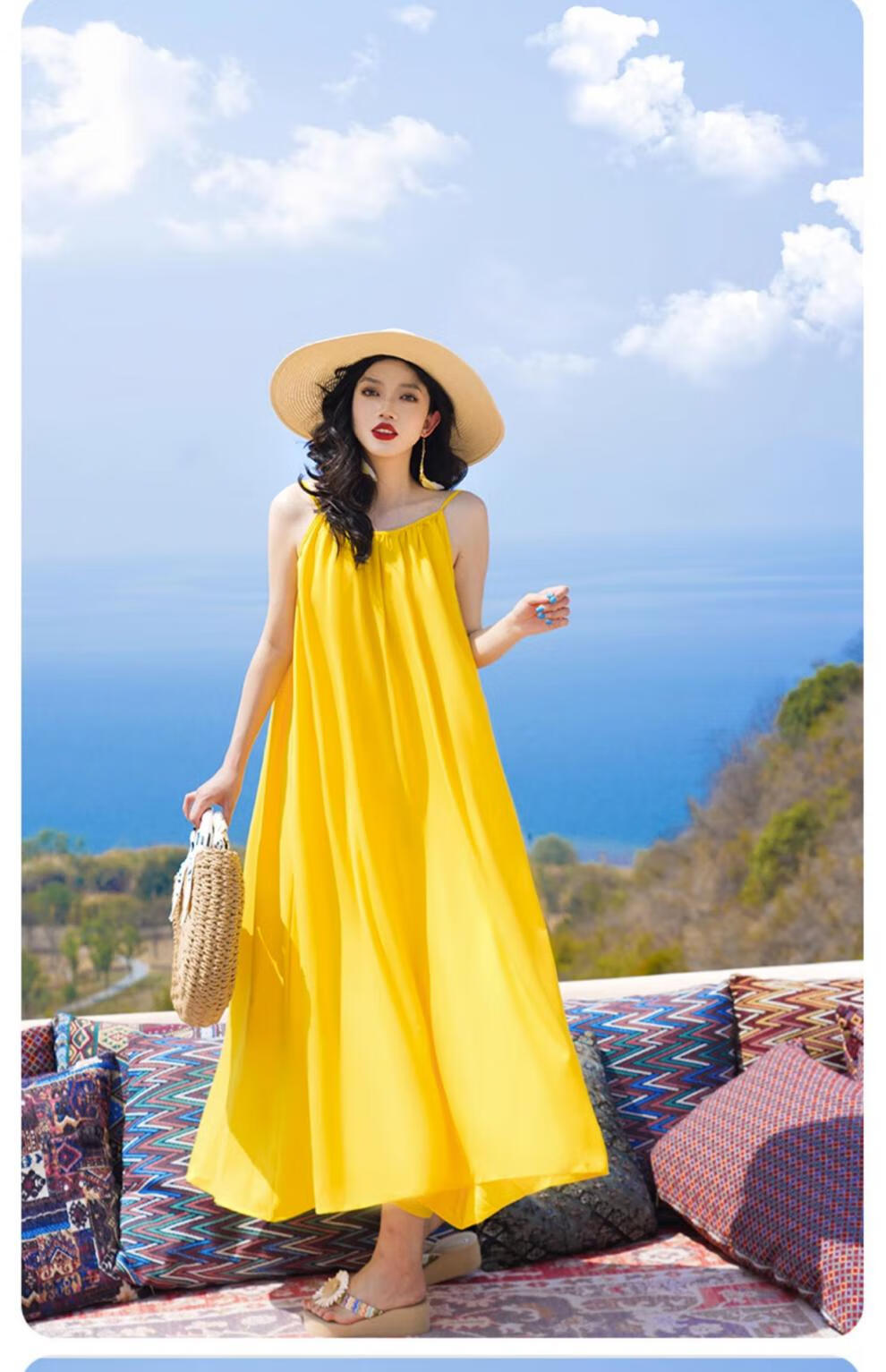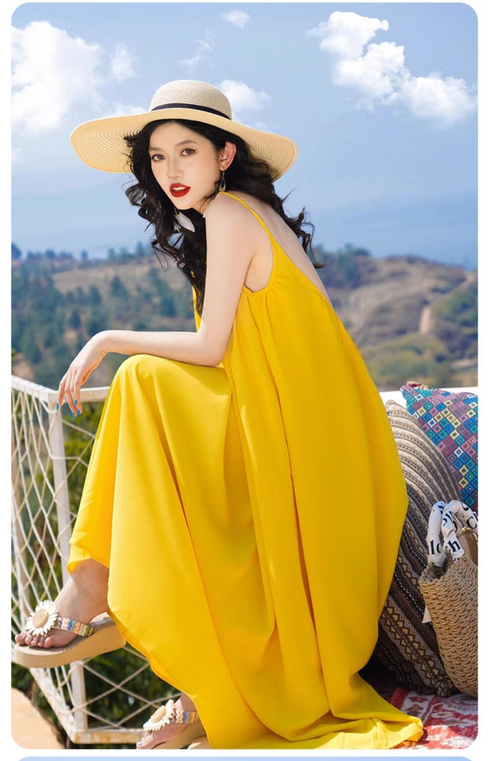 Qian Yilin trendy brand Hainan Sanya photo beach skirt sexy women's summer super fairy backless long skirt seaside vacation one size yellow small style