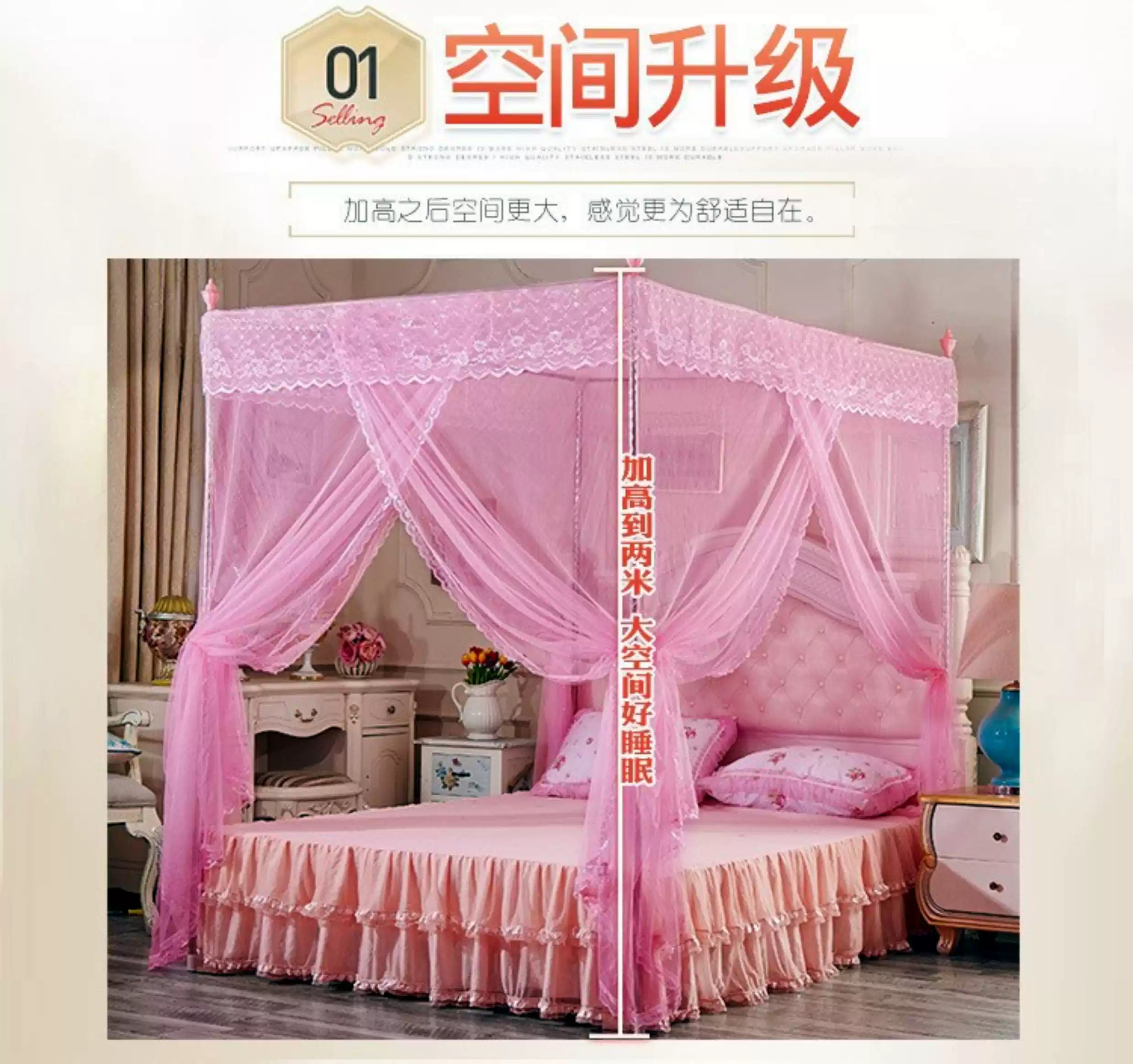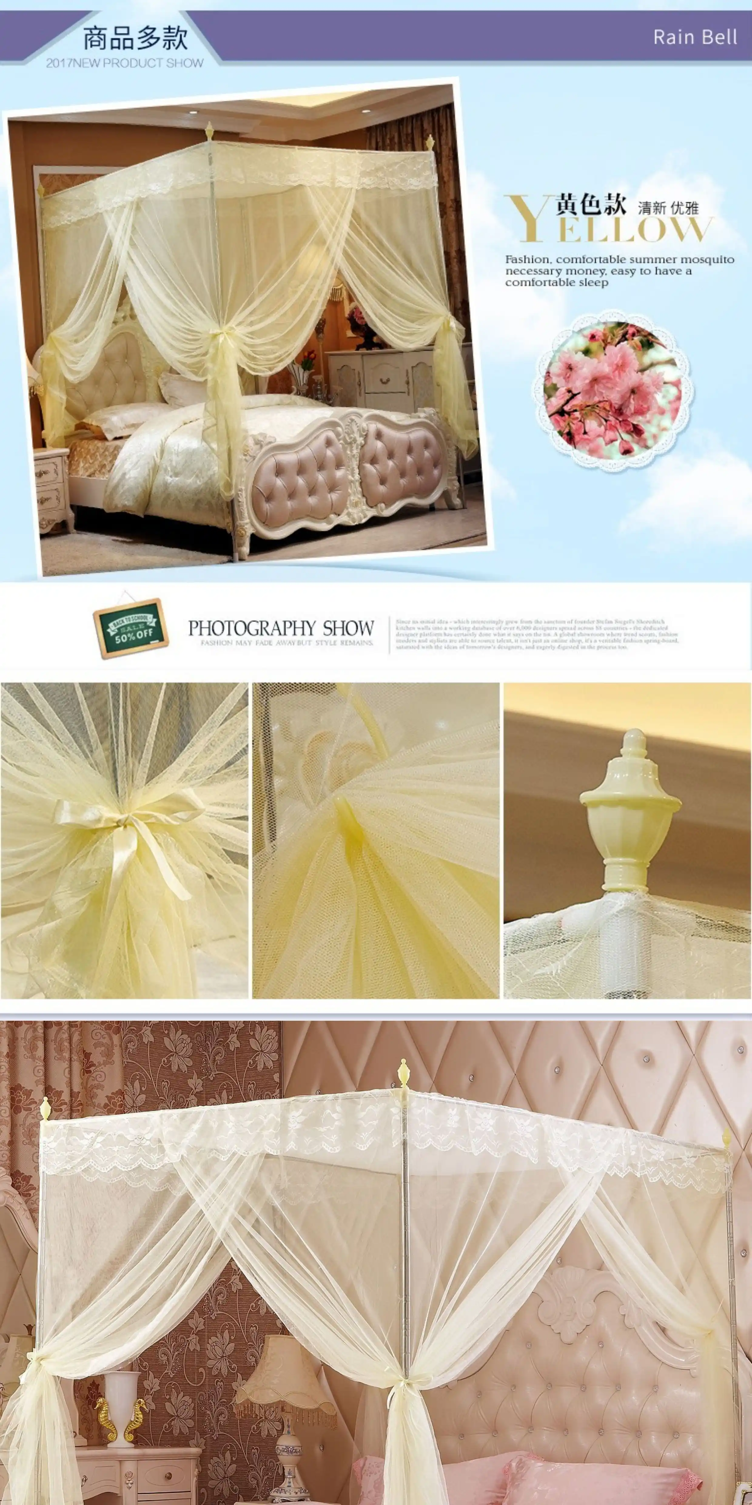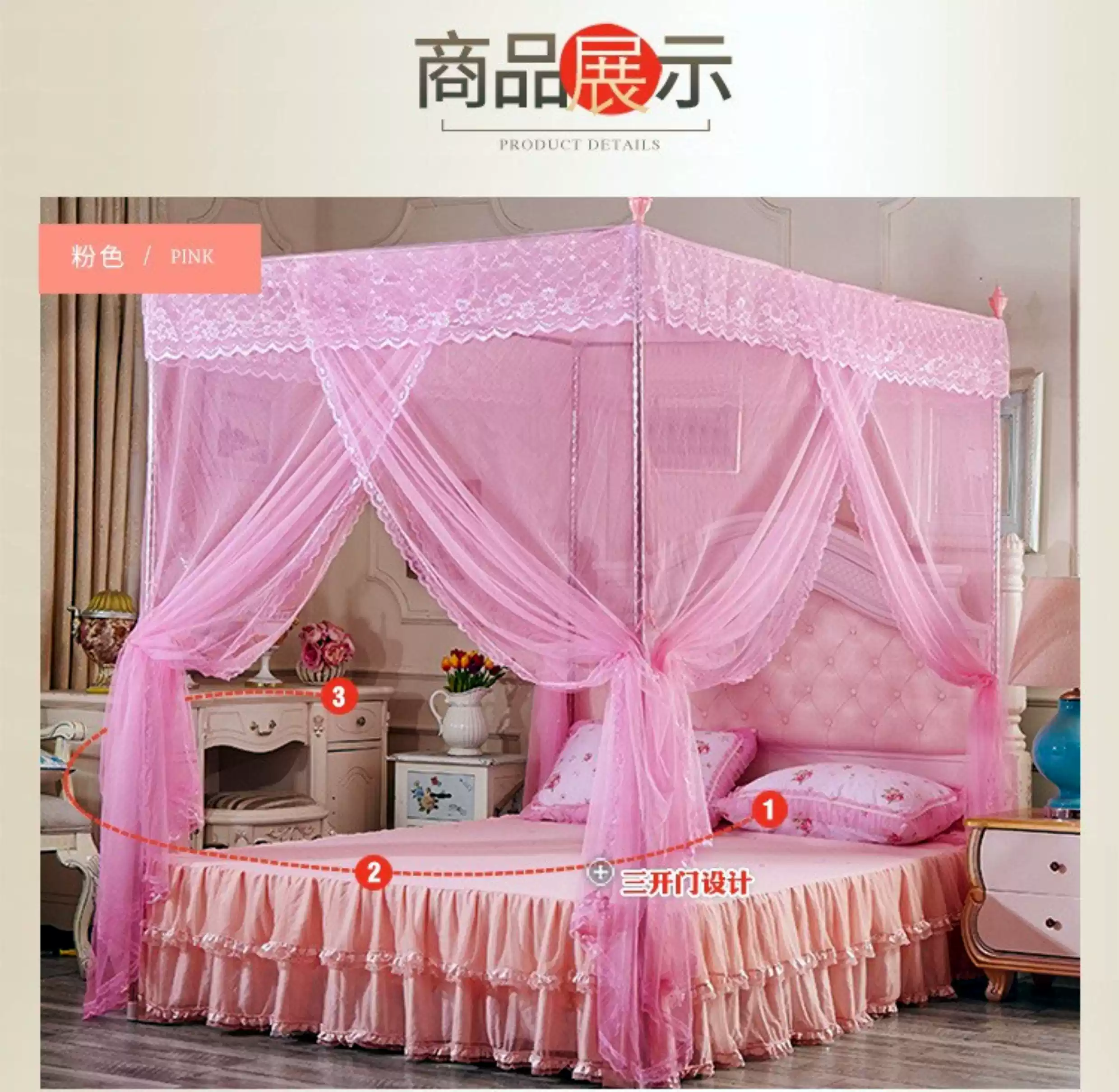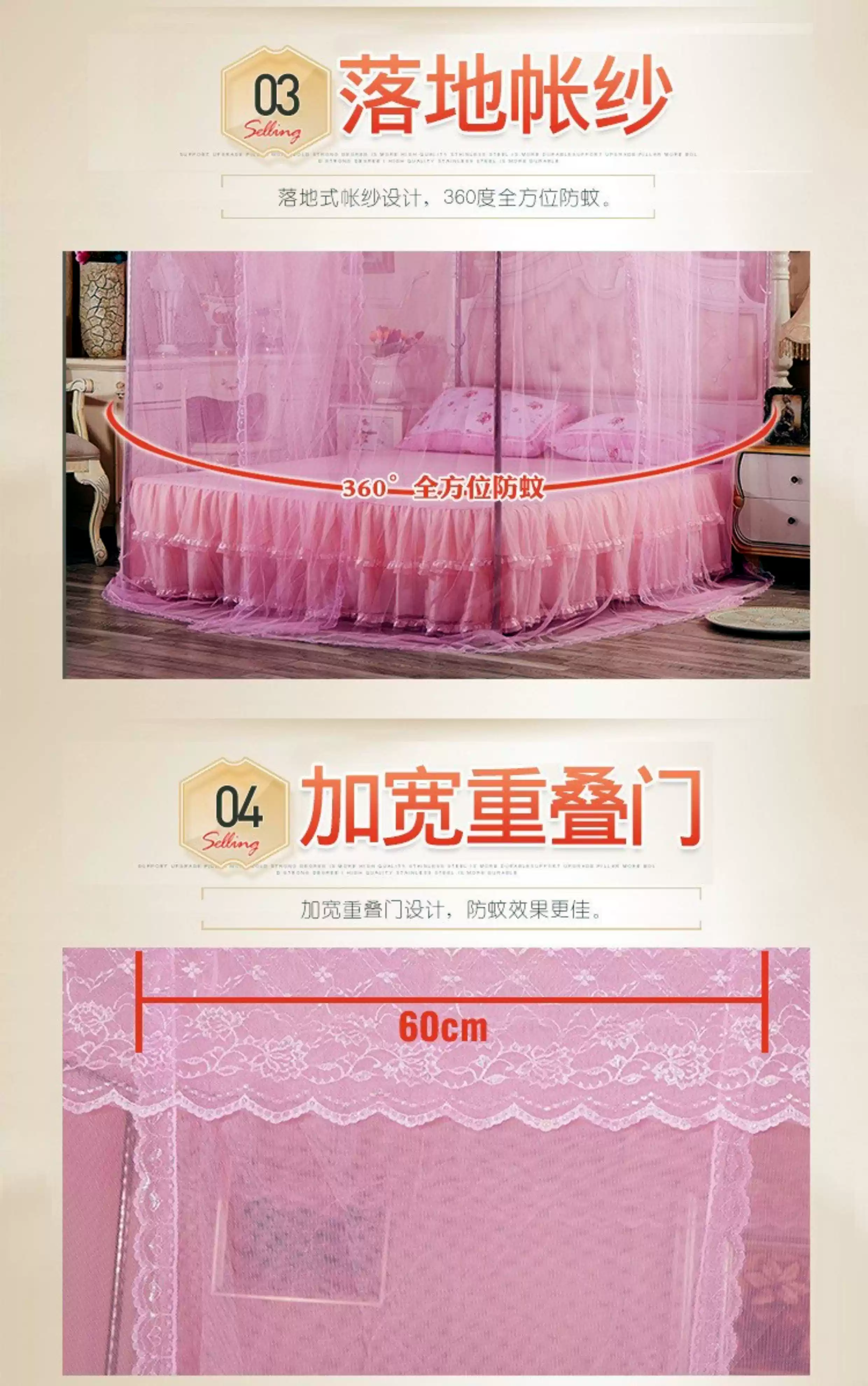 Yusenyi floor-standing household three-door mosquito net with encrypted yarn and thick bracket 1.8m double bed princess style 1.5m white three-door ultra-dense mosquito net + reinforced paint bracket 1.5m wide X 2.0m long bed
