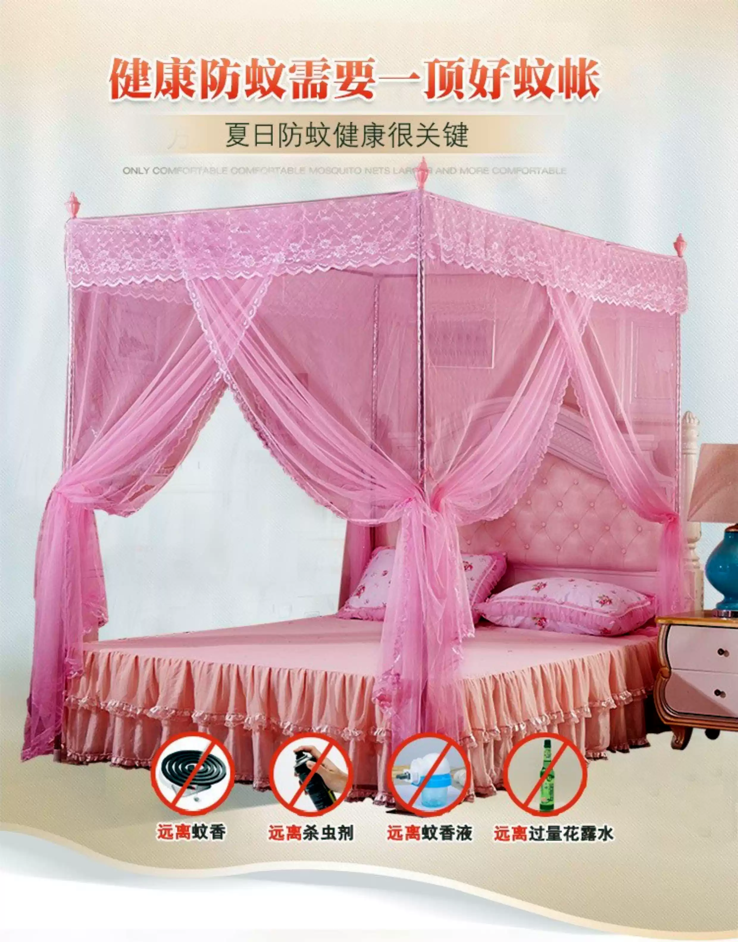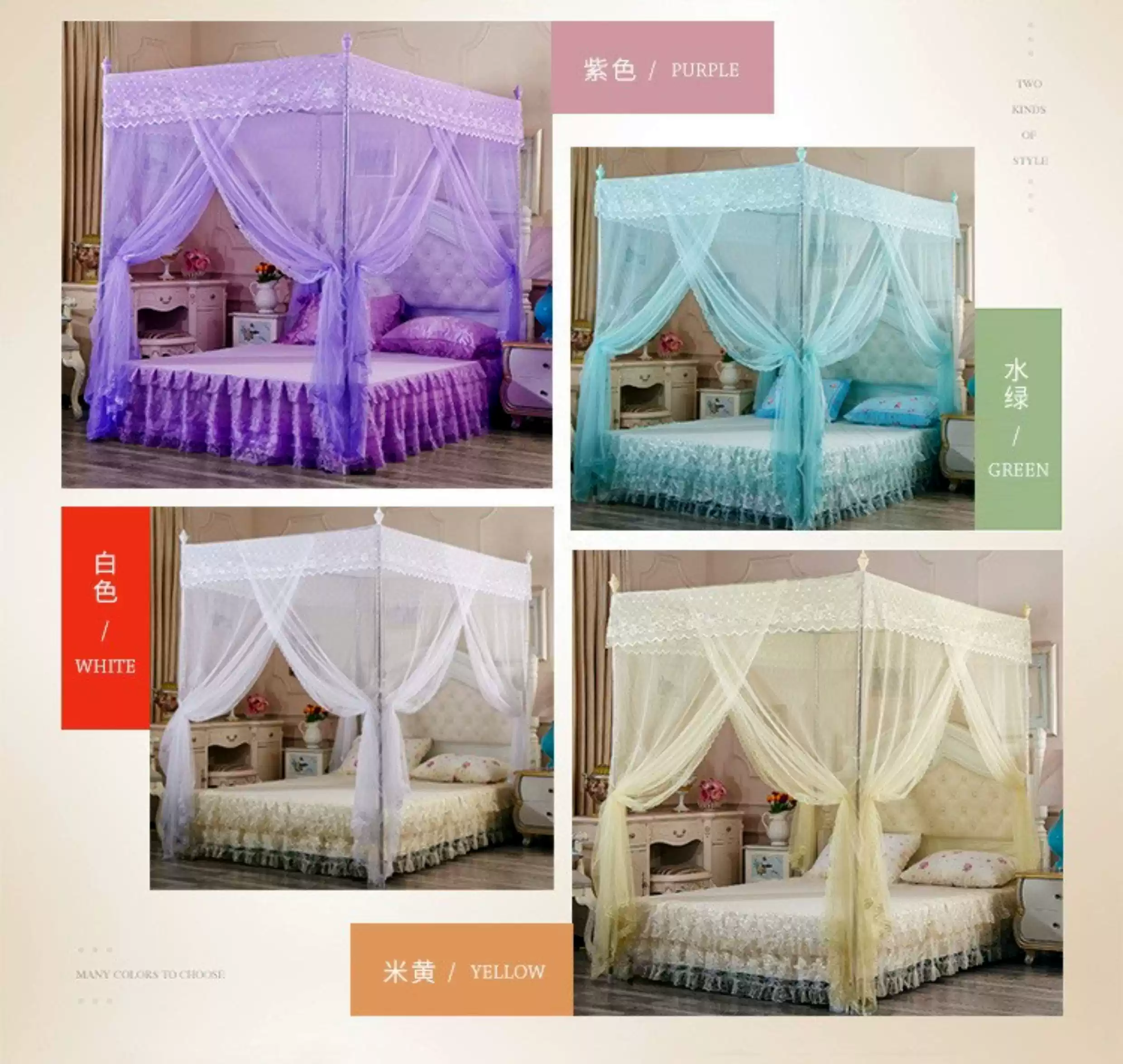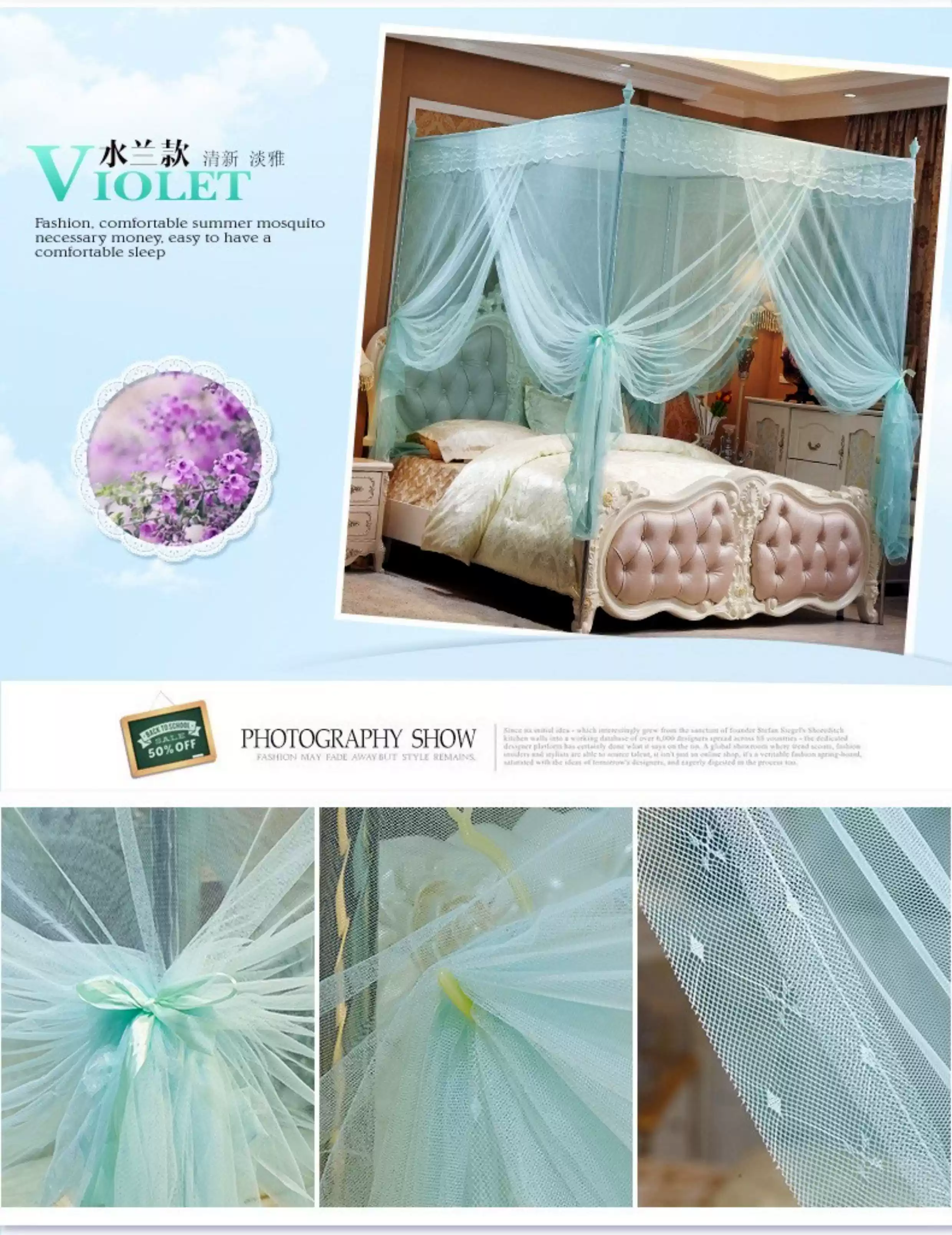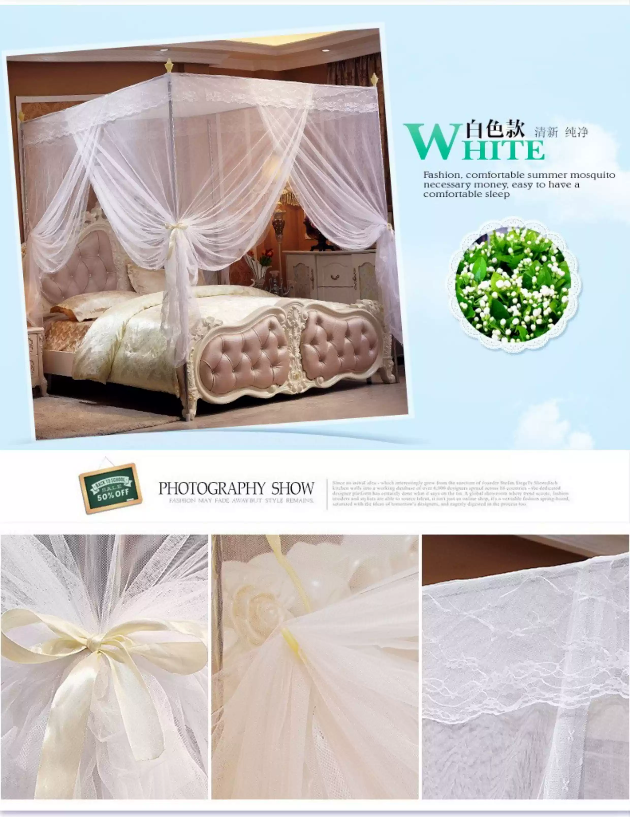 Yusenyi floor-standing household three-door mosquito net with encrypted yarn and thick bracket 1.8m double bed princess style 1.5m white three-door ultra-dense mosquito net + reinforced paint bracket 1.5m wide X 2.0m long bed