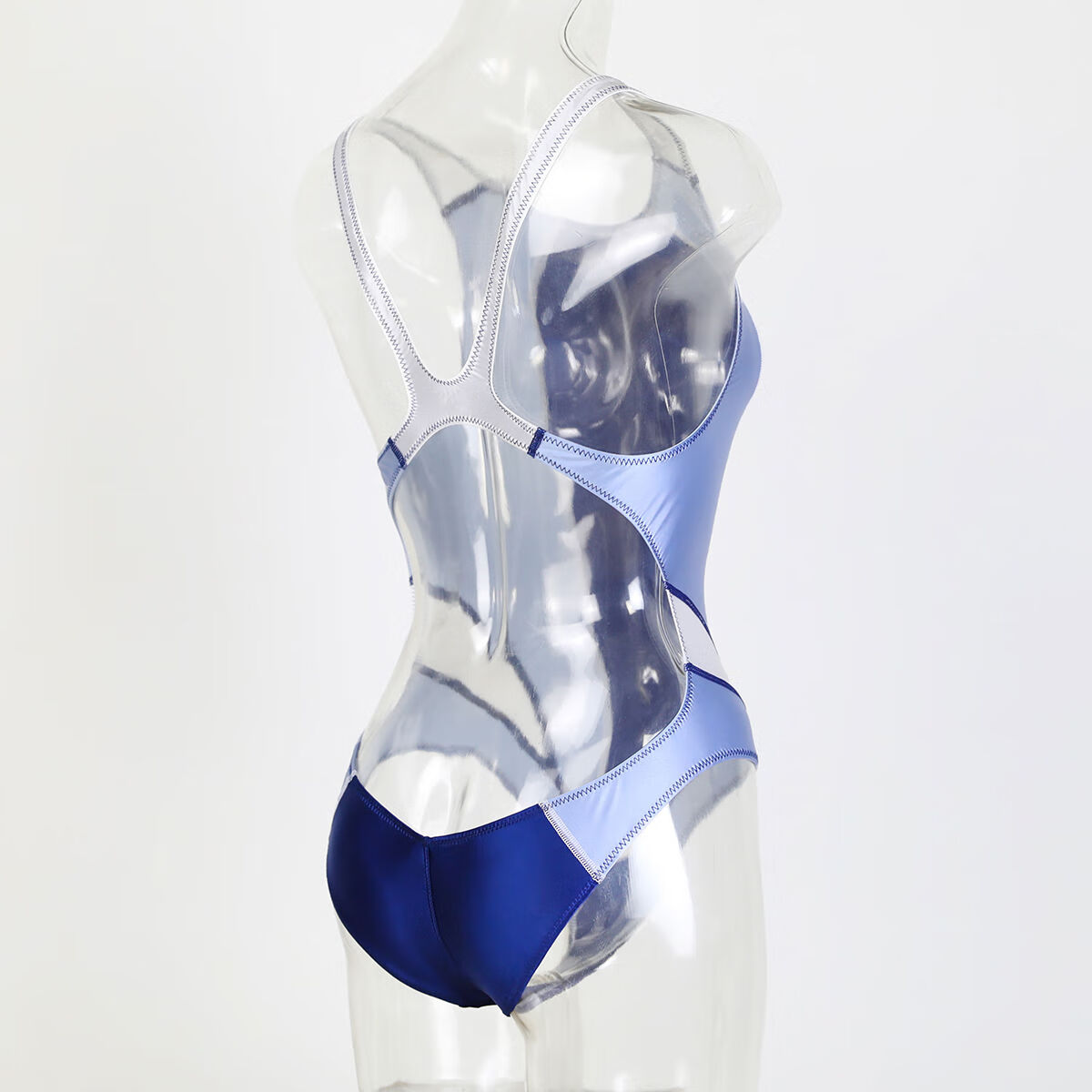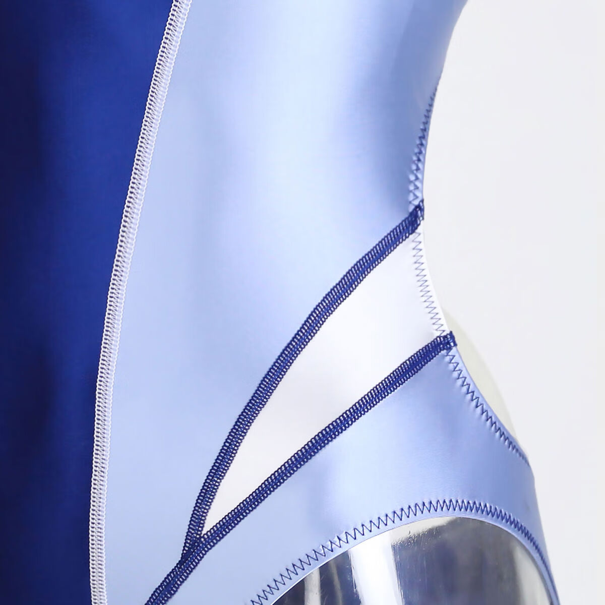 Sleeveless color-blocked glossy elastic silky backless swimsuit tight Japanese style Paluffi T jumpsuit for men and women Peacock Blue No Chest Mark M M