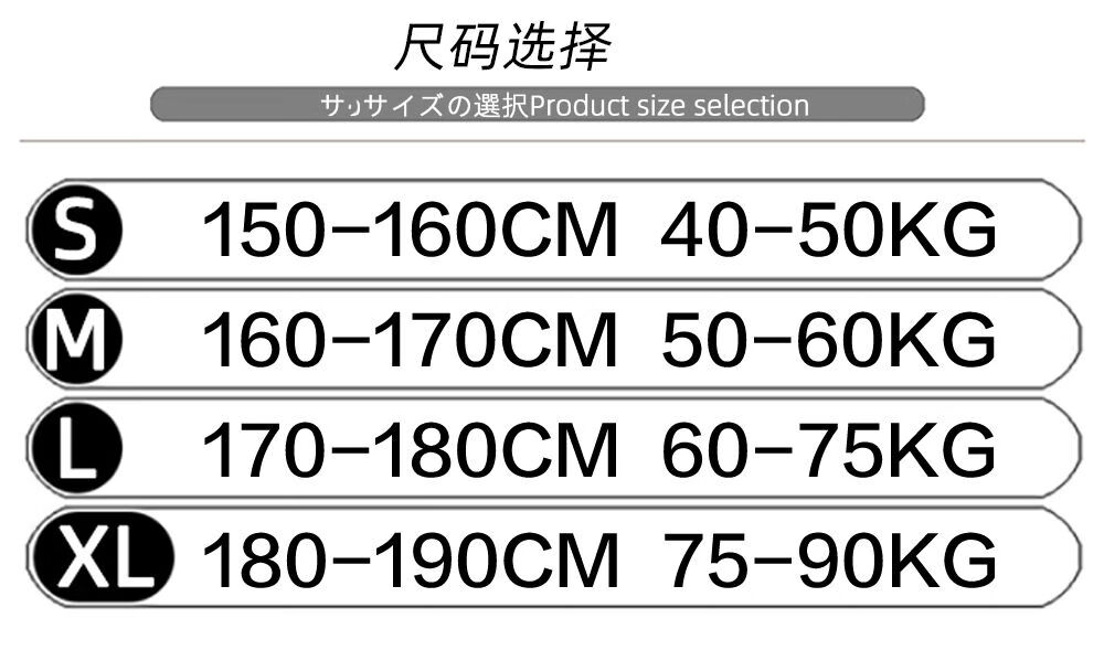 China (cm) 165 / 88-90 170 / 96-98 175 / 108-110 180 / 118-122 185 / 126-130