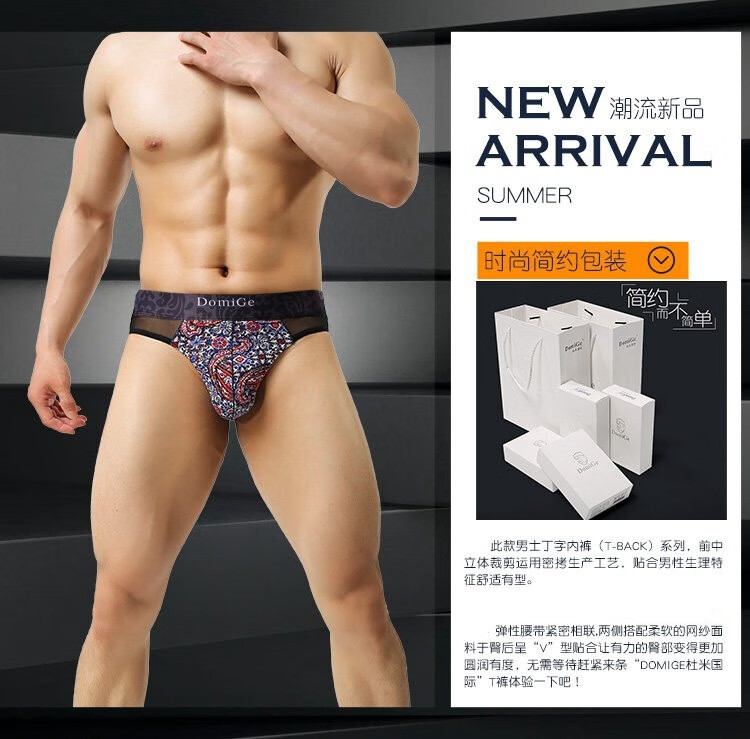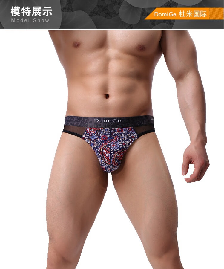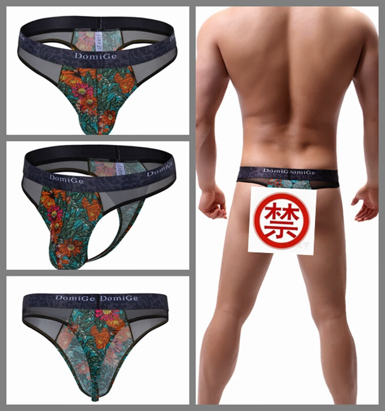 Dumi's new men's sexy low-waist floral men's underwear breathable low-waist sexy boys' thong 5406 5463 blue background printing (95 viscose 5 spandex 88 nylon 12 spandex M (suitable for around 63-74cm waist