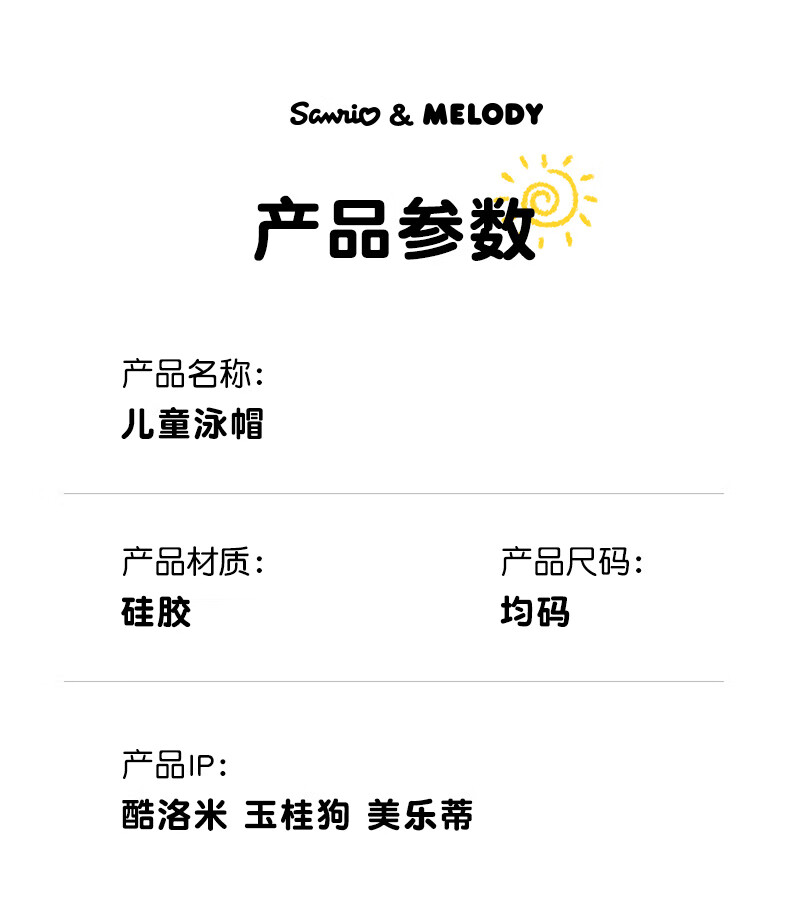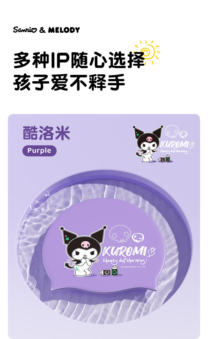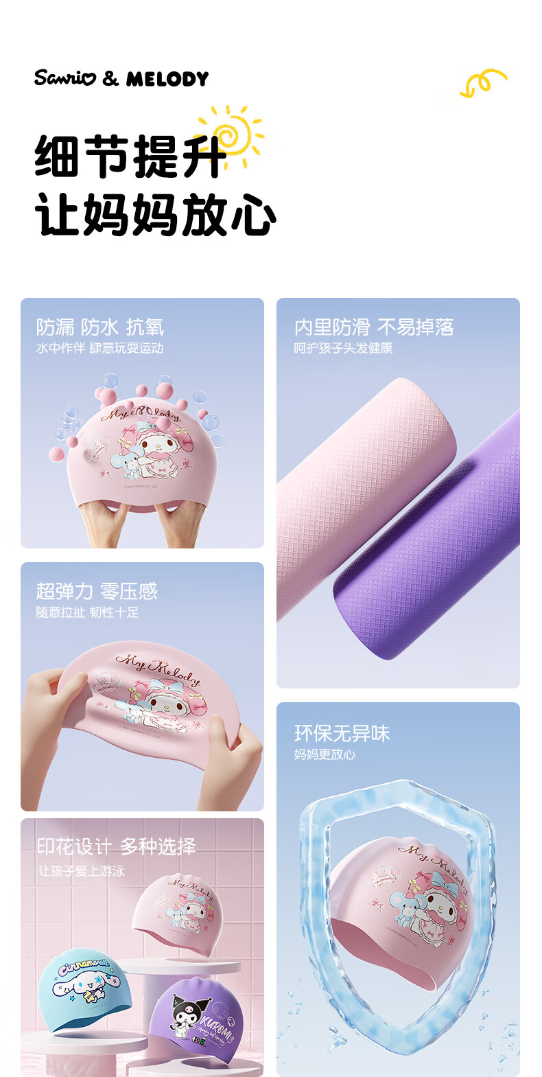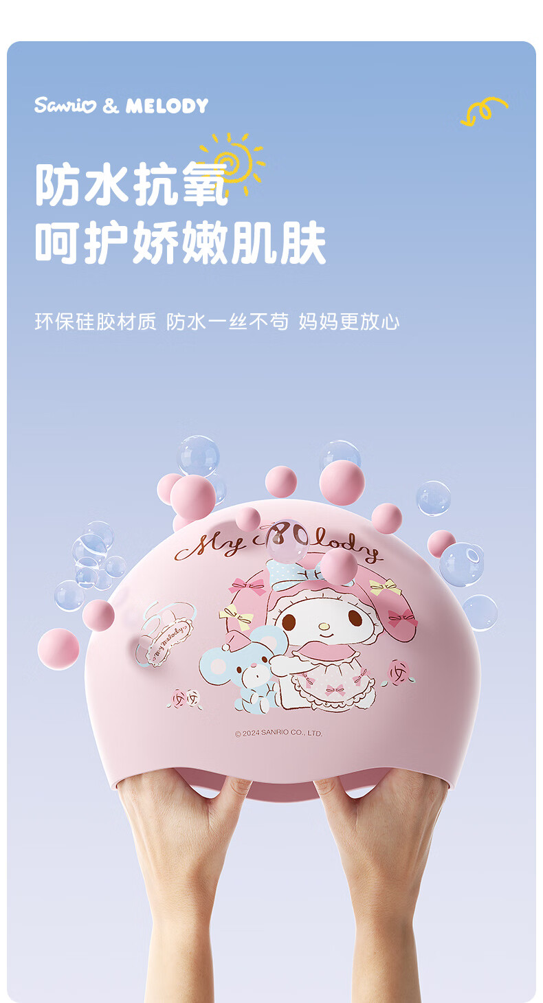 Sanrio children's swimming cap for girls, silicone ear protection for women with long hair, enlarged swimming cap, boys' swimming goggles set, Melody three-piece swimming goggles + nose clip + earplugs
