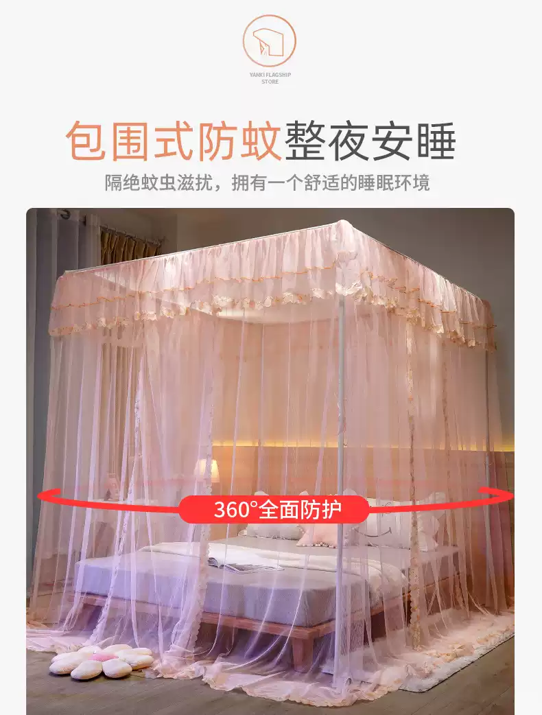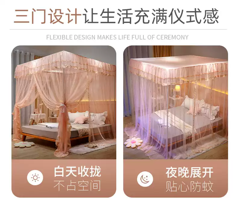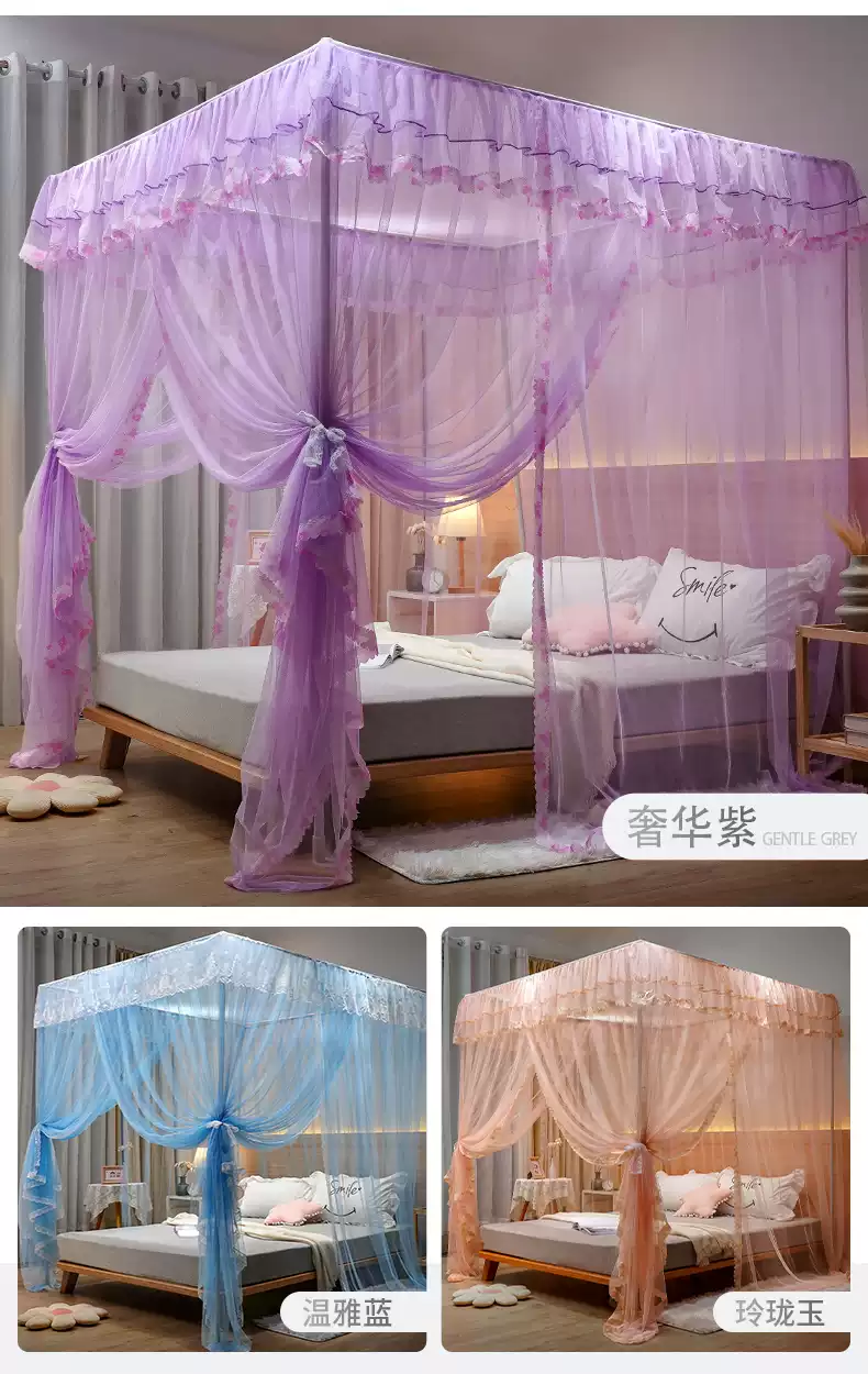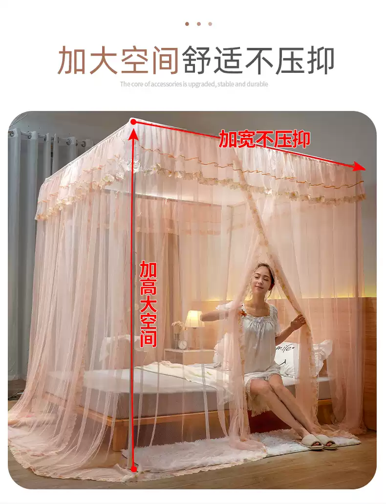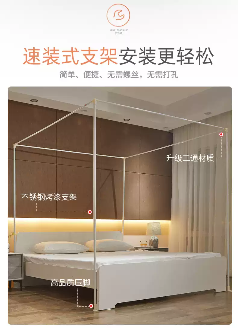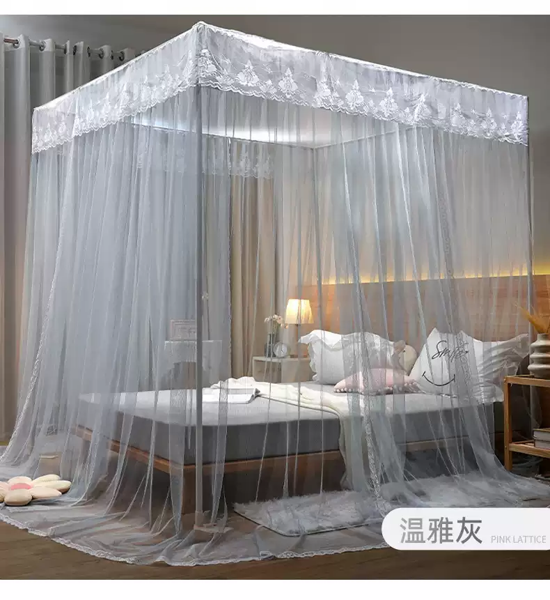 Yusenyi Mosquito Net Home 2025 New Bedroom Installation-free 1.8 by 2.1.5 by 2.8 Meters Large Bed Pattern Brand Elegant Gray + Bold Bracket 1.22 Meters Bed