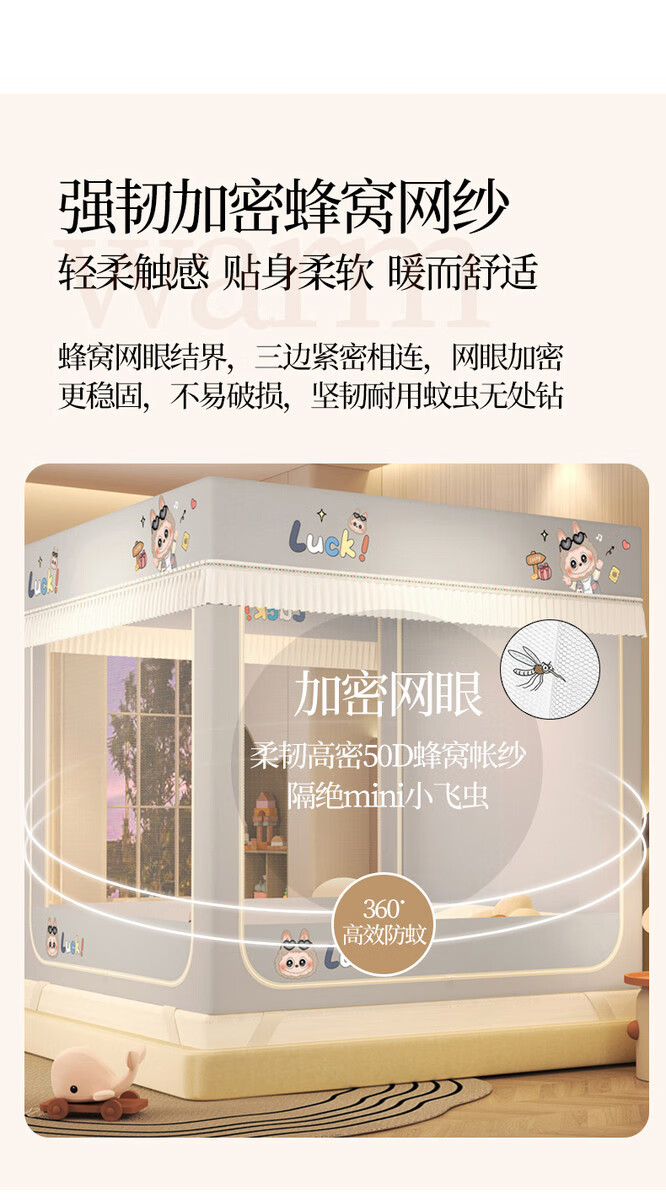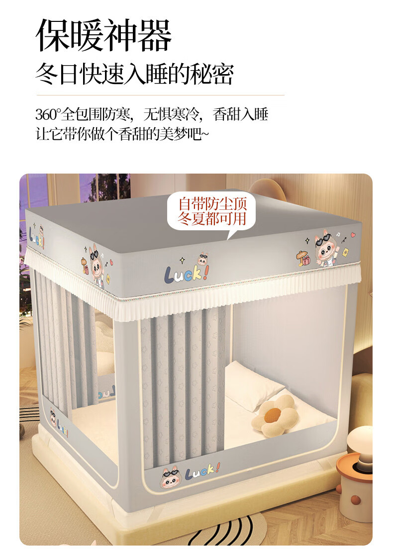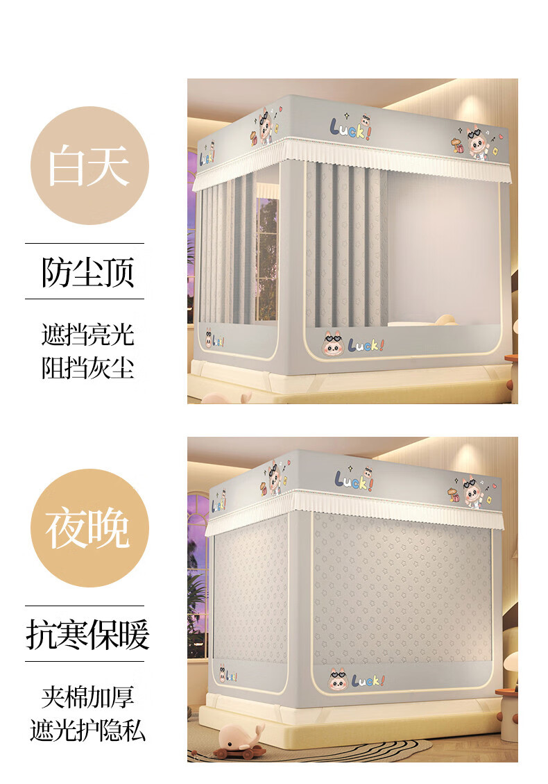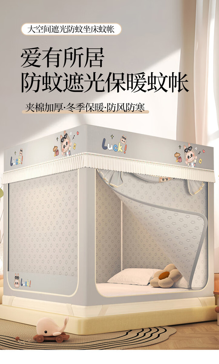 Wing Fantasy 2025 Mosquito Net Blackout Bed Curtain Integrated Winter Warm Bed Tent Home Bedroom Interior Protection Koi Encrypted Net Yarn Strong Blackout Four Seasons Curtain Blackout Style 150x200cm Bed Mosquito Net + Lazy