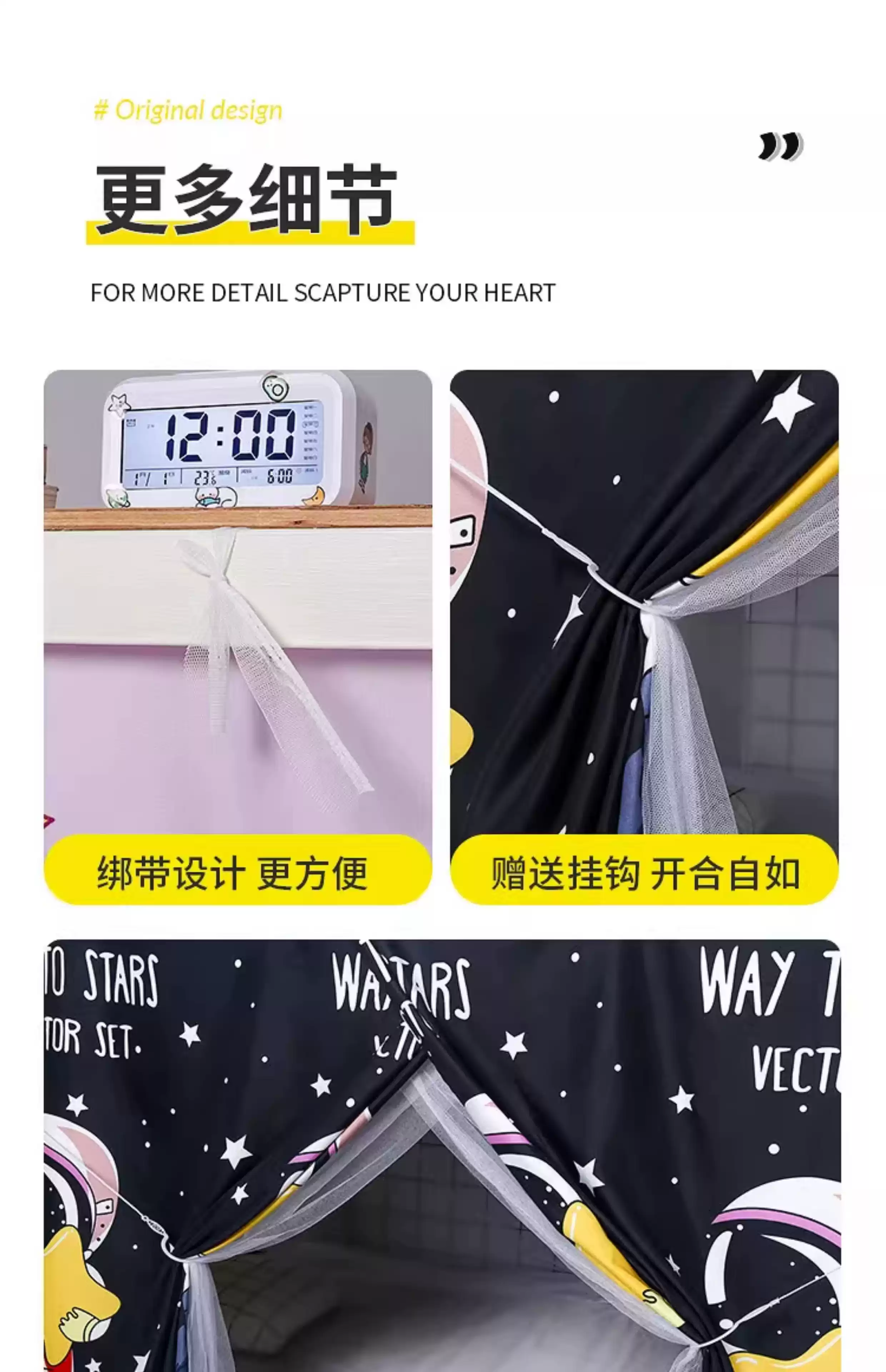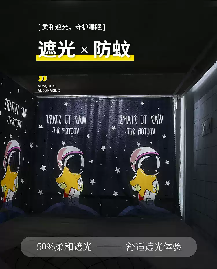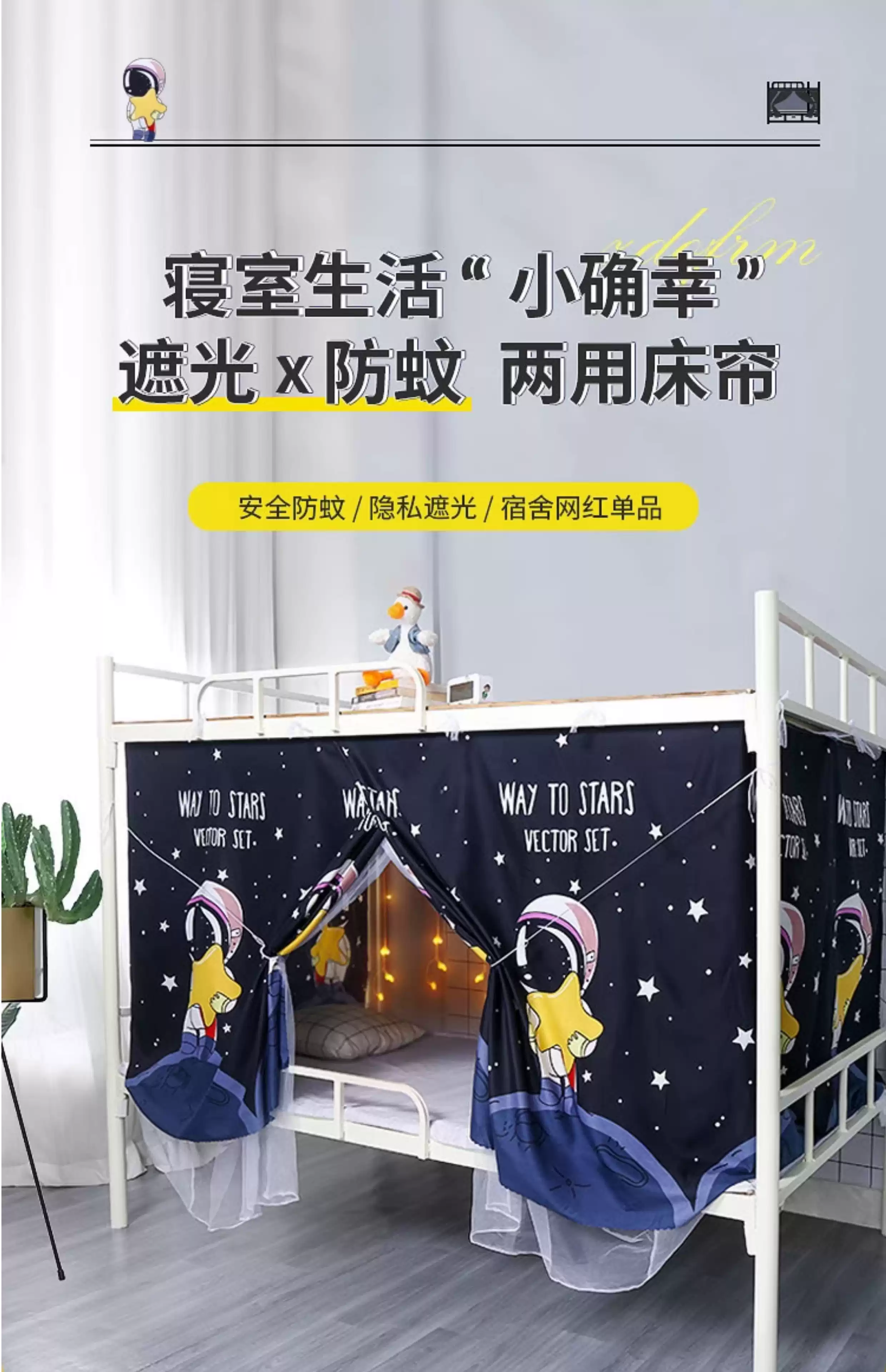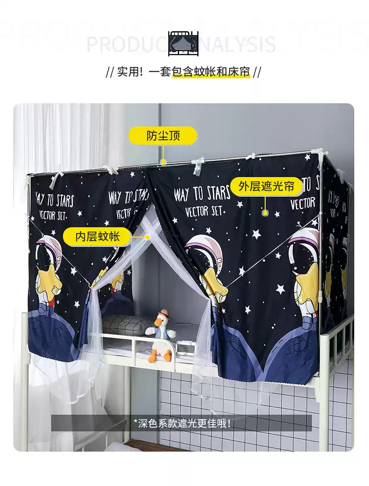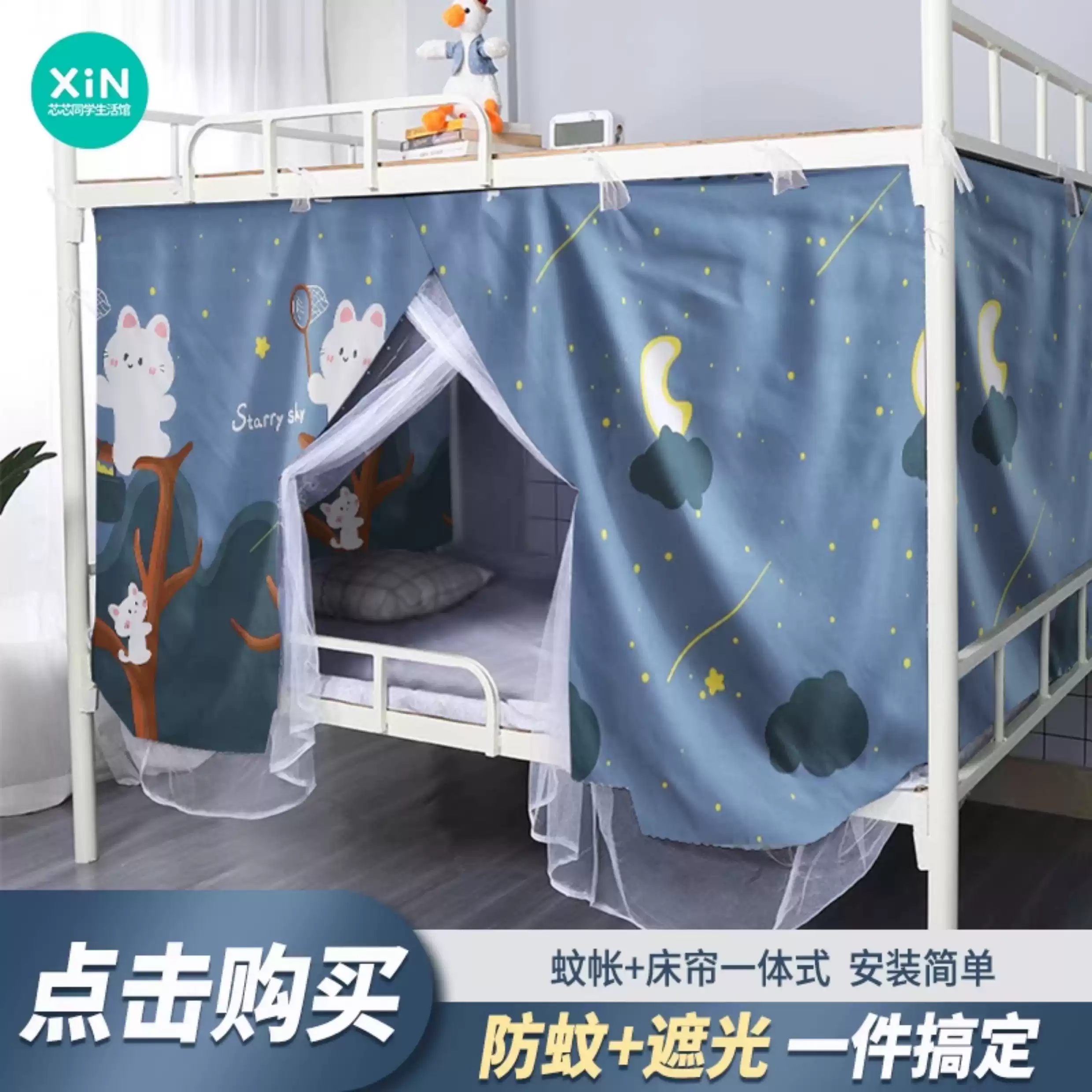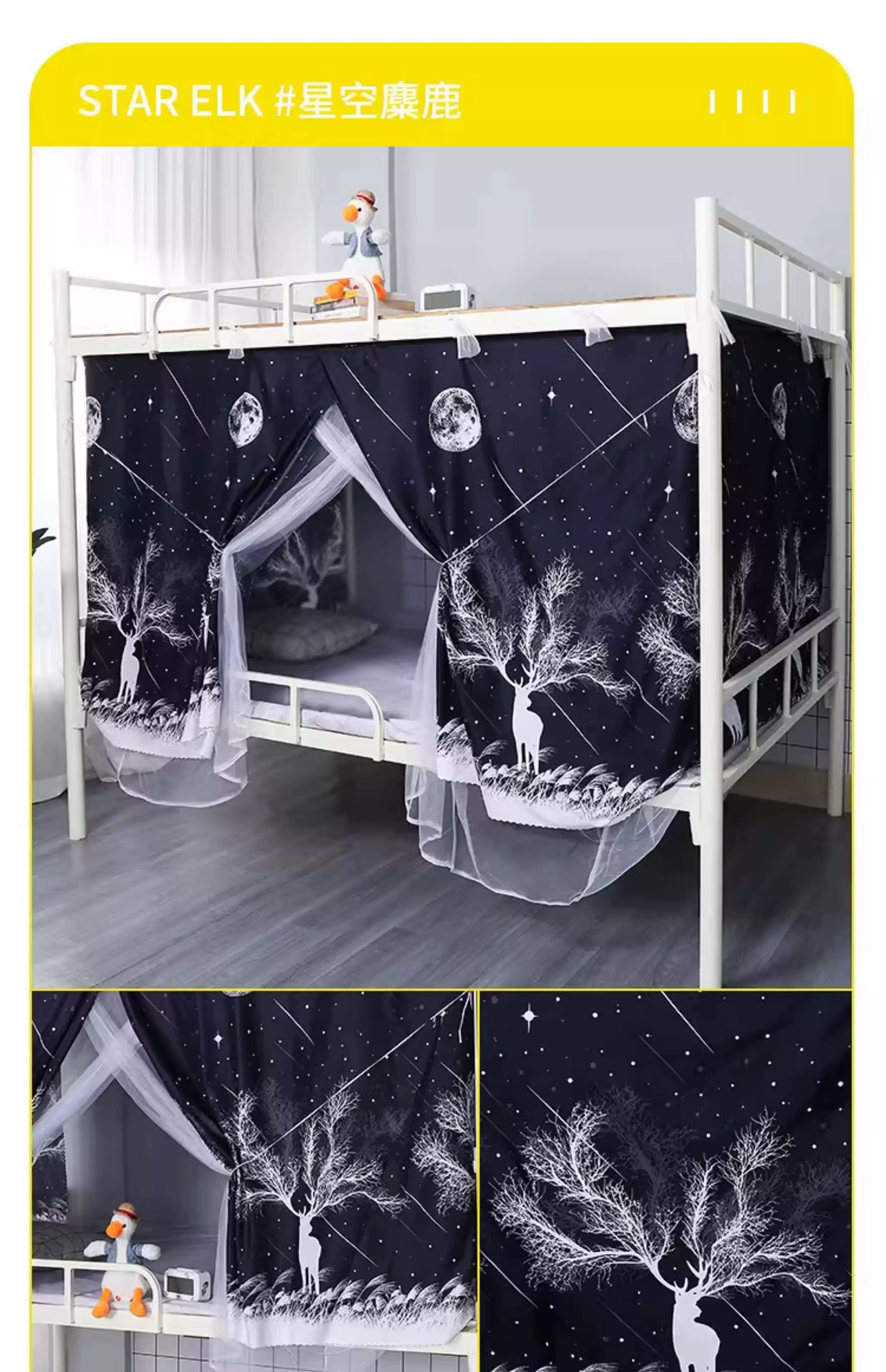 Yusenyi Student Dormitory Mosquito Net Bed Curtain Integrated Blackout Fully Surrounded Upper Bunk and Lower Bunk Universal Bed Surround Dormitory Single Bed Cover Starry Sky Elk* Fabric Top Three Sides and Top Blackout + Mosquito Net Suitable for 1.2m wide bed 120 wide * 190 long * 115 high