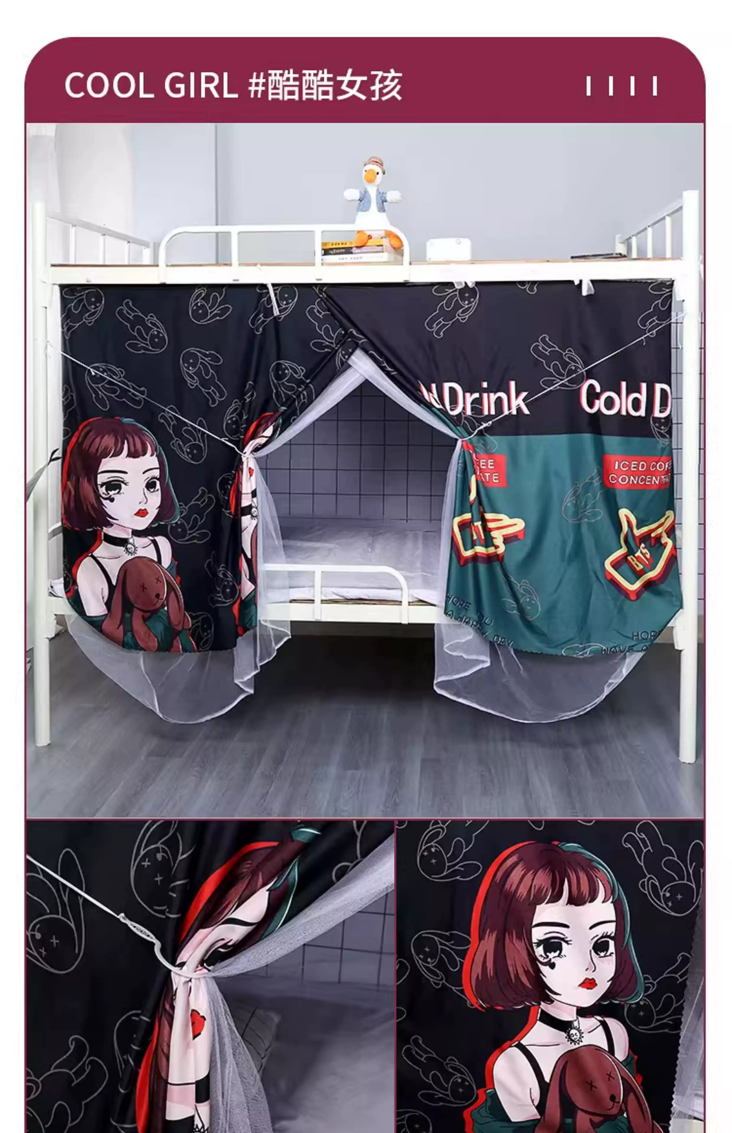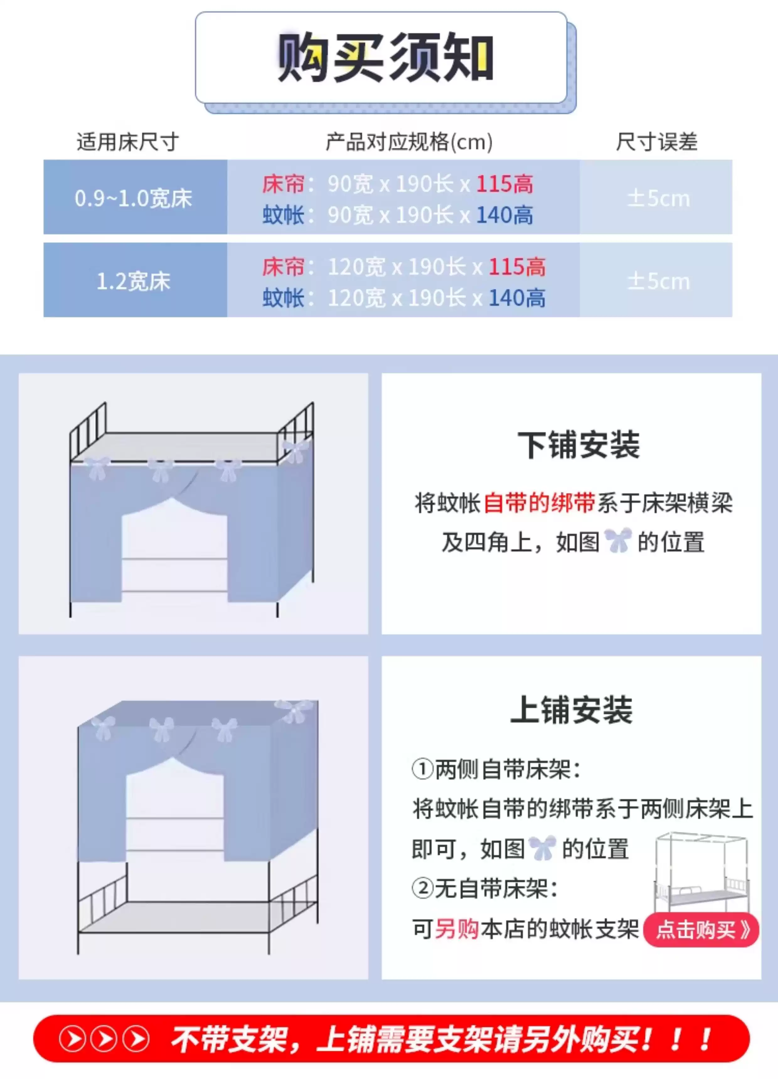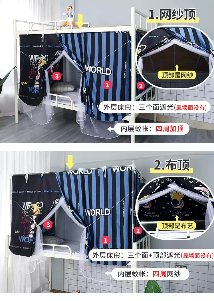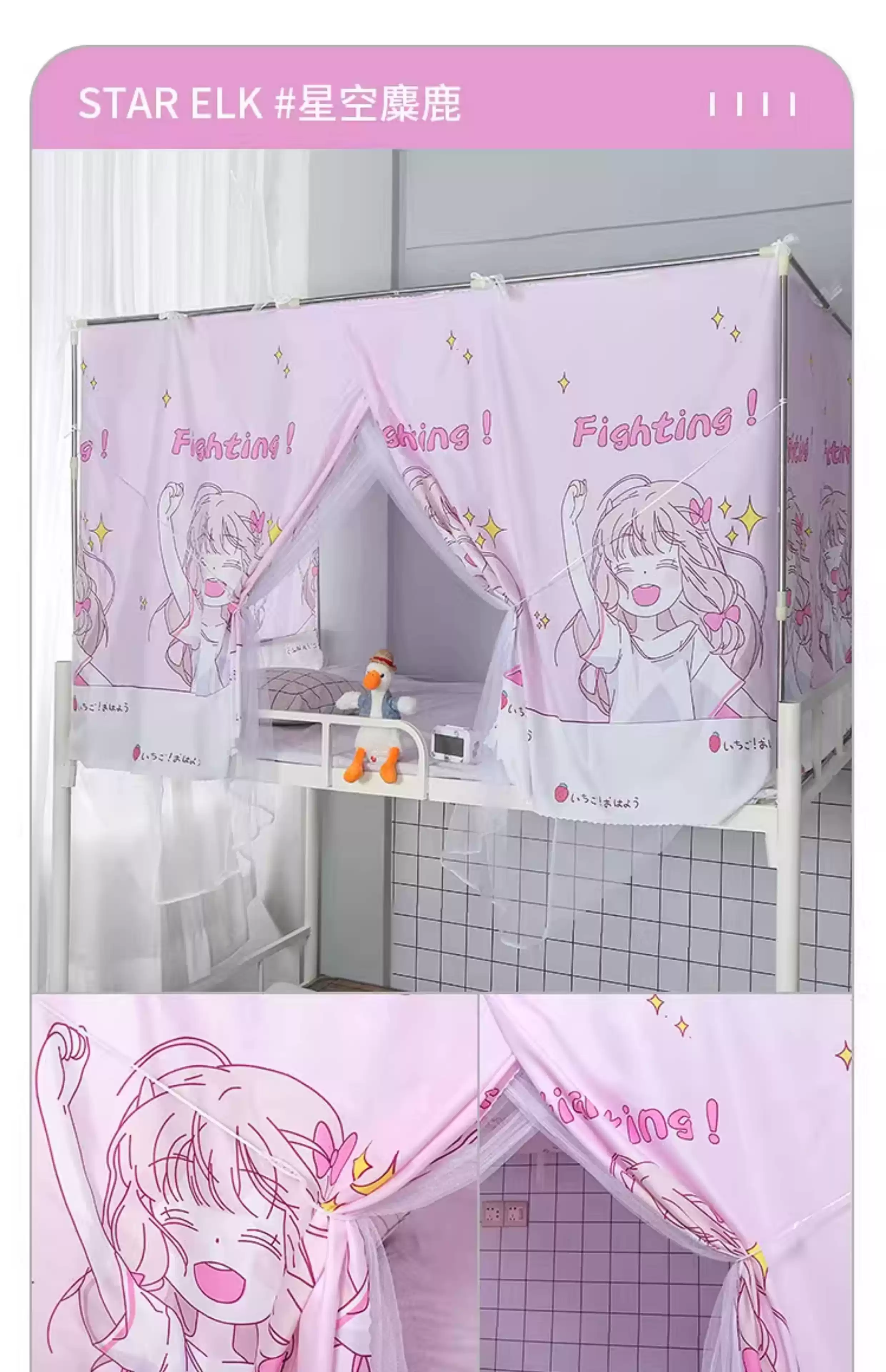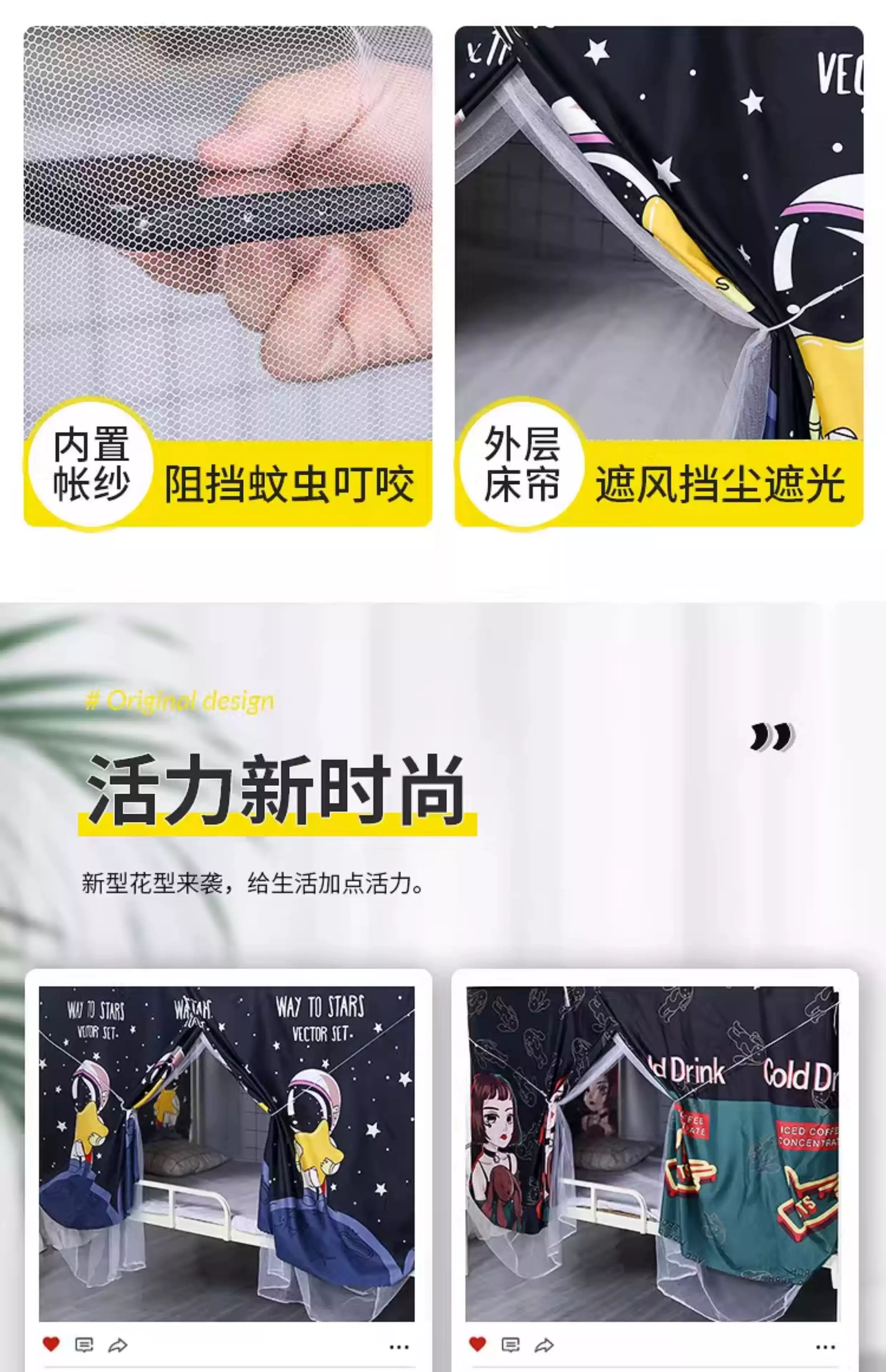 Yusenyi Student Dormitory Mosquito Net Bed Curtain Integrated Blackout Fully Surrounded Upper Bunk and Lower Bunk Universal Bed Surround Dormitory Single Bed Cover Starry Sky Elk* Fabric Top Three Sides and Top Blackout + Mosquito Net Suitable for 1.2m wide bed 120 wide * 190 long * 115 high