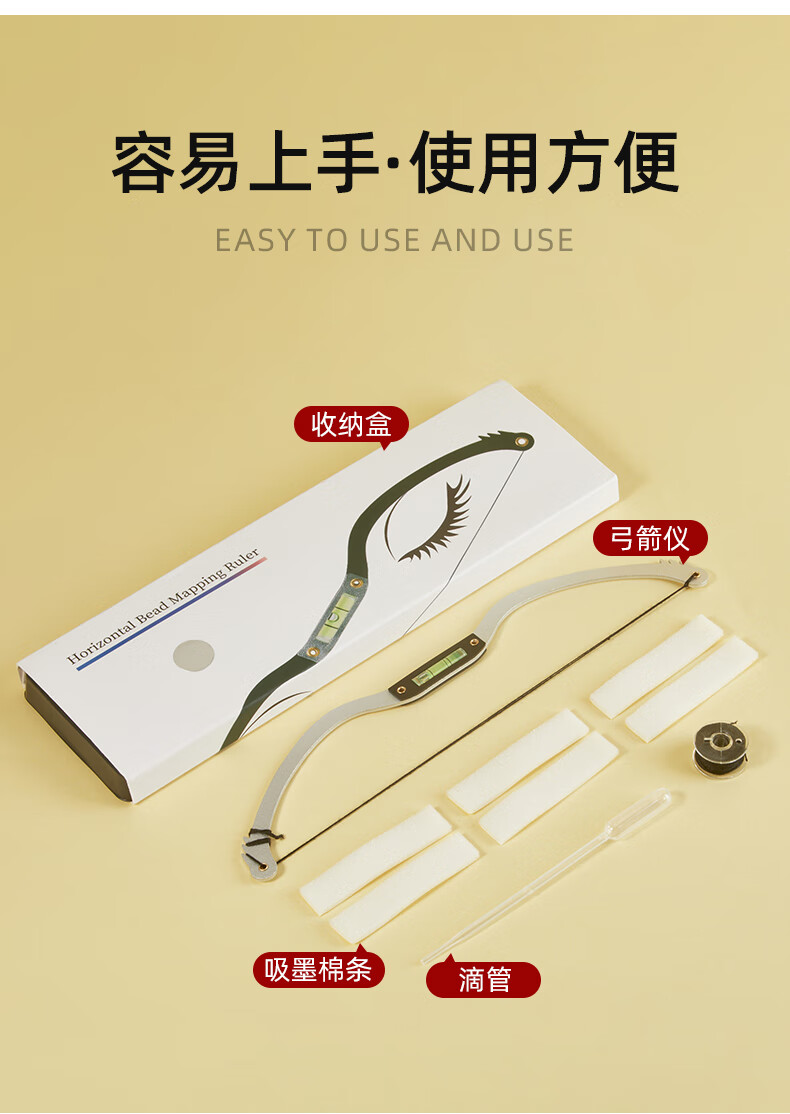 He Jian's bow pattern embroidery bow and arrow horizontal ruler eyebrow shape design artifact half tattoo eyebrow thrush measurement balanced eyebrow card symmetrical eyebrow ruler silver