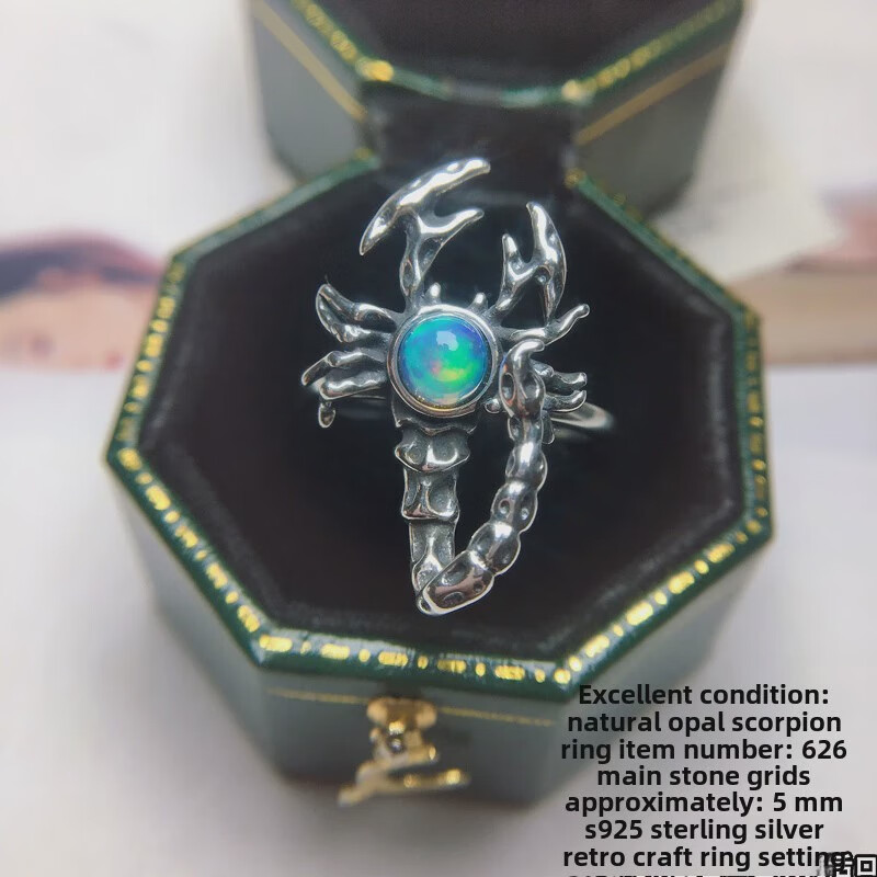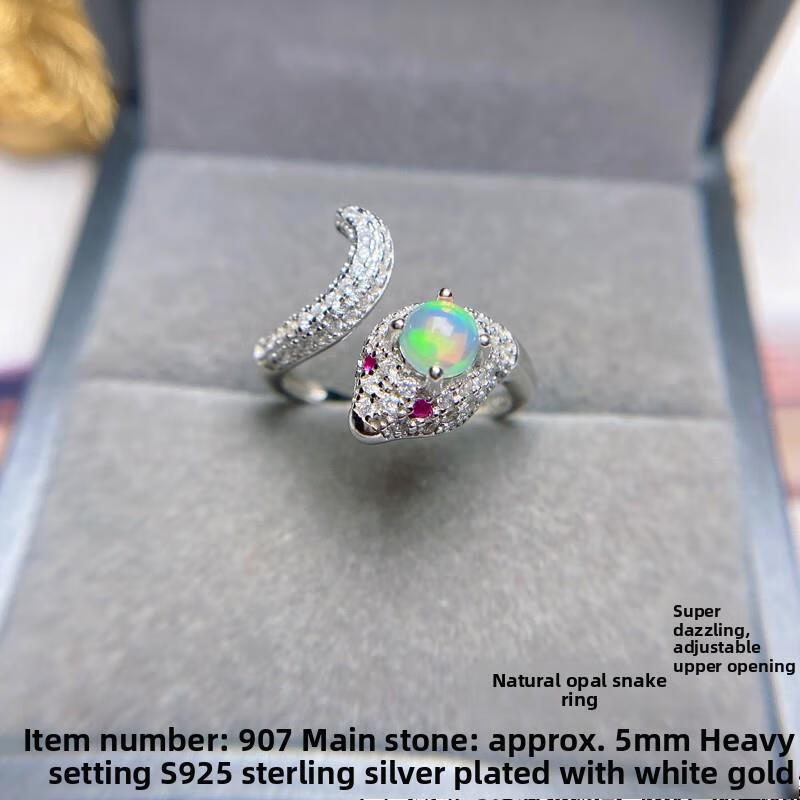 Natural opal tanzanite grape rhodium ring sterling silver inlaid with scorpion elephant spider animal natural opal snake ring No. 907