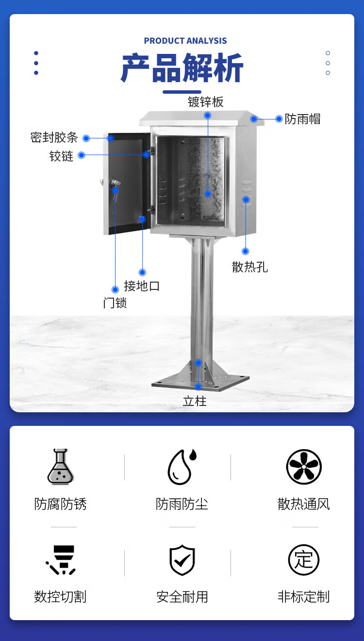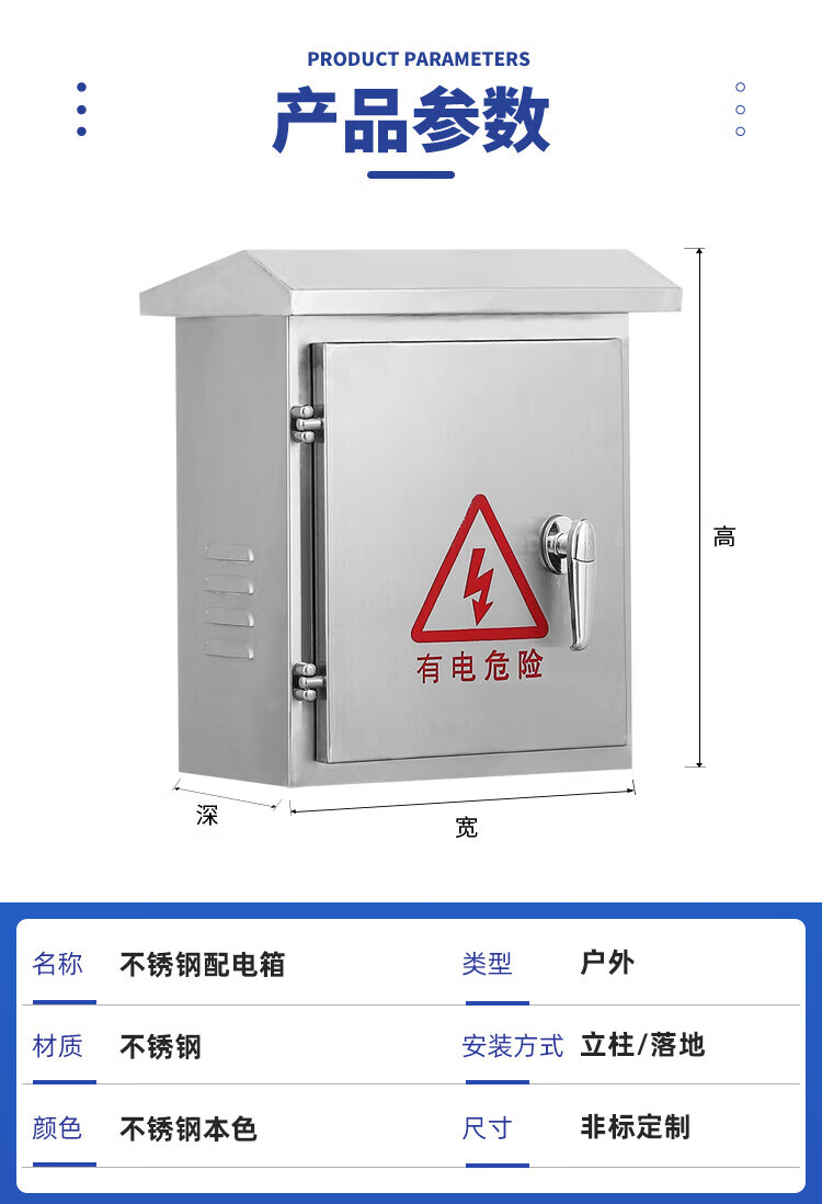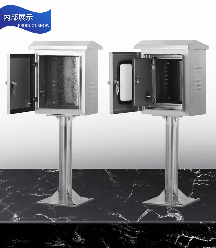 Outdoor 304 stainless steel column box double-door instrument monitoring distribution box floor-standing rainproof charging box custom-made single door 300*250*150 column height 300
