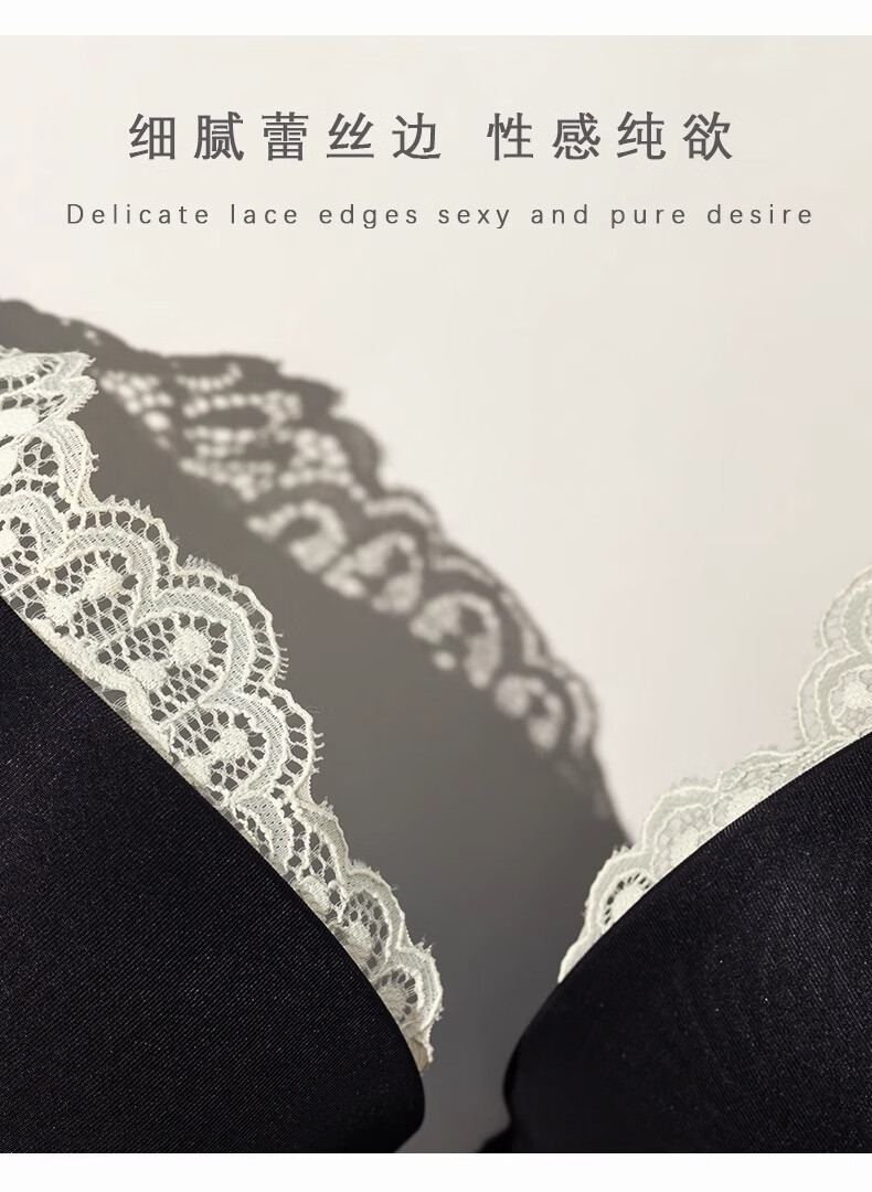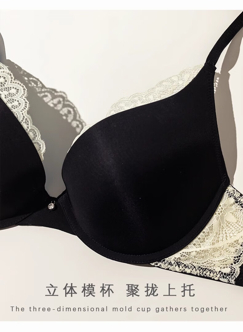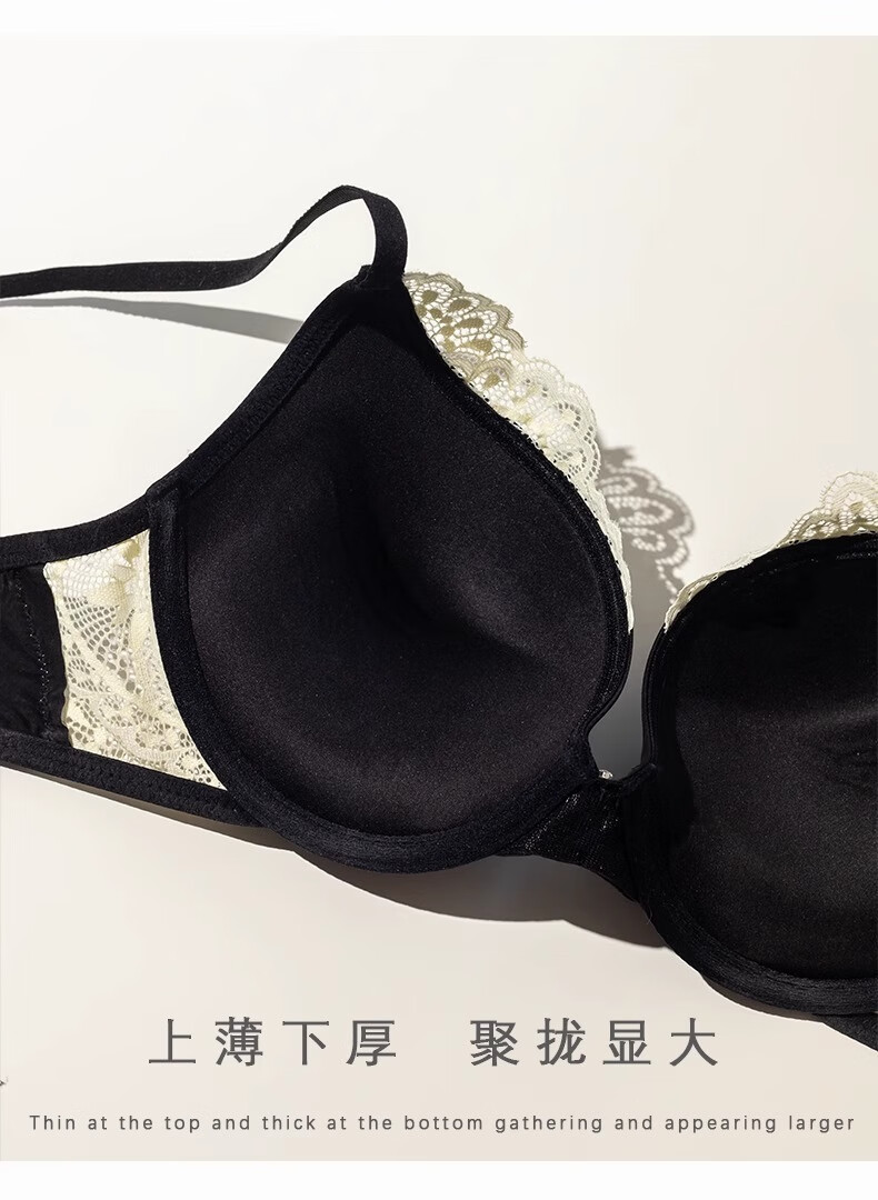 QBILY bra set for women, sexy lace underwear for women, push-up to show bigger side breasts, comfortable bra set, black 36/80ABC