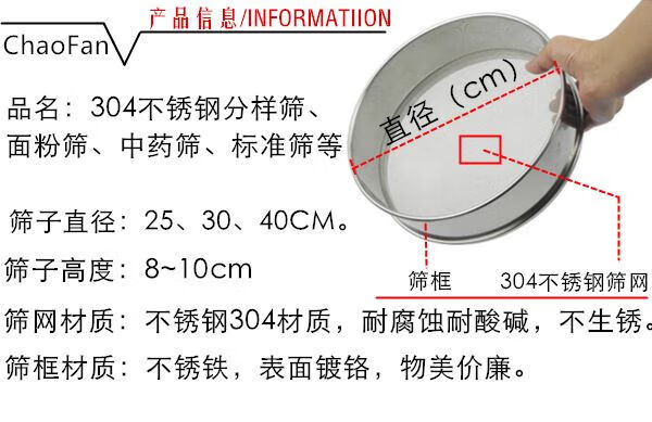NAOISKEY Naoski heightened sieve stainless steel mesh sieve Chinese medicine powder flour sieving mesh sieve diameter 20cm height 10cm 30 mesh