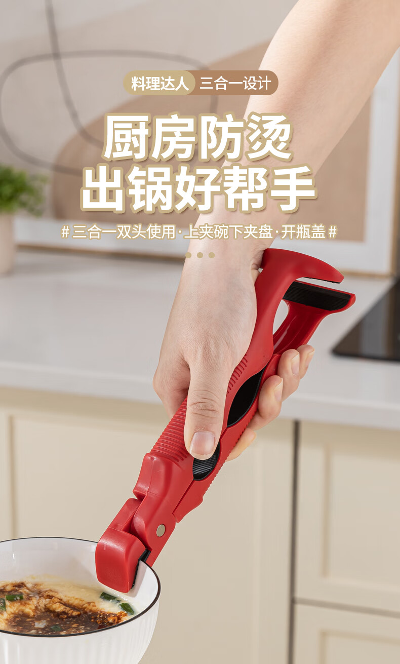 Fat Donglai's same style anti-scalding bowl clamp, three-in-one clamp, anti-slip clamp, kitchen clamp, plate clamp, steamed vegetable clamp, heat-insulated lift, Noble White 1 pack, three-in-one double-headed use, upper bowl clamp and lower clamp