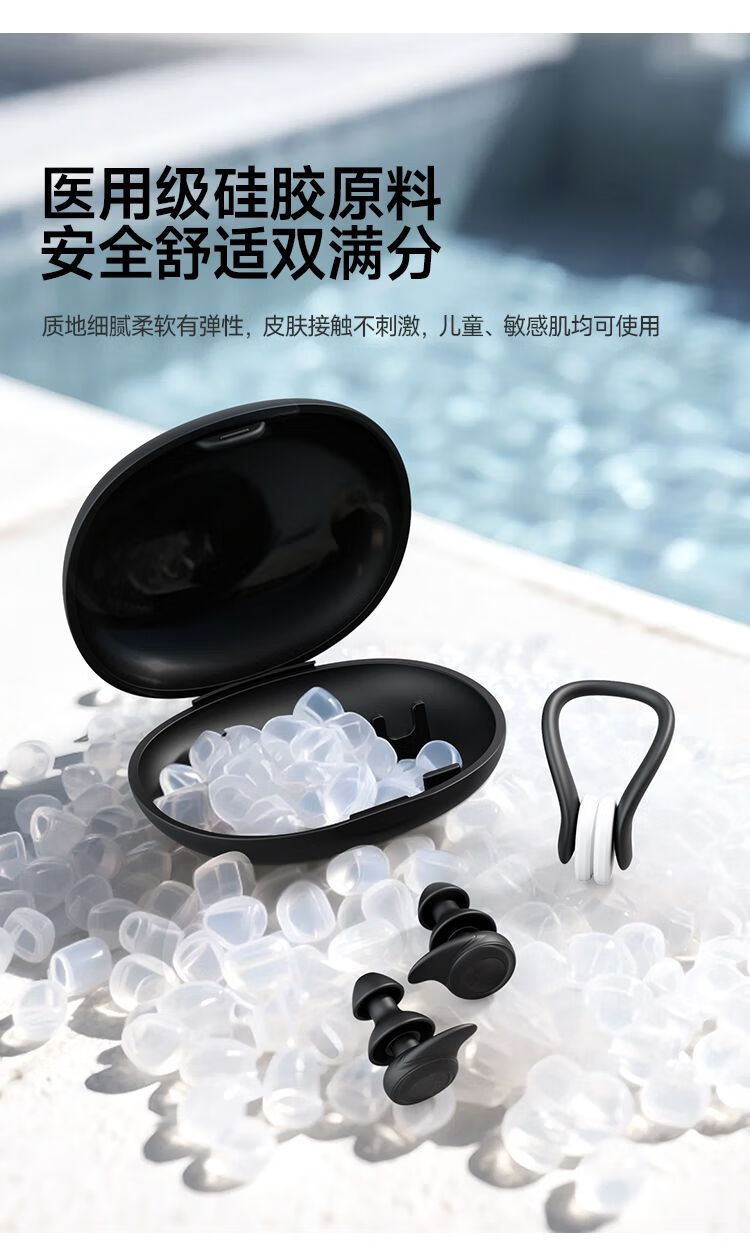 Tiansui swimming earplugs, waterproof, non-soundproof, anti-choking, nose clip, wrist strength device, men's wrist-wrestling exercise, strength training, muscle fitness, piano black, water-proof, sound-conducting style, nose clip + earplugs