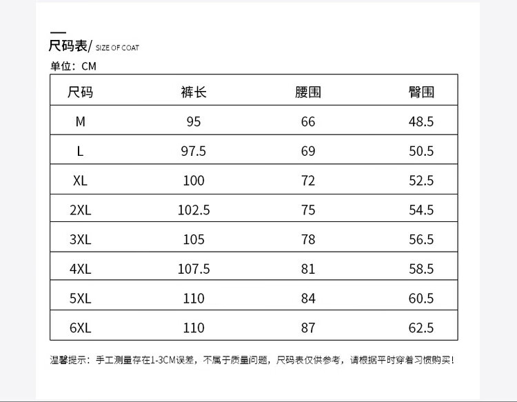 Outseam (cm) 99 cm 101.5 cm 104 cm 106.5 cm 109 cm