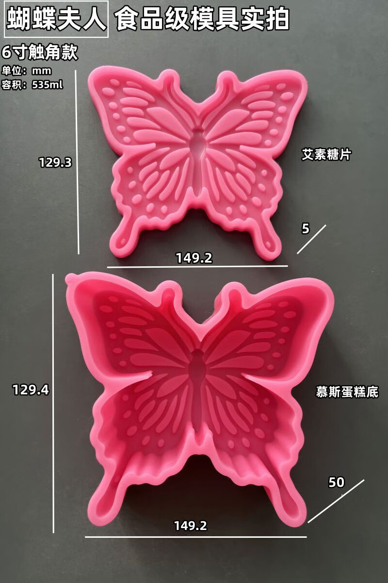 Crystal Butterfly Mold Silicone Mousse Mother's Day Chocolate Three-dimensional Fondant Mold Wishing Butterfly Mold Wishing Pool 6 Inch Long Tail Model