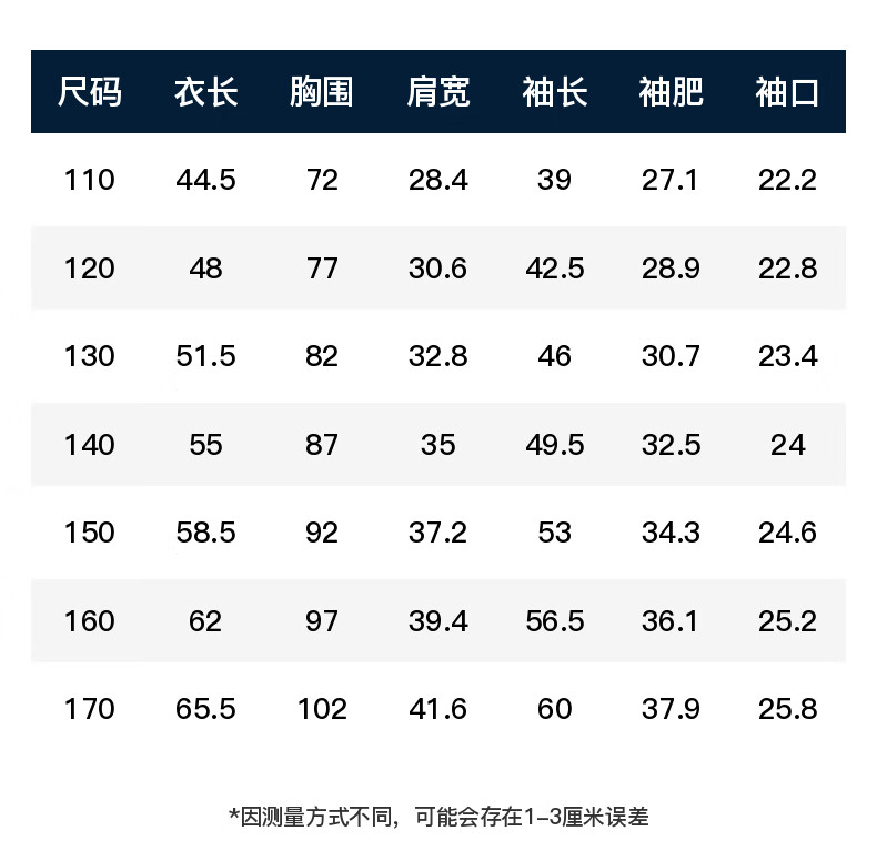 China (cm) 160-165/84-86 165-170 / 88-90 167-172 / 92-96 168-173 / 98-102 170-176 / 106-110