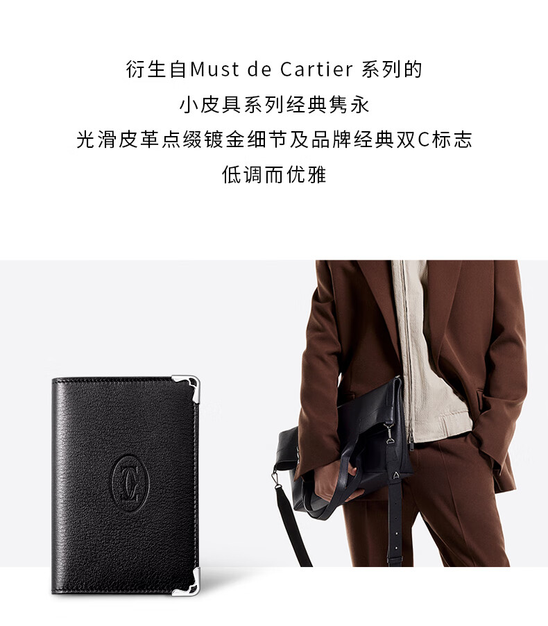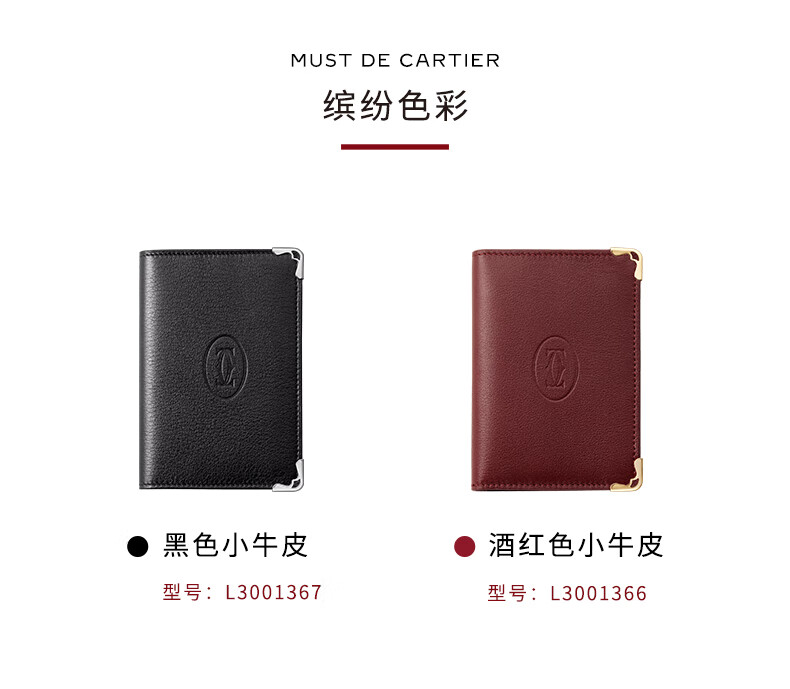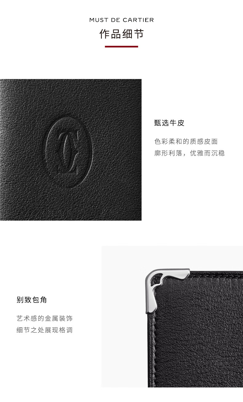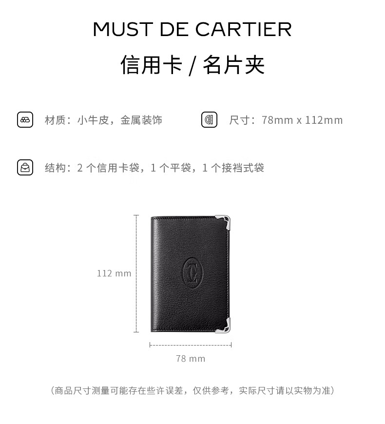 Cartier Must Series Credit Card Business Card Holder Calfskin Double C Logo Card Holder Black, Stainless Steel Decoration
