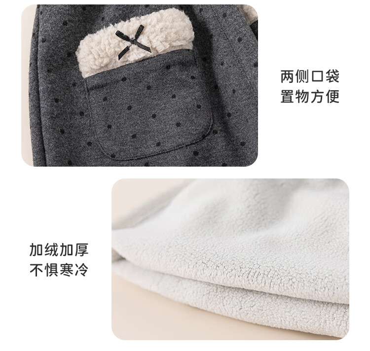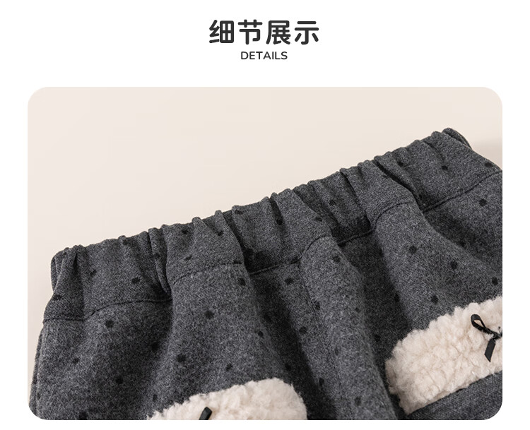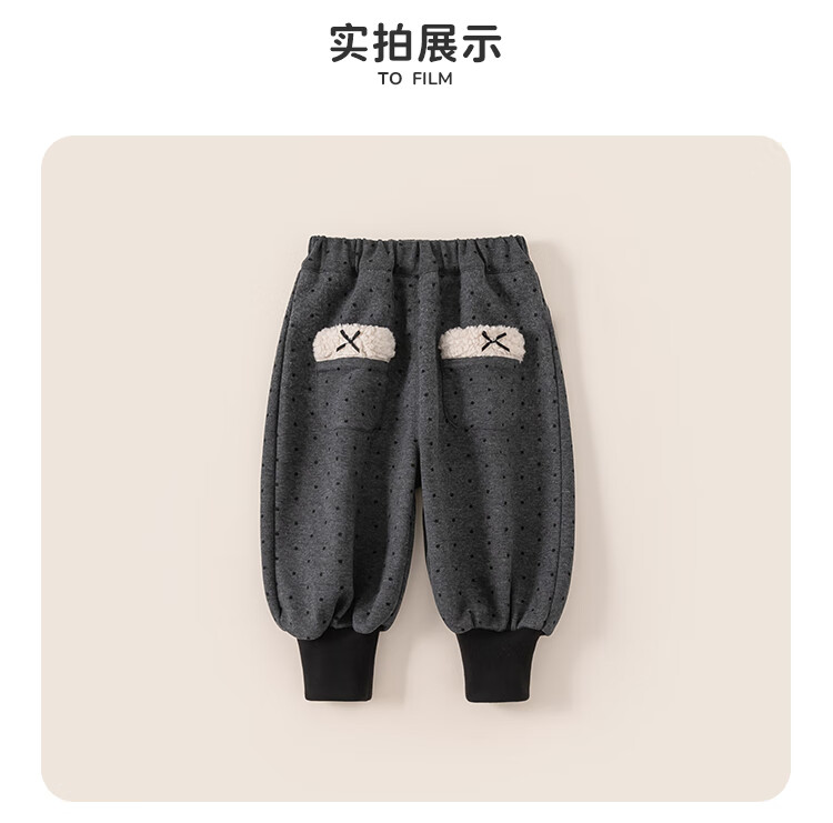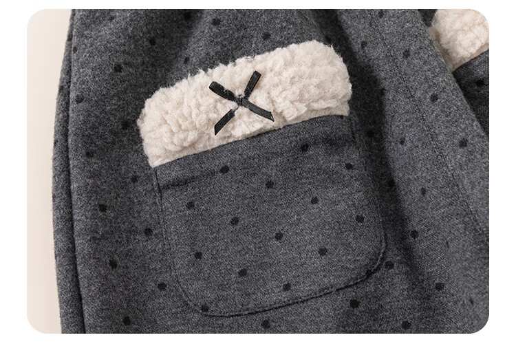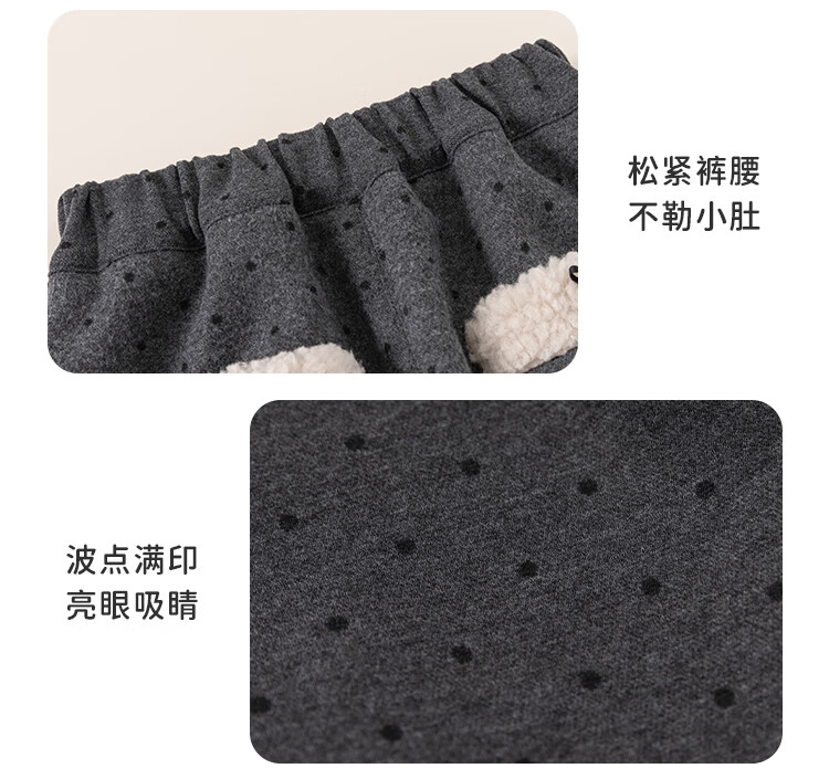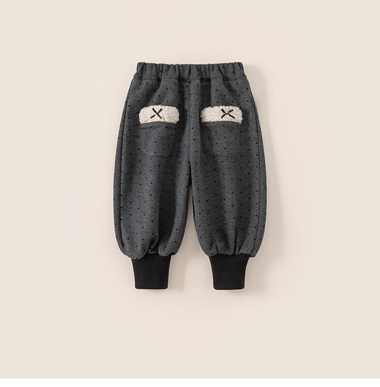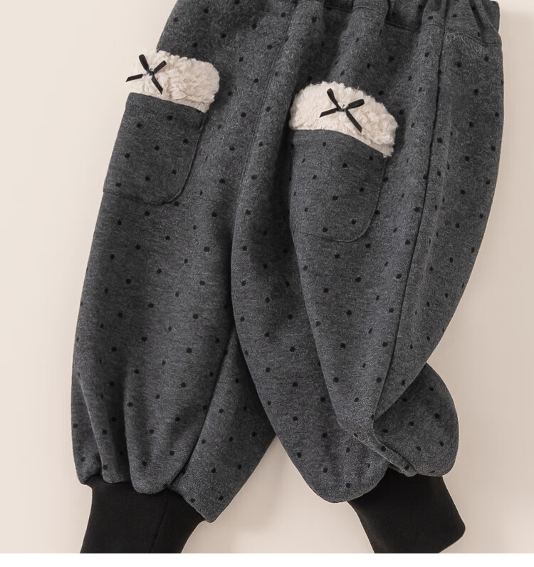 INSBOBO Girls' Pants 2025 Winter Baby Children's Pants Children's Sports Pants Autumn and Winter New Style Velvet Gray Bottom Polka Dot 90